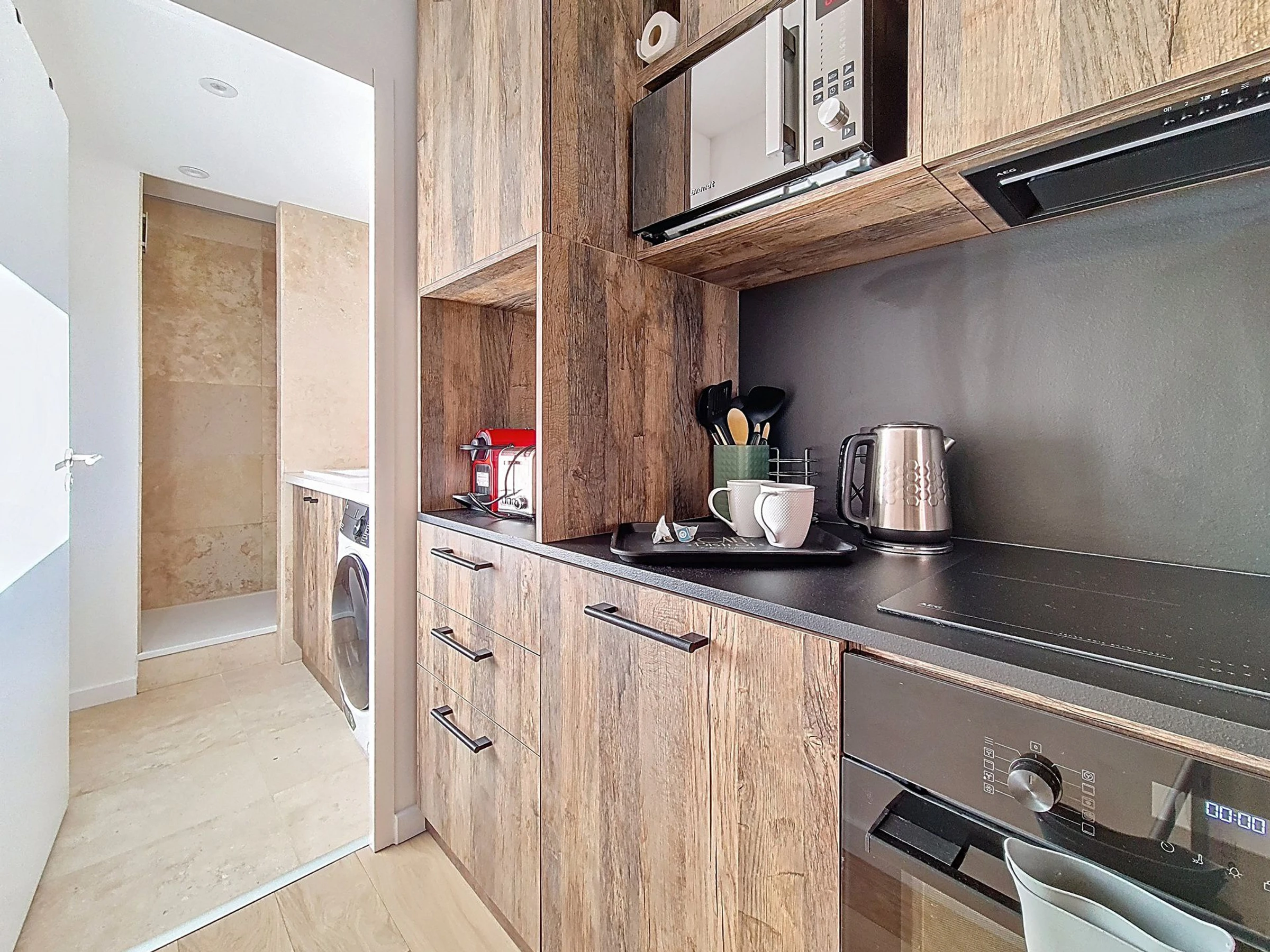 Kitchen: modern and fully equipped with a large refrigerator, traditional oven, dishwasher, 4 hotplates, kettle, Nespresso machine, toaster, and coffee maker.