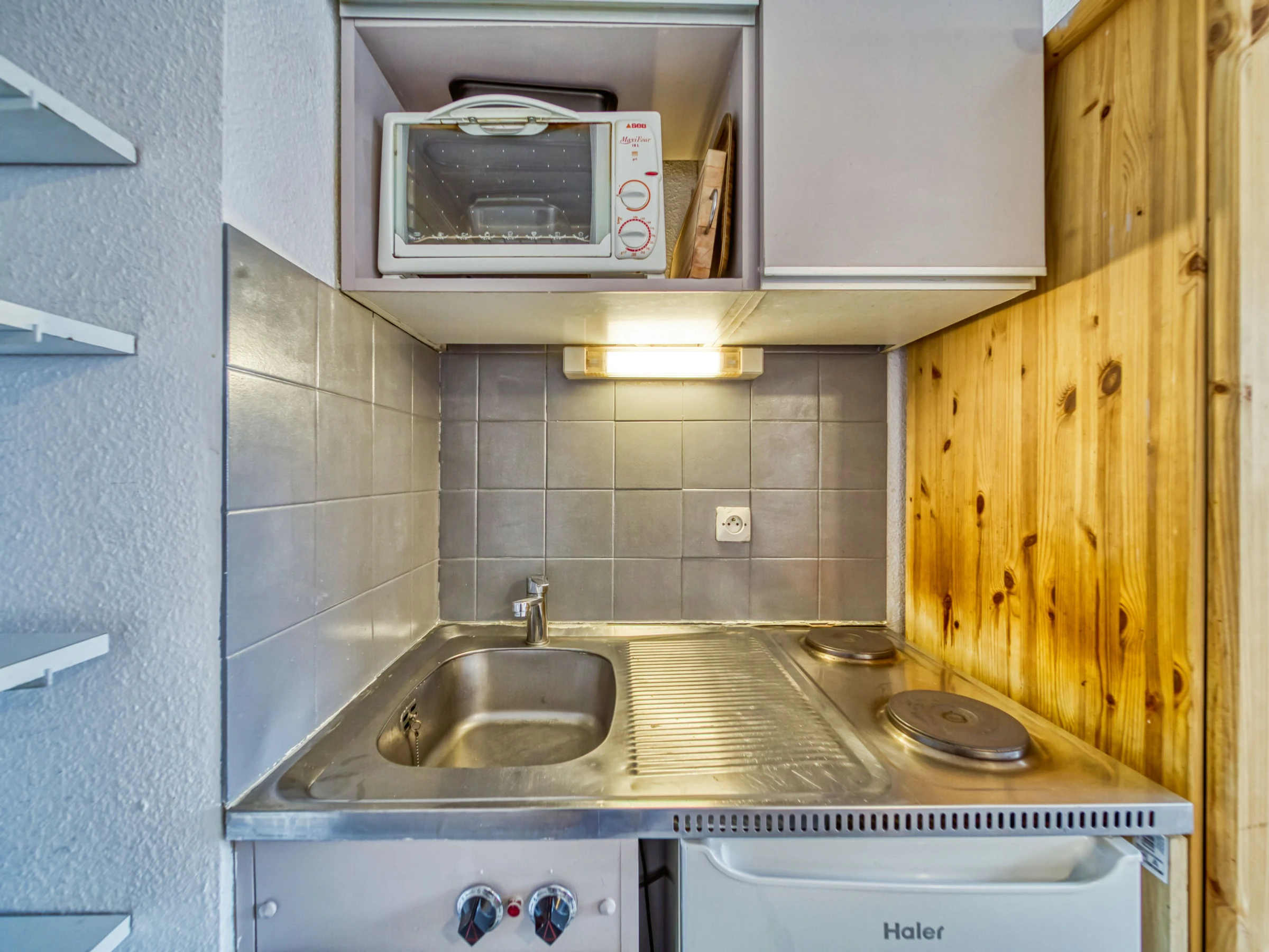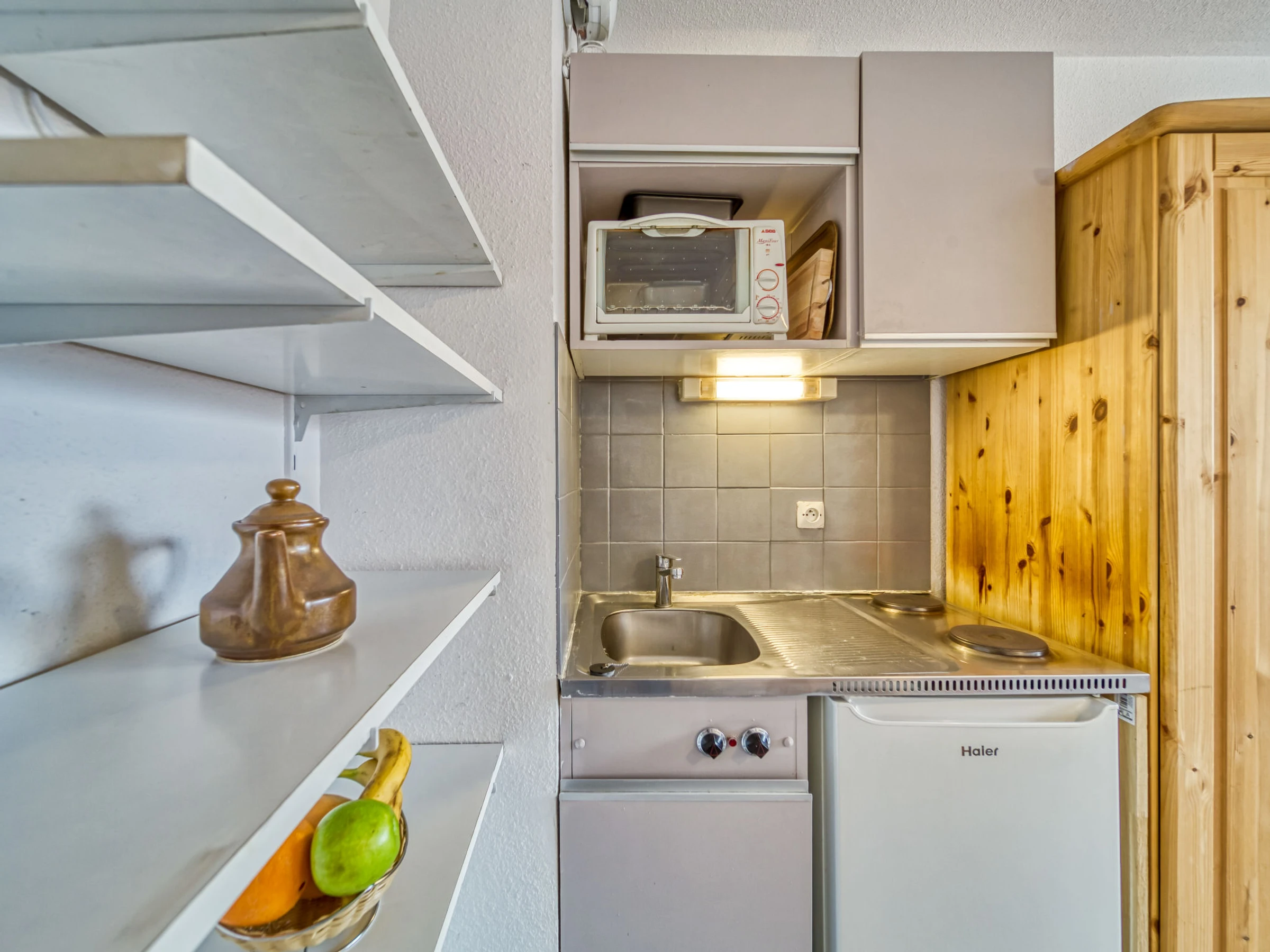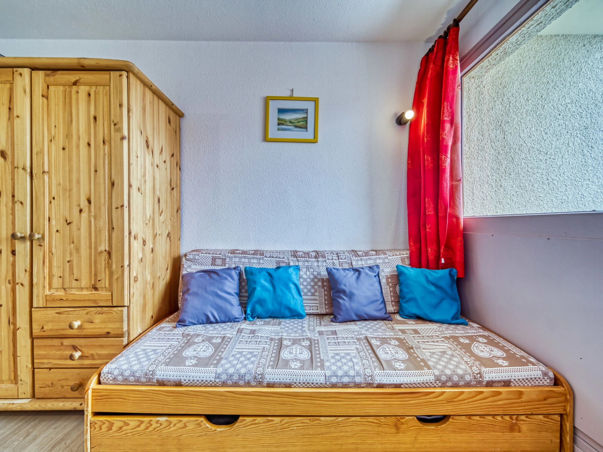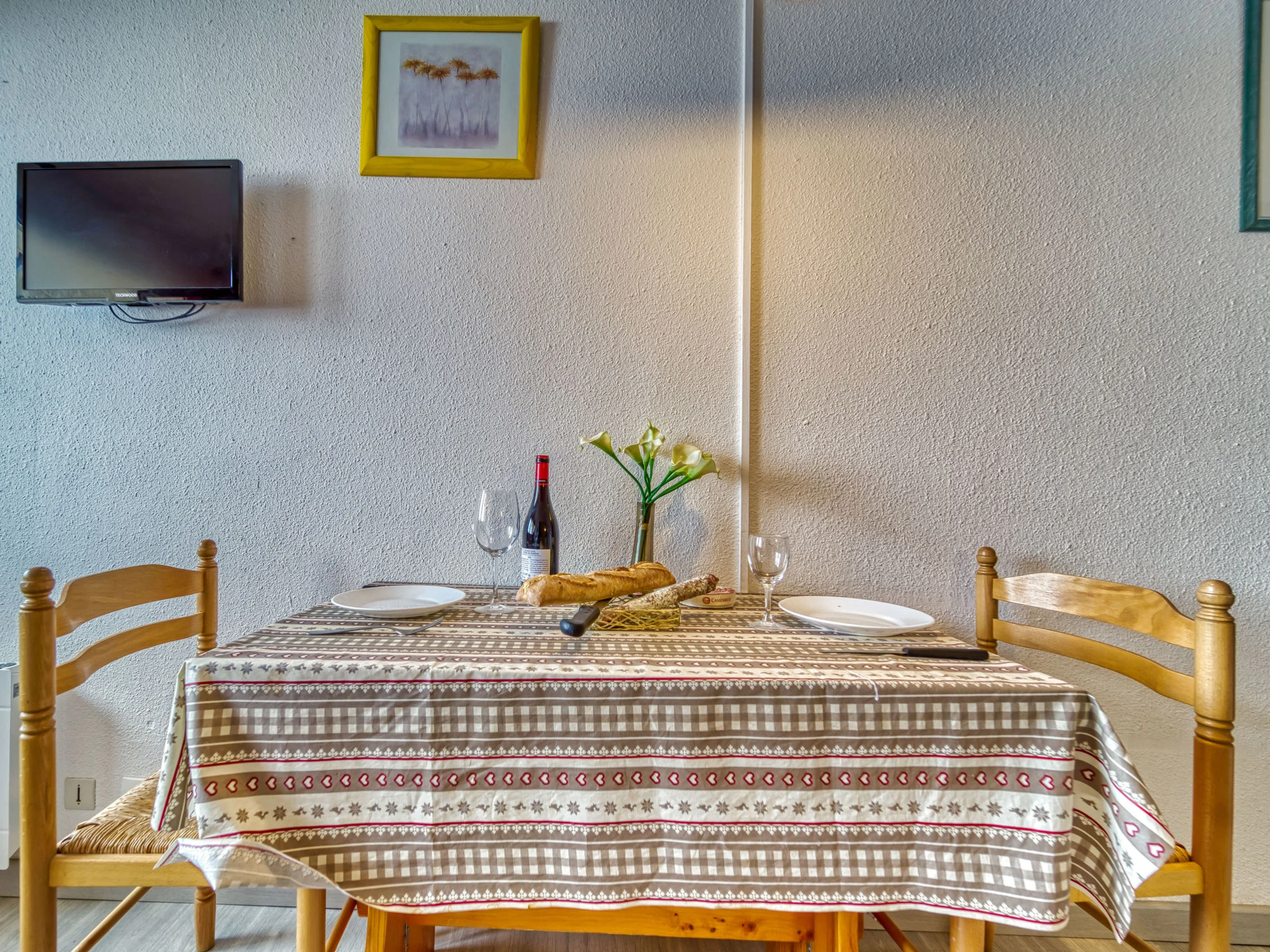 "Vanoise 172", 1-room apartment 15 m2 on 1st floor. Living/dining room with 1 pull-out bed (2 pers. 2 x 80 cm, length 190 cm), TV (flat screen), electric heater. Kitchenette (2 hot plates, oven, electric coffee machine). Shower/WC. Balcony, north facing position. Facilities: Internet (WiFi, extra). Maximum 1 pet/ dog allowed. [hidden]