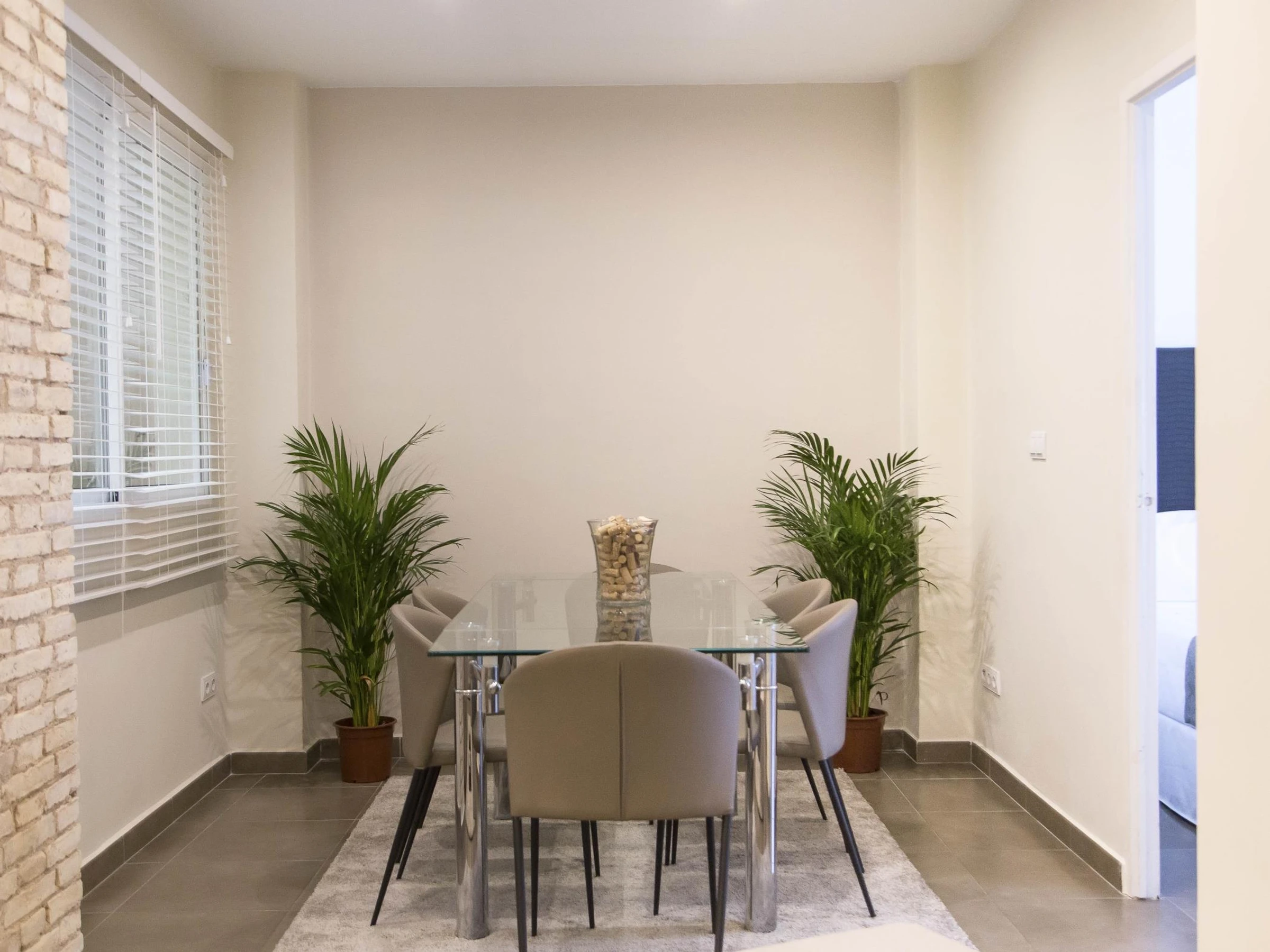The apartment is fully equipped and furnished with air conditioning, heating and free WiFi throughout the property, fully equipped kitchen and bathroom. It has 1 room with a 150cmx190cm bed and 2 double rooms with 2 90x190 beds each. 1 full bathroom with shower. An apartment that will make you thoroughly enjoy our city and its splendid climate and sun that characterizes it. The open concept kitchen has all the utensils necessary to cook, if desired.