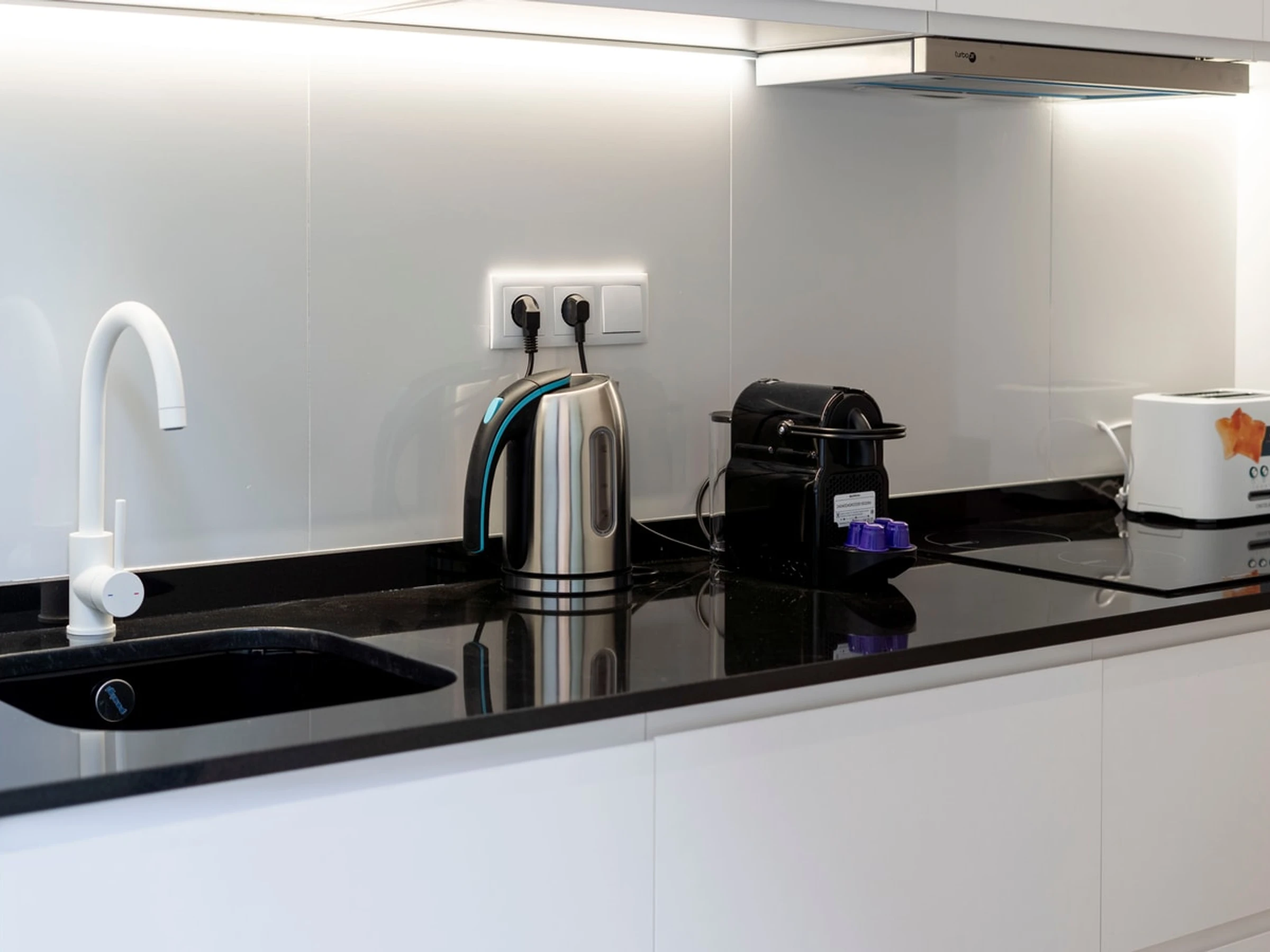 The kitchen is fully equipped with all the necessary appliances, including a Nespresso coffee machine for delightful mornings, a microwave for quick meal preparations, and an electric kettle for brewing your favorite teas throughout the day.