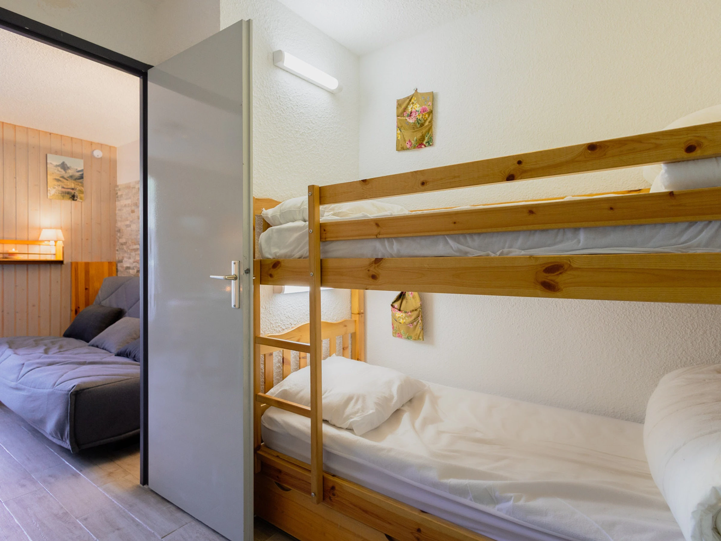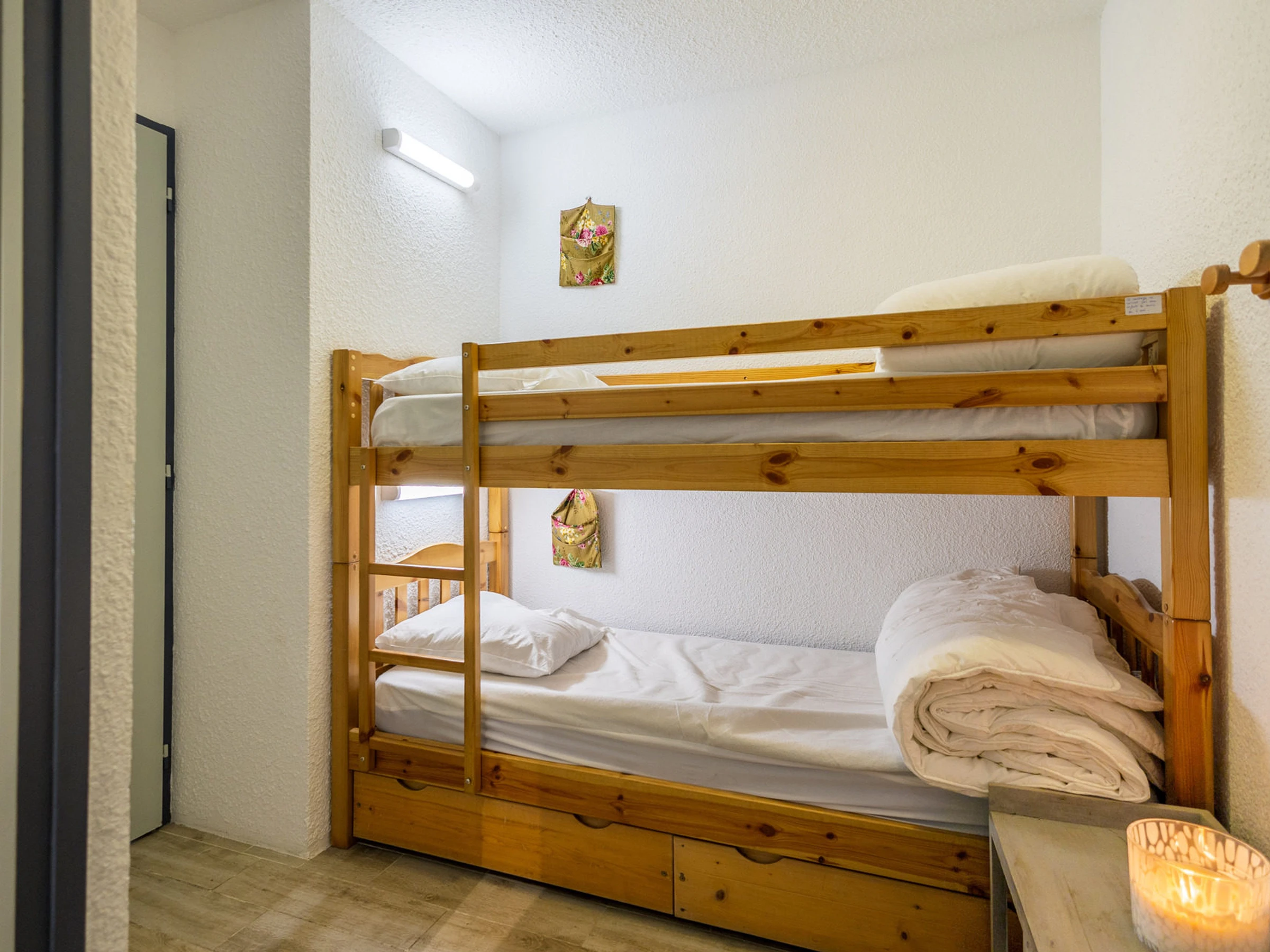 Entrance (6m²/ separated from the living room by a door): 2 single bunk beds (2x 80x190cm)