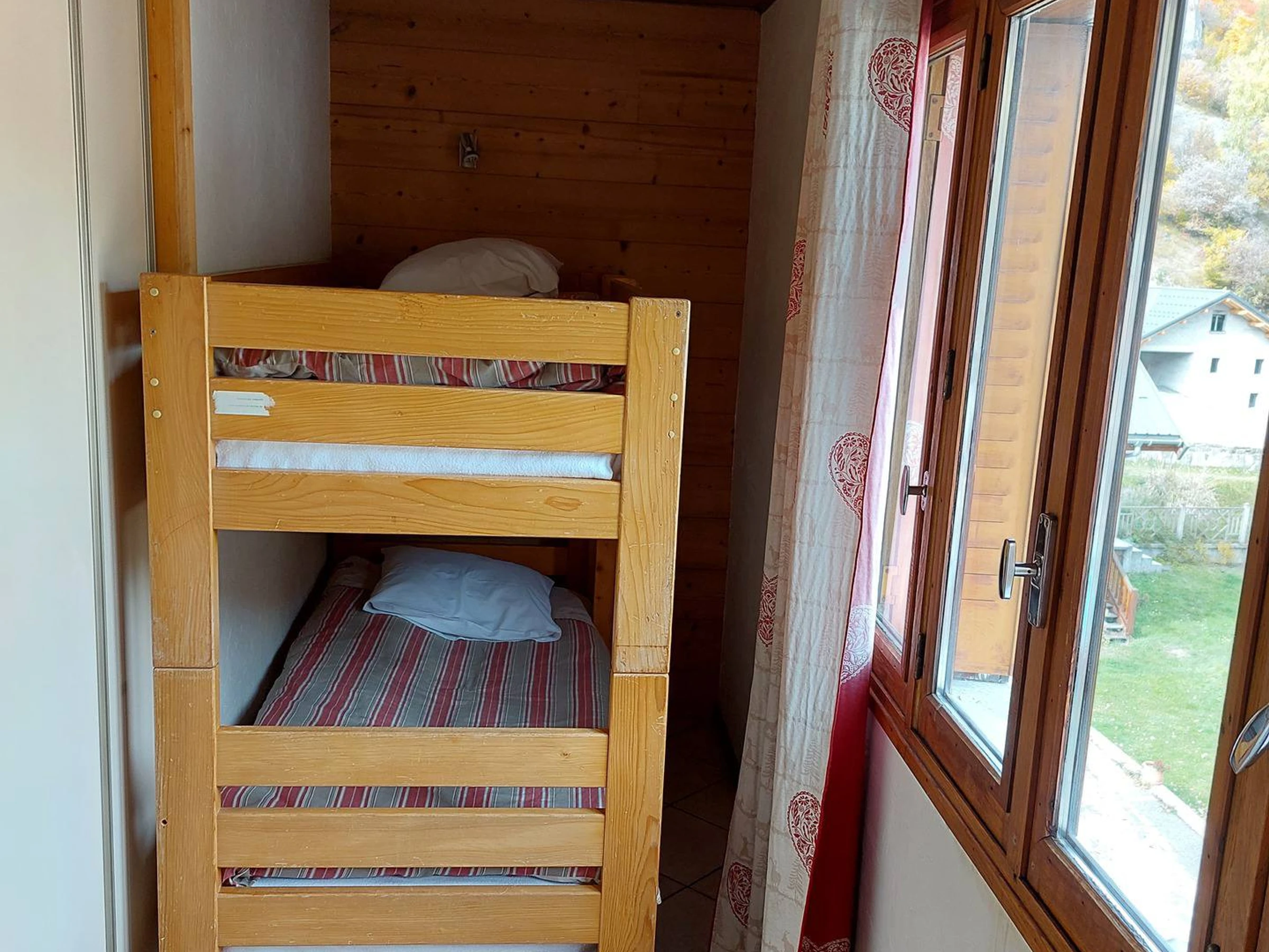 Bedroom 2 (8m²/Northeast): 2 bunk beds (2x 80cm) + balcony