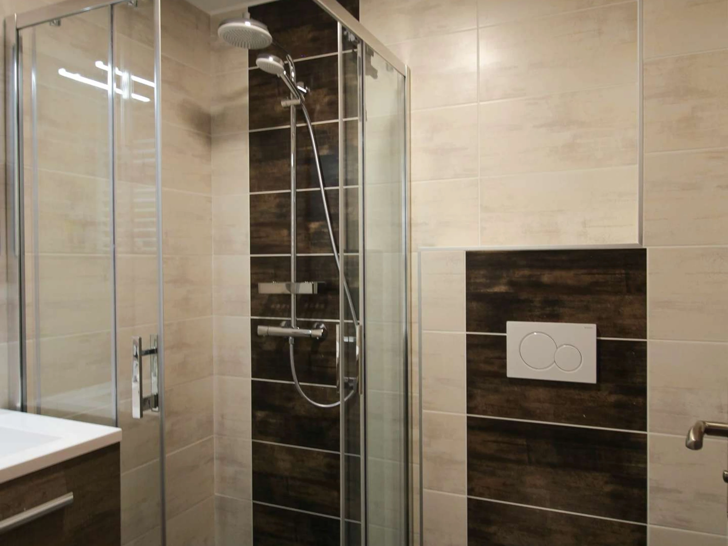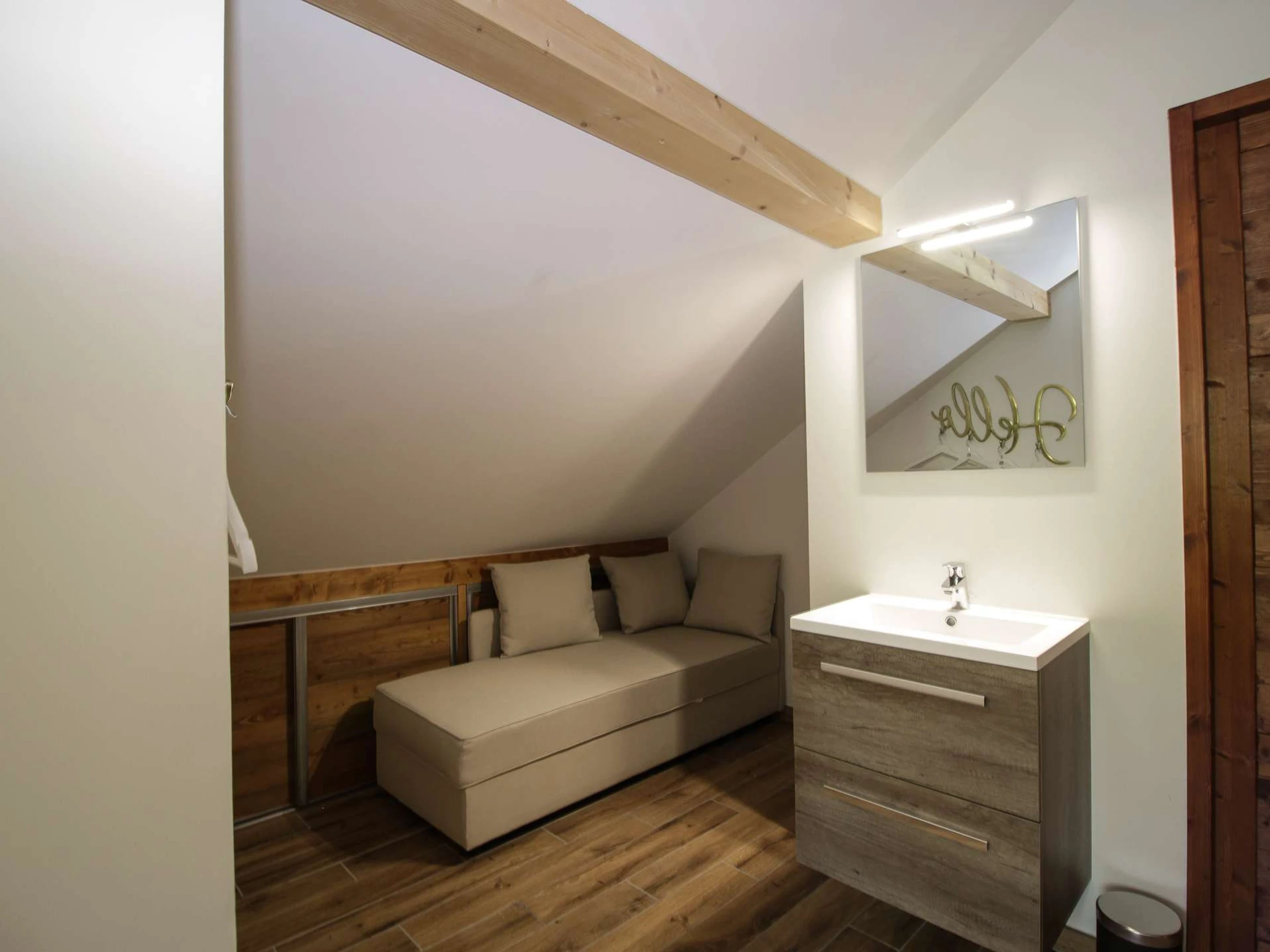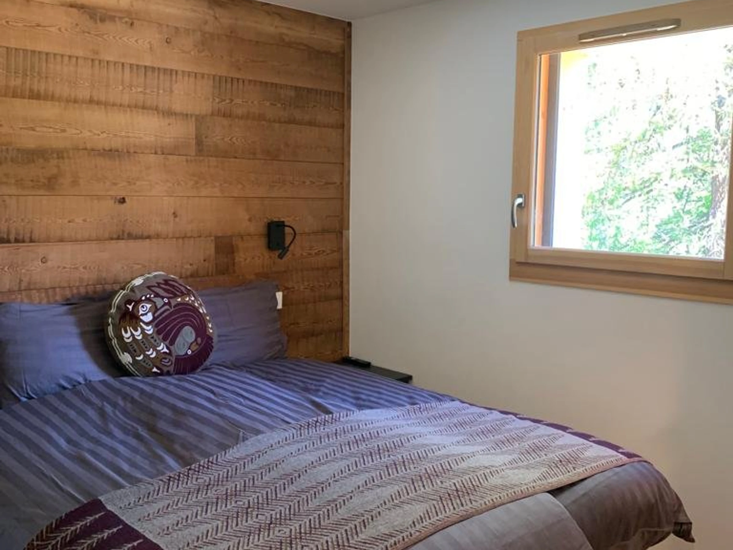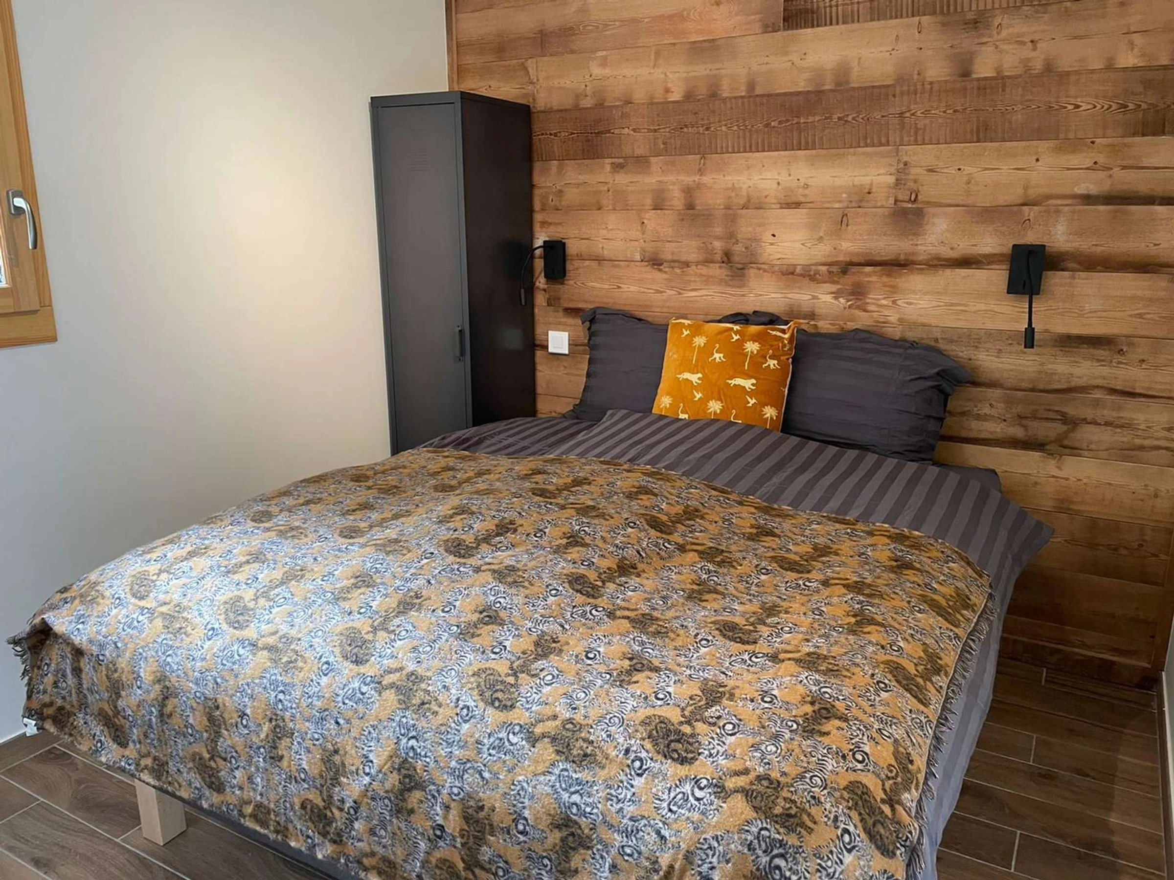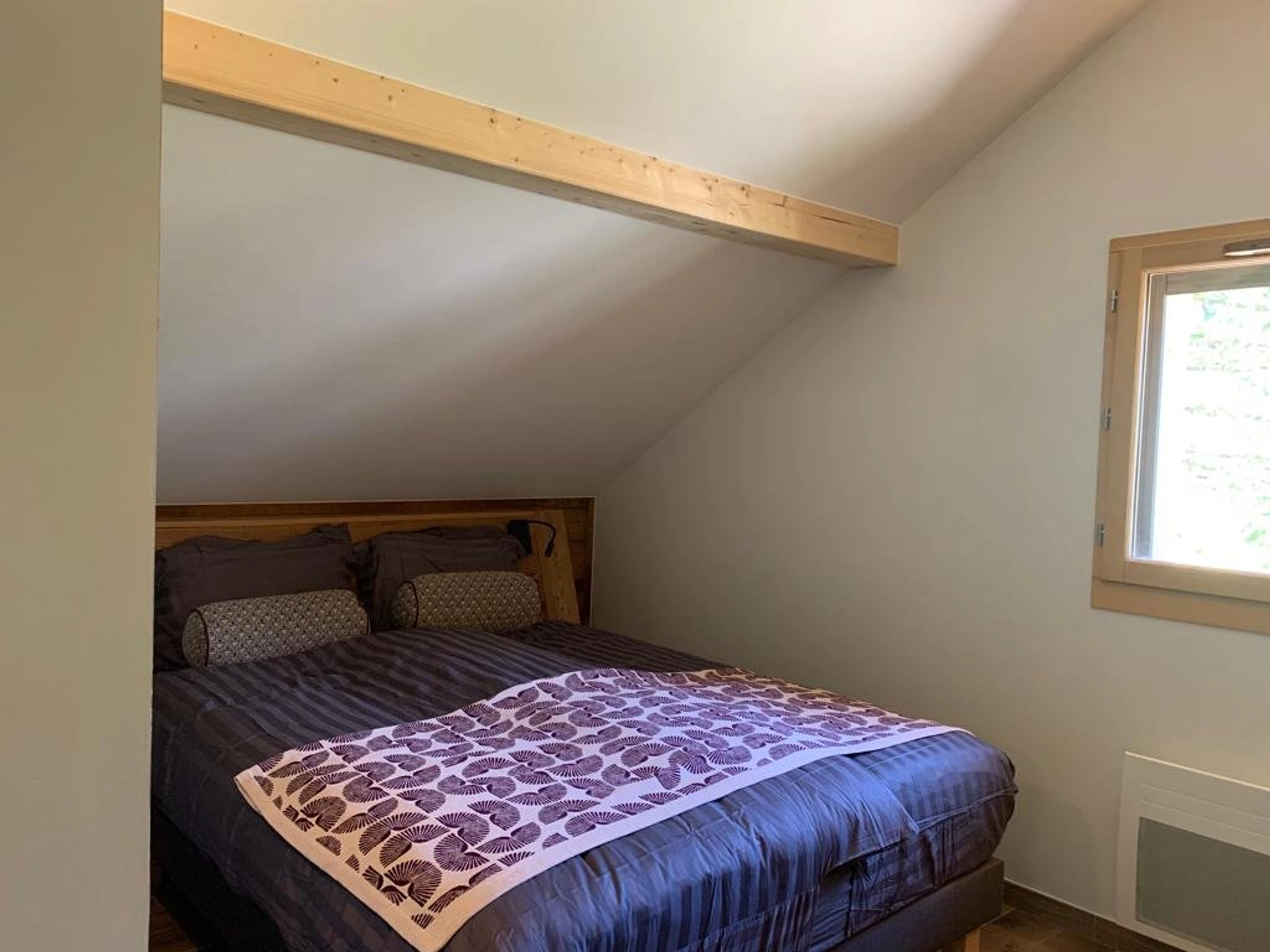 Bedroom 5 DAHU with one double bed (160cm), en-suite shower room with shower, sink and toilet, and two single sofa beds (70cm) recommended for children