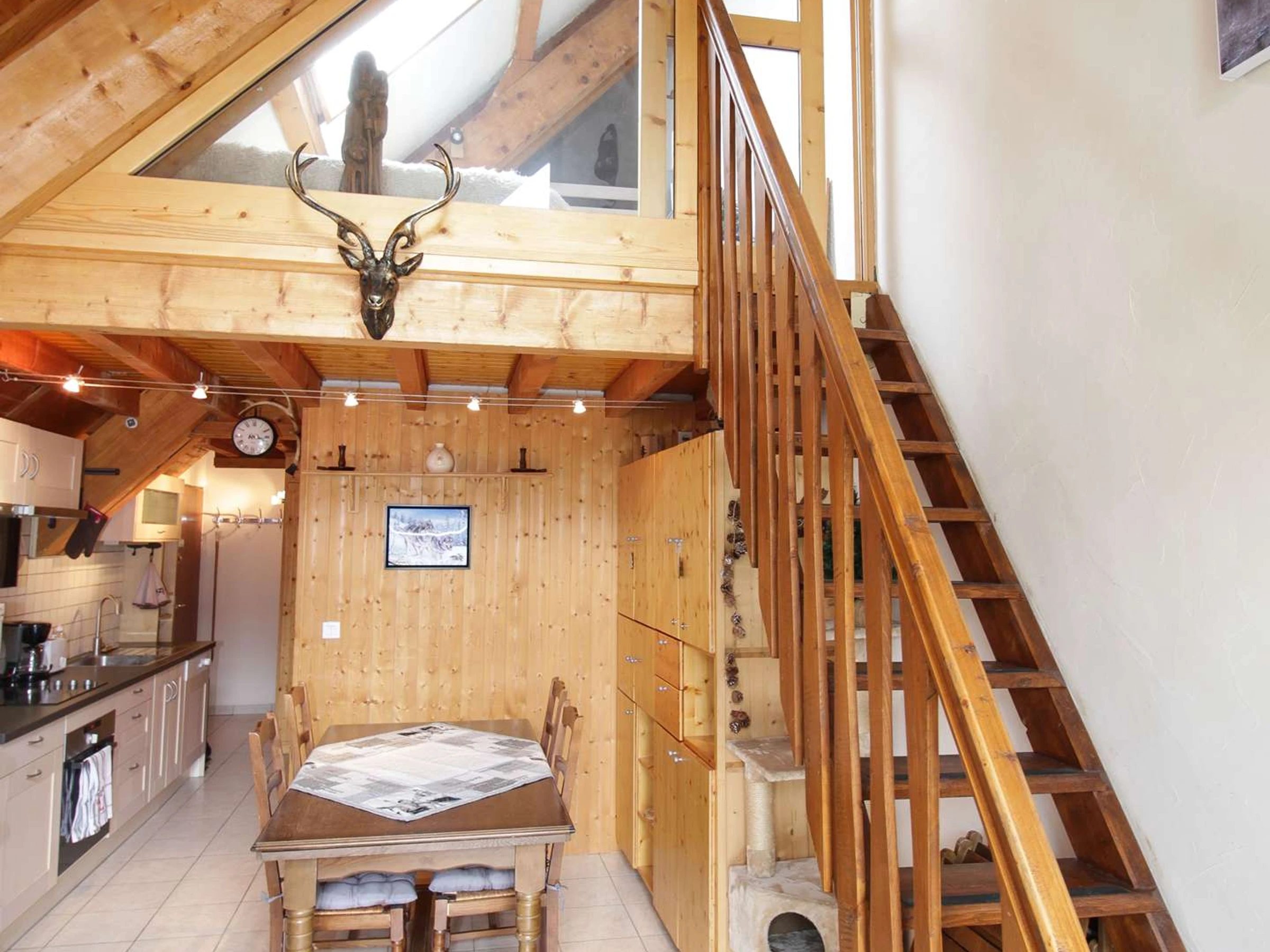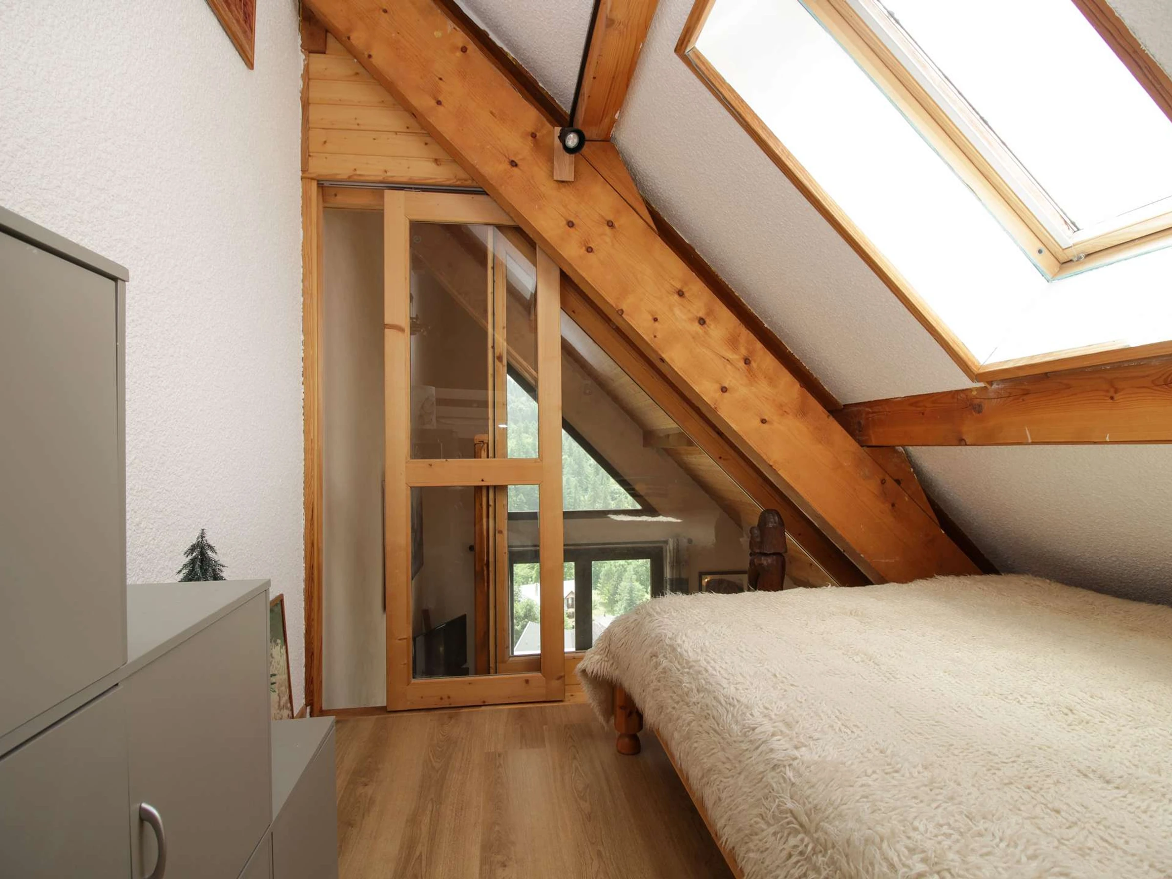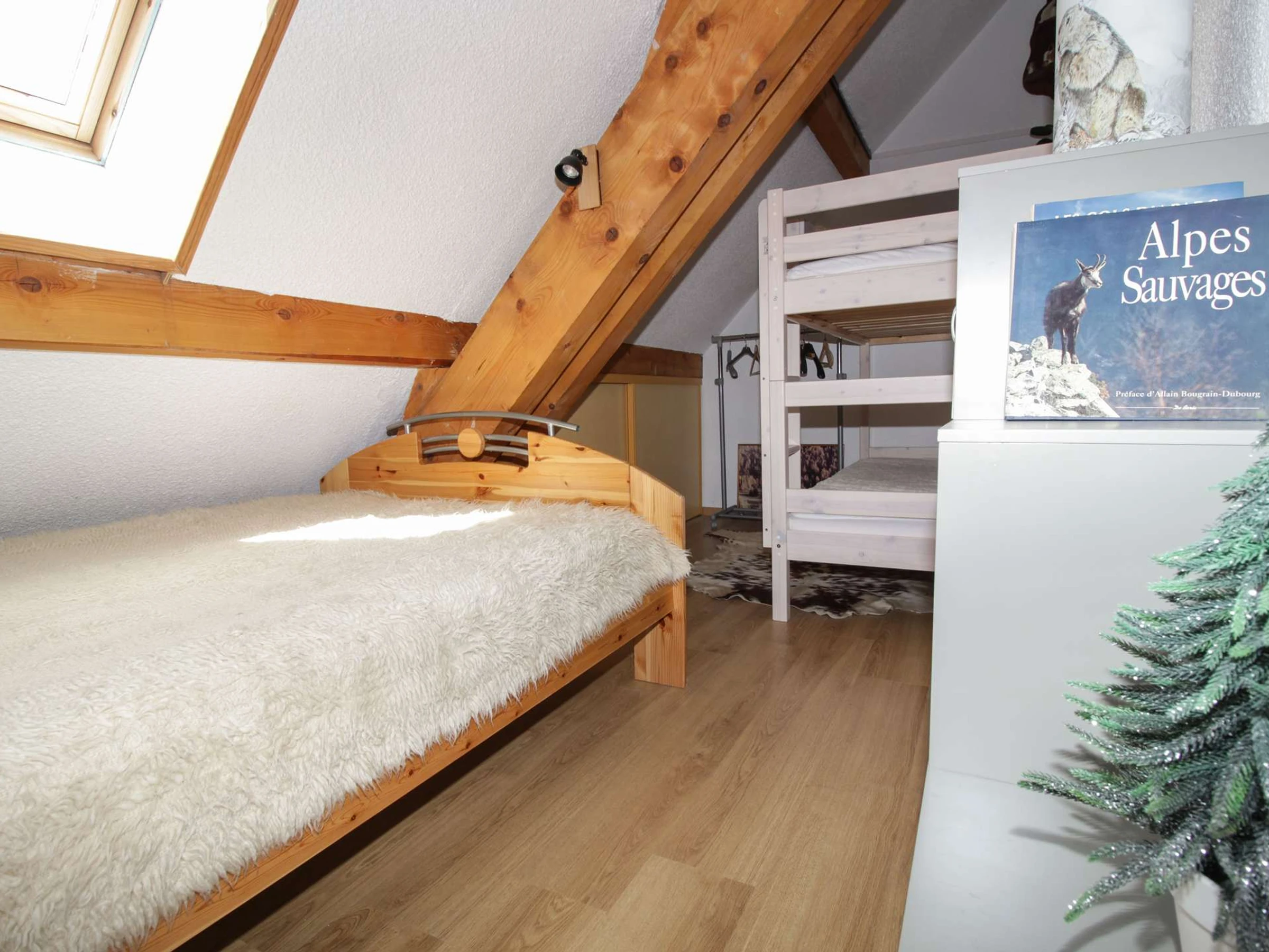 Mezzanine (11 m²): 1 double bed (140 cm) and 2 bunk beds (2 x 80 cm)