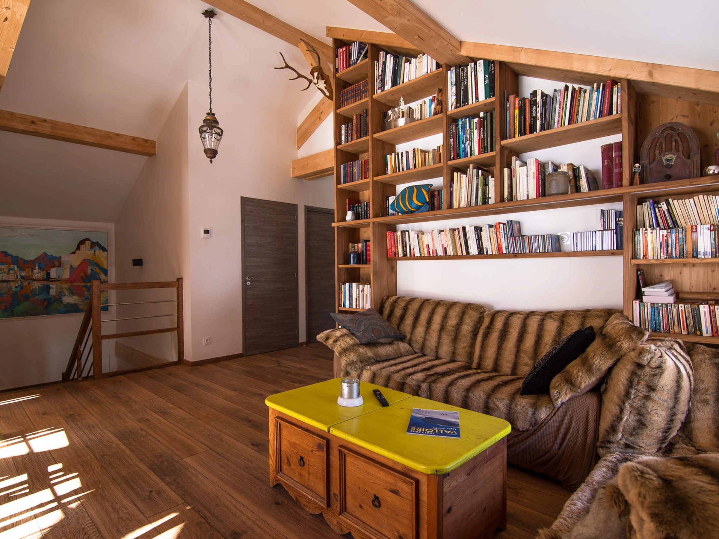 Library area on the mezzanine (Level +1/ 25m²): library, music, games and television.