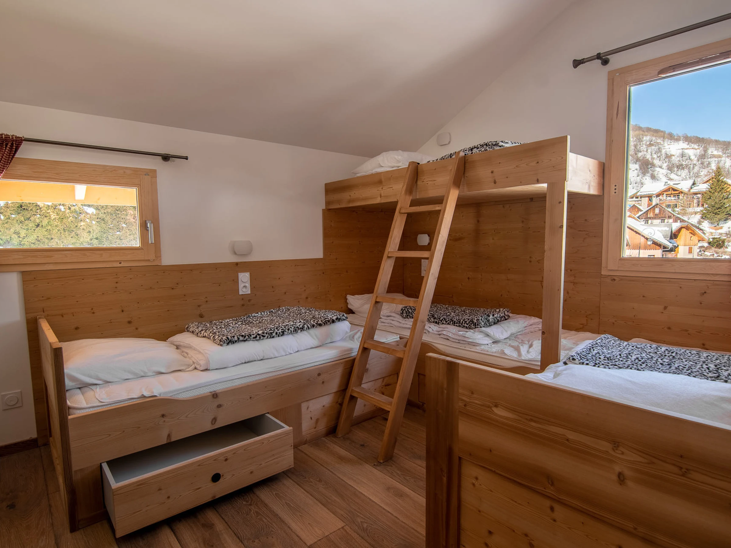 Bedroom 4 (Level +1/ 14m²/ South): 1 double bed (160x200cm) + 1 single bed (90x190cm)