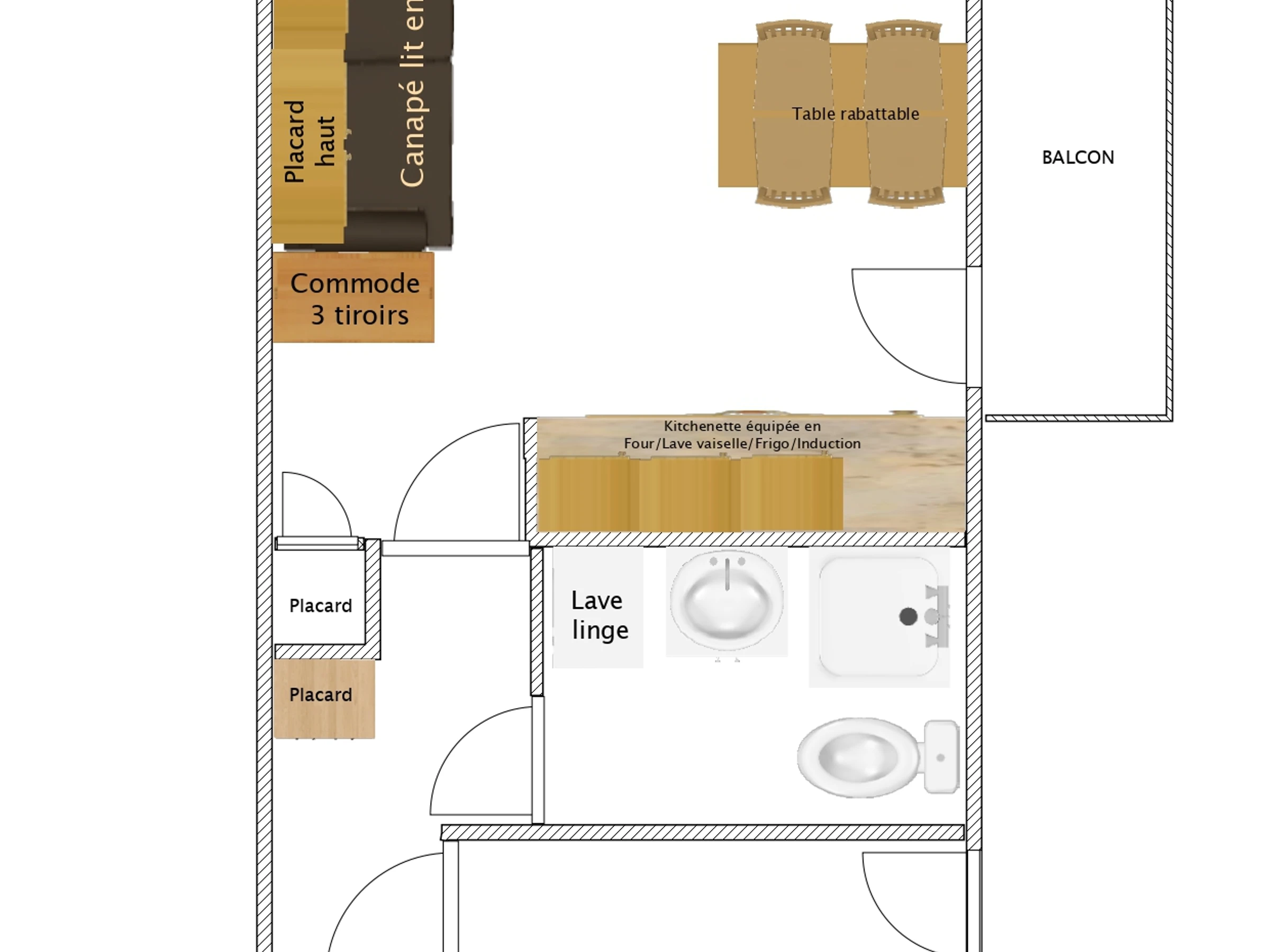 Living room (12m²): 1 rapid convertible sofa (140x190cm)