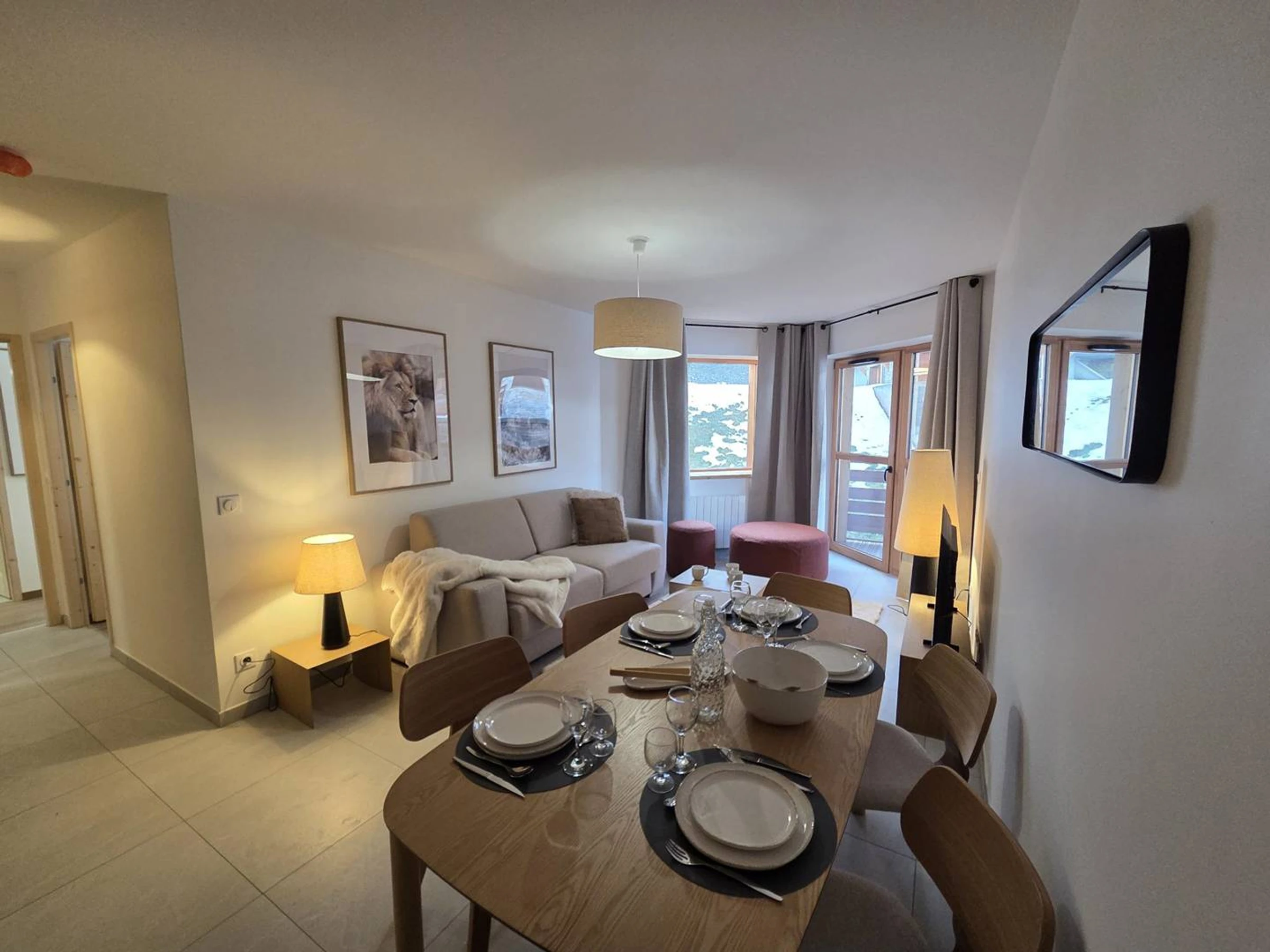 New 3-room apartment on the 1st floor of the LE ROC residence. Sleeps up to 6 people. South-east facing with a magnificent view of the Rocher ski slope.