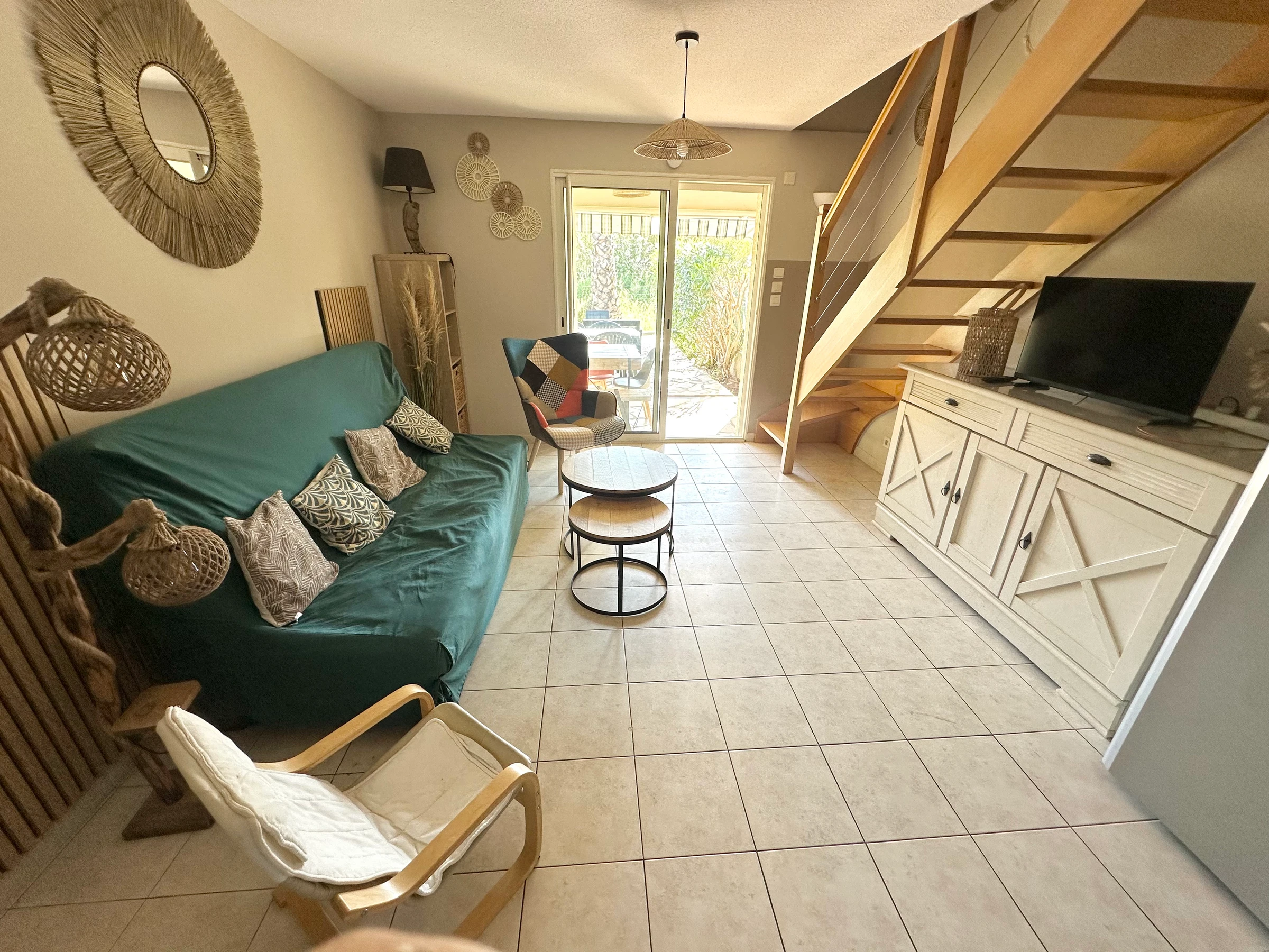 This bungalow is in excellent condition, located in a pleasant, quiet, and secure residence with a swimming pool. The private garden and veranda provide an ideal outdoor setting for meals and relaxation. An ideal location for a vacation with family or friends, combining comfort, tranquility, and proximity to the beaches.