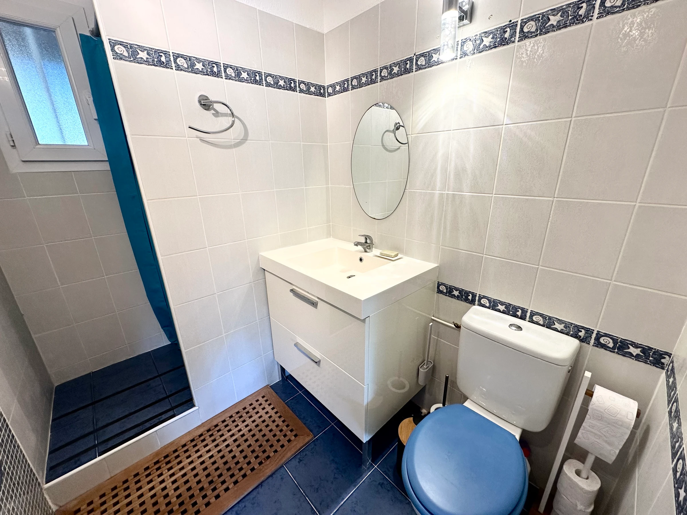 A shower room with toilet