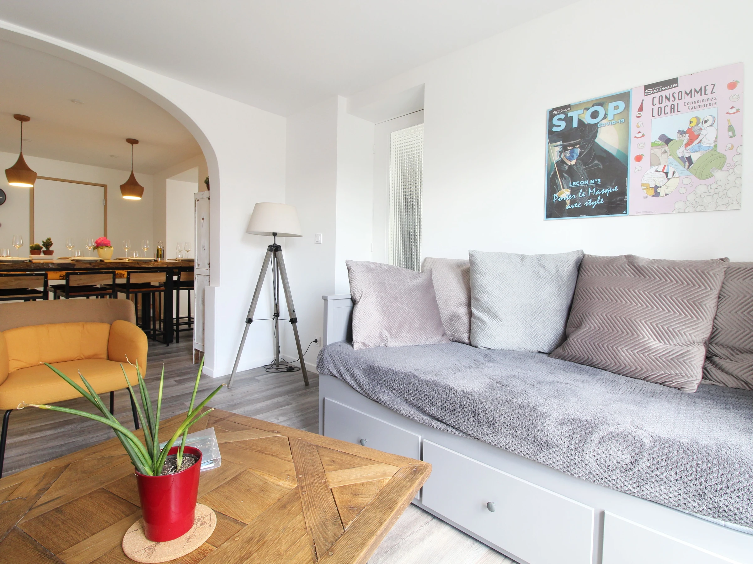 In Varrains, a small village in the heart of the Loire Valley, come and stay in this charming cottage located on the Varinelles wine estate. Its owners will be happy to welcome you and share with you their passion for wine as well as the history of this family estate which spans more than five generations. A few minutes from Saumur, this renovated seasonal rental with neat decoration consists, on the ground floor: - Of an entrance with a large storage unit - Of a large living room with fitted and equipped kitchen ( fridge-freezer, oven, microwave, induction hob, blender, coffee maker, kettle, etc., dining area and living room with sofas and pull-out sofa bed 160 x 200cm. The television is not yet connected but possibility of using it via a chromecast. - Separate toilets with laundry area (washing machine/tumble dryer). Upstairs: - A spacious and bright first bedroom with a 160 x 200cm bed and an adjoining bathroom with walk-in shower - A second 16m² bedroom with 2 bunk beds of 90 x 200cm and 1 extra trundle sofa bed 160 x 200cm - A separate bathroom with walk-in shower - Separate toilets This cottage can accommodate up to 10 people thanks to the extra bedding. For a pleasant and comfortable atmosphere, the accommodation has a wood stove for your winter evenings and air conditioning for hot days. During your stay, the owners of this gîte will be delighted to offer you a private tour of their estate, as well as a tasting of their production (Saumur Champigny, Crémant de Loire, etc.) Accessible from the courtyard of the estate or from the street, this accommodation does not have an outdoor area or a barbecue. Possibility to park your vehicle in the street in front of the gîte. End-of-stay cleaning and linen rental services are optional and towels are not provided. Less than 10 minutes from Saumur, the Loire à Vélo and the banks of the Loire, this pied-à-terre will be the ideal place to discover the many tourist activities offered by Anjou: Château de Saumur, Cadre Noir, Mushroom Museum, troglodyte sites, parks and gardens, vineyards and much more. Optional services to be paid on site and to be booked before your arrival: - End of stay cleaning: €85.11 per stay