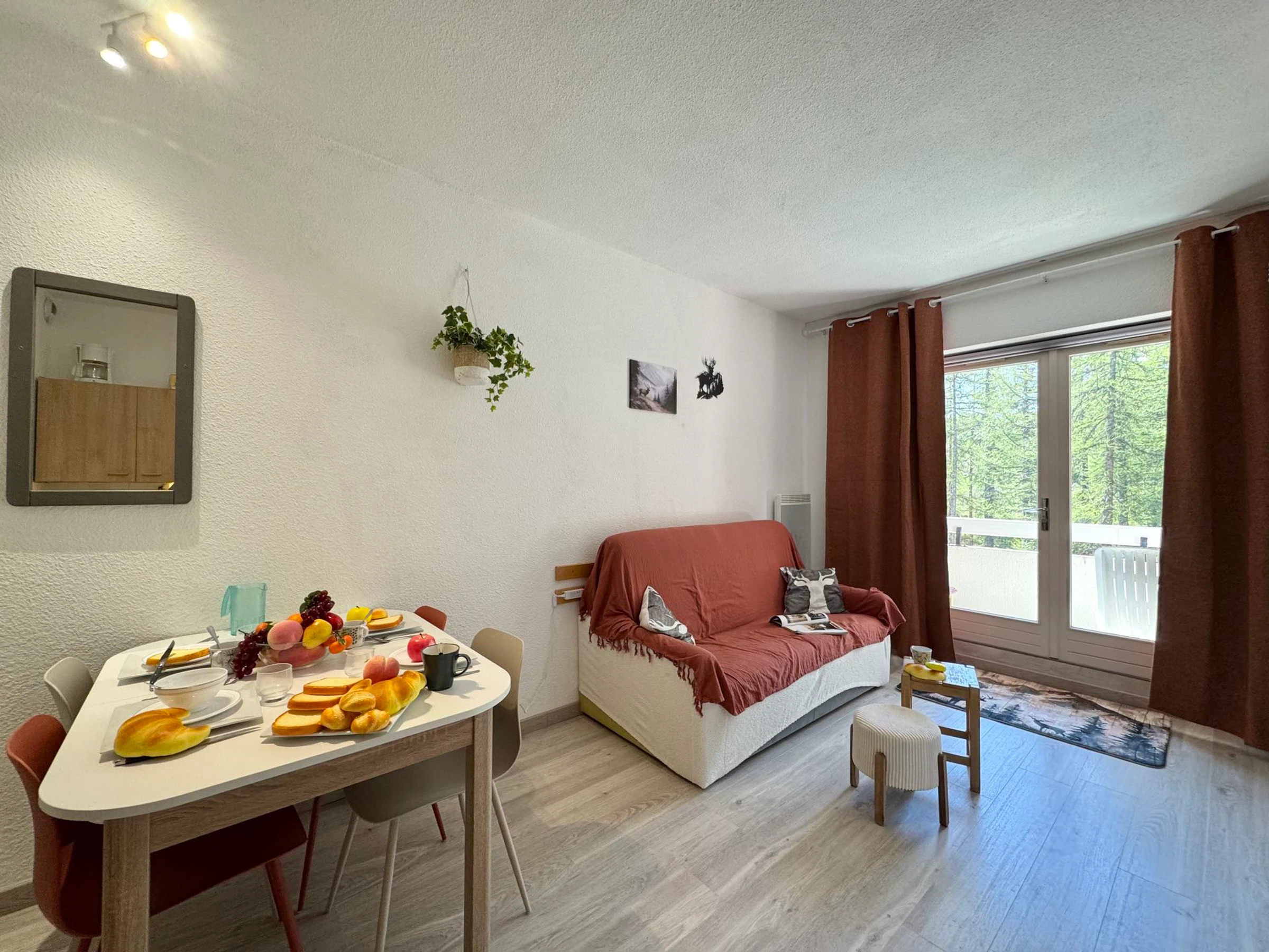 The Agence de la Forêt Blanche offers you this charming 25m² studio, facing east, ideally located just 100 meters from the slopes and shops. Its prime location provides easy access to the rest of the resort, allowing you to fully enjoy your mountain stay.