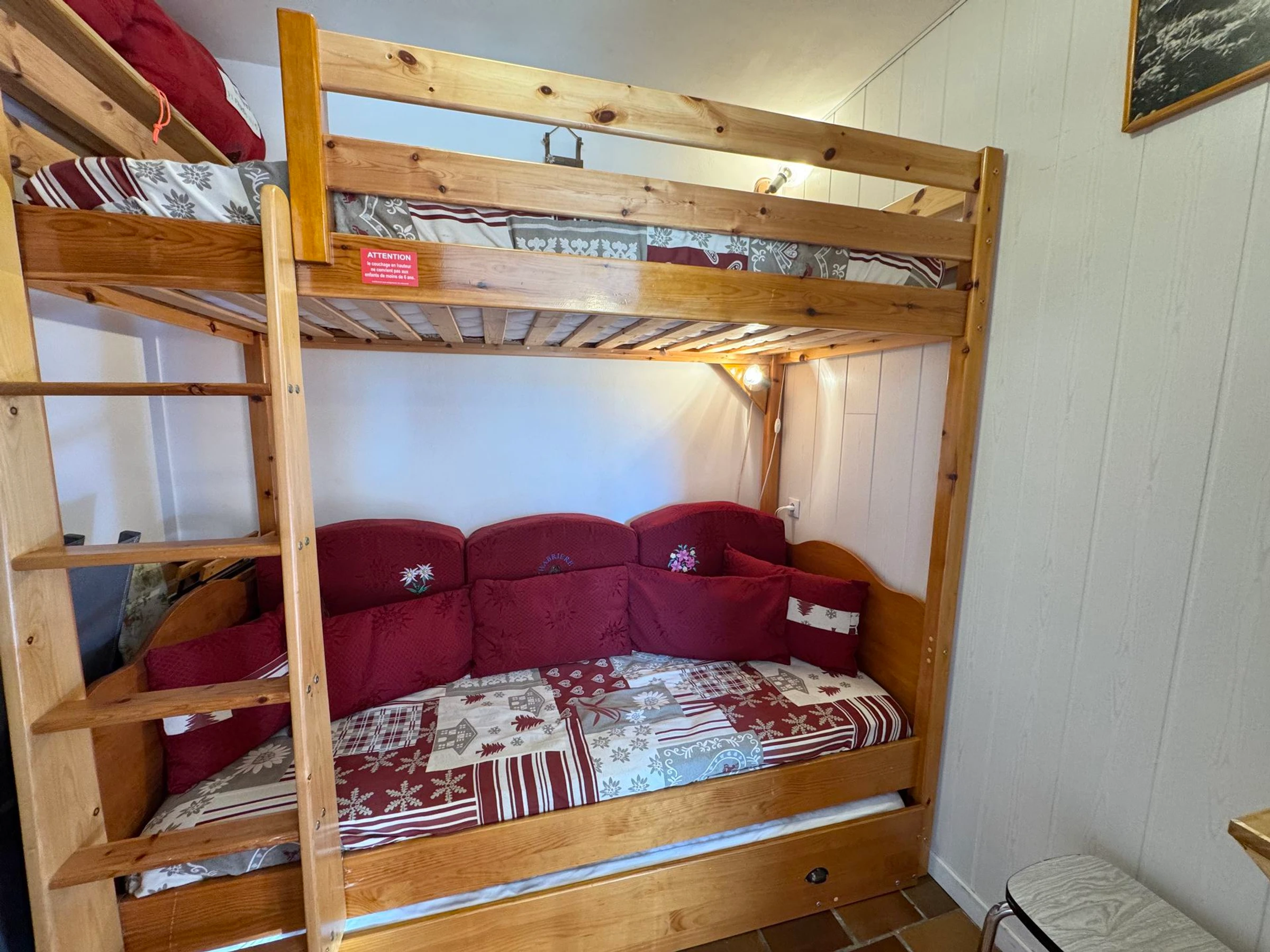 The Agence de la Forêt Blanche offers a pleasant 21 m² apartment located in a family-friendly residence, very close to the slopes and shops. It comprises a cabin with a bunk bed and a fold-down double bed that pulls out from the wall (please handle with care due to its weight). You will have a bathroom with a shower, toilet, and washing machine. The kitchen is fully equipped and includes a kettle and a filter coffee machine. The apartment is located on the ground floor and has a private terrace. It is approximately 150 meters from the slopes and 200 meters from the shops. The apartment does not have a private parking space, but there is a parking lot reserved for residents.