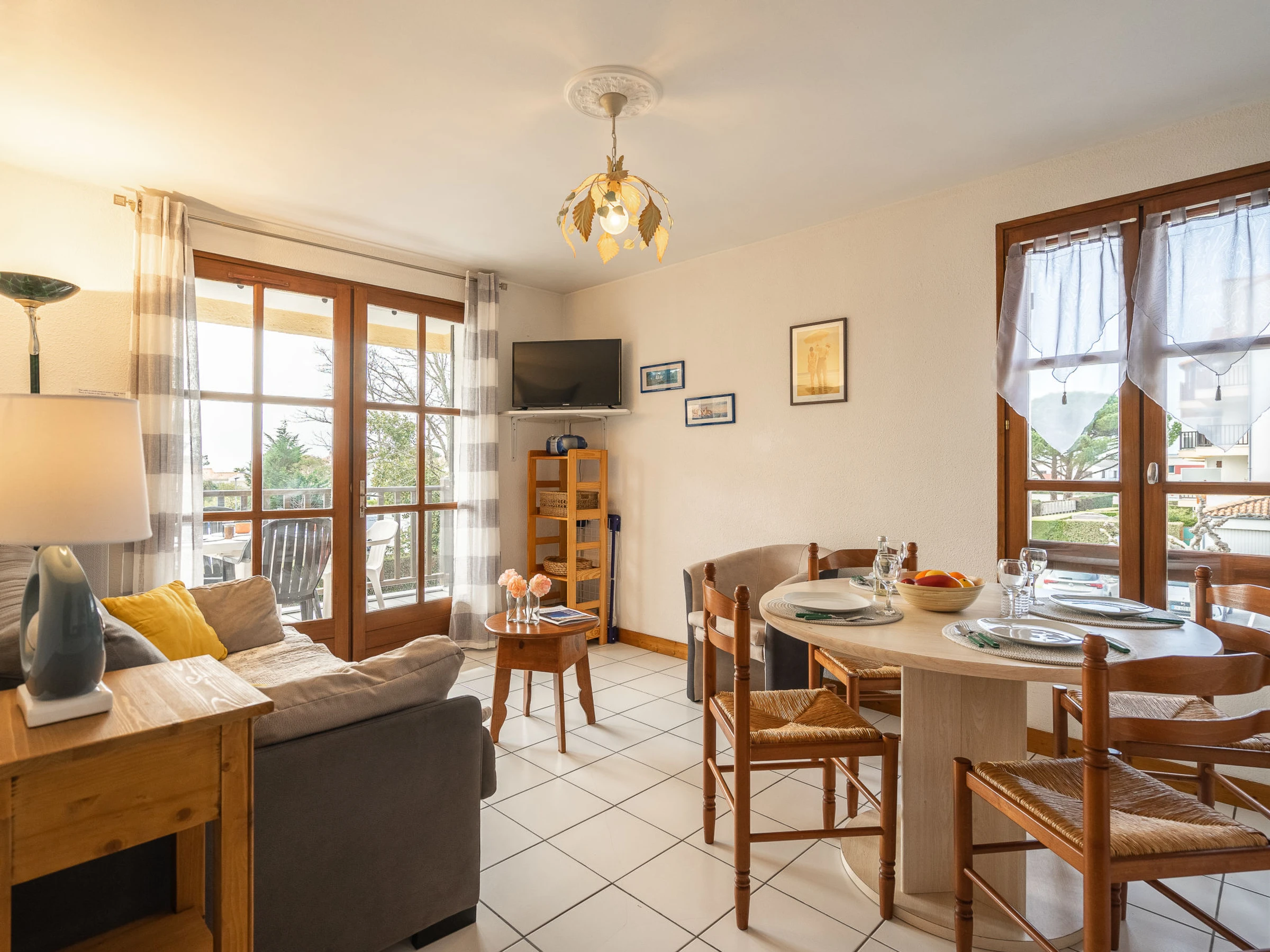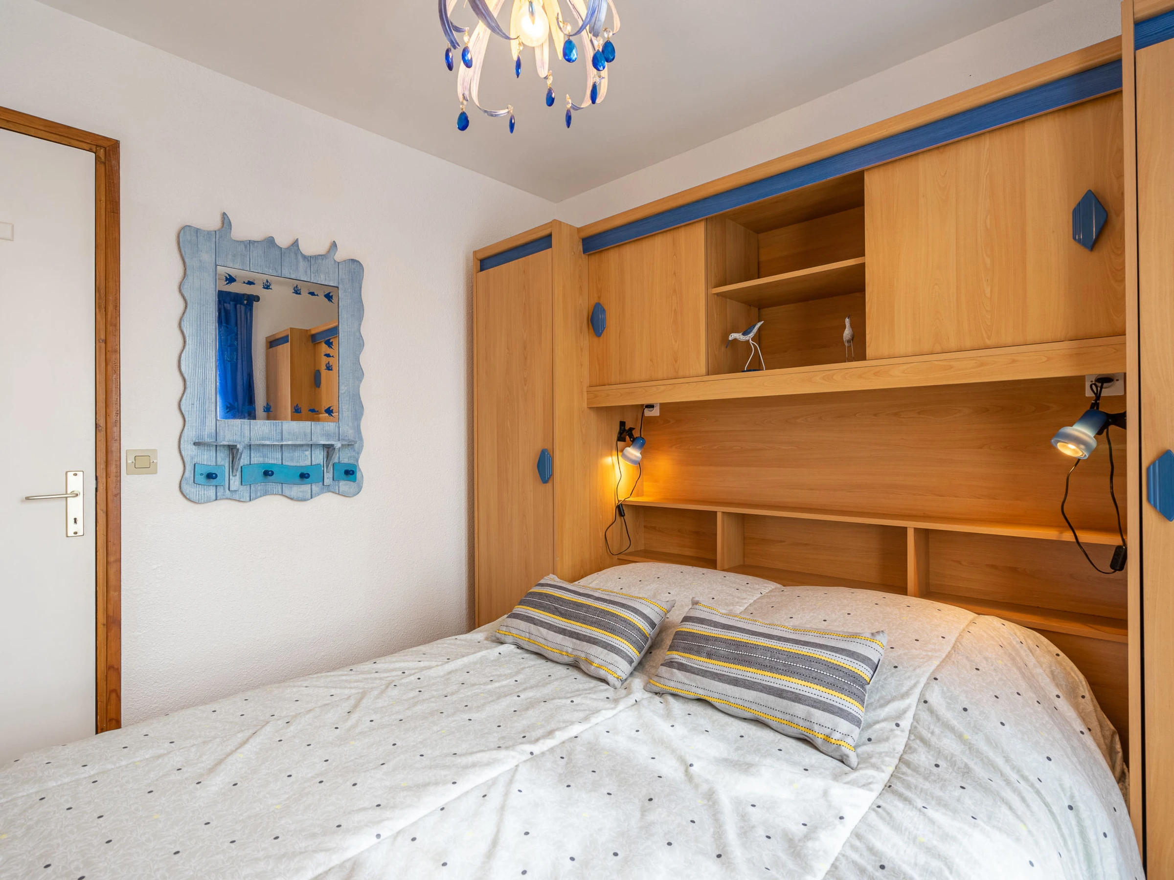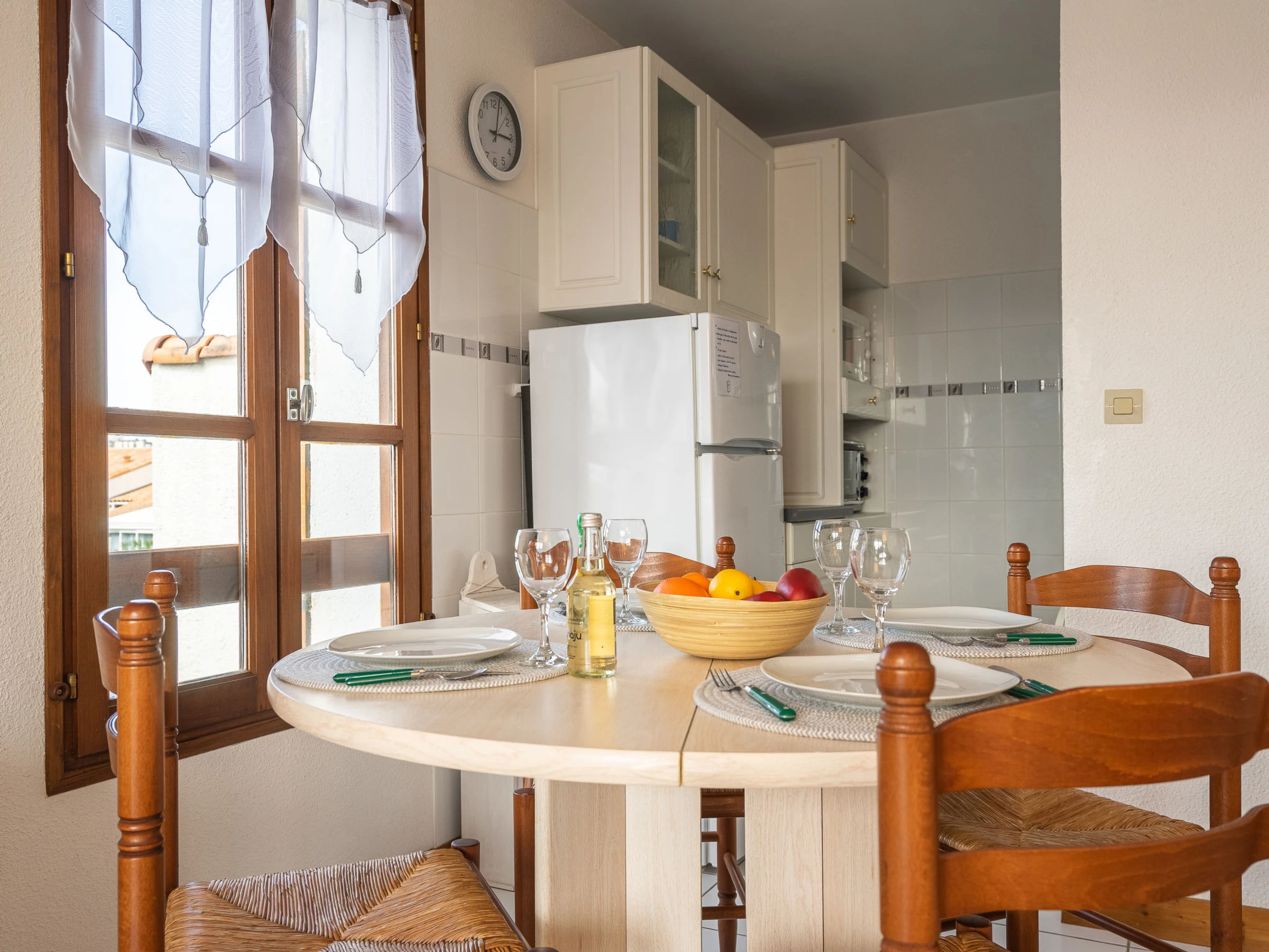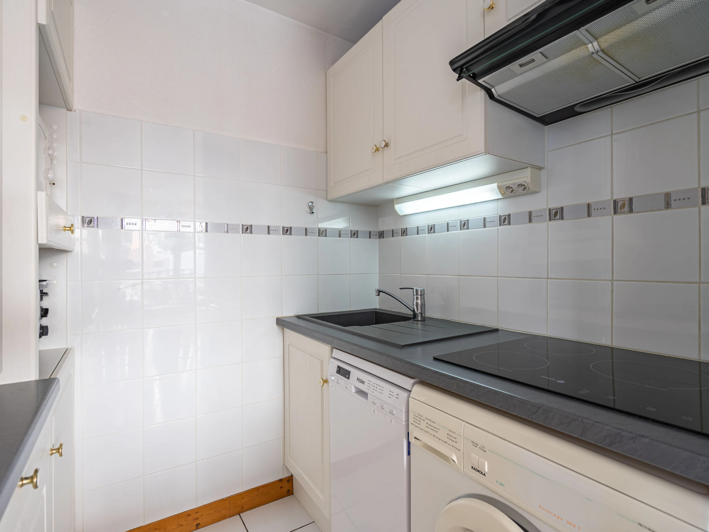 2-room apartment 33 m2 on 1st floor. Living/dining room with 1 double sofabed (1 x 140 cm, length 190 cm), TV (flat screen). Exit to the balcony. 1 room with 1 french bed (1 x 140 cm, length 190 cm). Kitchenette (mini-oven, dishwasher, 3 induction hot plates, microwave, freezer). Bathroom, sep. WC. Electric heating. Small balcony 6 m2, south-west facing position. Terrace furniture. Facilities: washing machine. Internet (WiFi, extra). Reserved parking space n 31. Please note: smoke alarm.