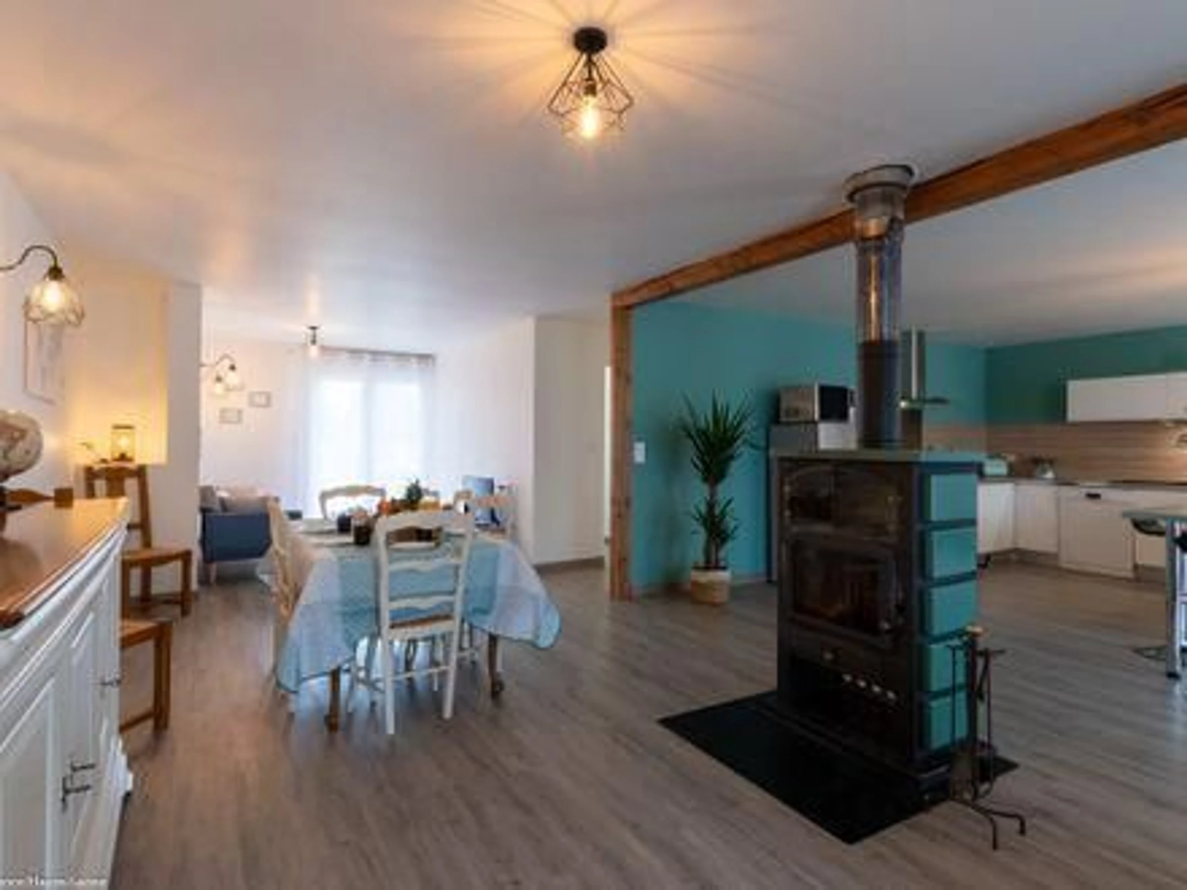 On the same level (access from the outside by a few steps), you will enjoy the beautiful living room, very bright and a spacious and modern equipped kitchen: induction hob with hood, oven, microwave, dishwasher, fridge-freezer, traditional coffee maker, pod coffee maker, kettle, toaster. The living room, with direct access to the terrace and the garden, includes a central wood stove, a flat screen TV, board games, books, a dining area, two convertible sofa beds, which can accommodate two additional people (on request). A bedroom for 2 people with 1 bed 160/200, 1 bedroom for 4 people with 2 trundle beds 80/200 and 1 bed 160/200. A bathroom with double sink and shower, hair dryer. A separate toilet with washbasin and washing machine. A storage room with maintenance equipment; possibility of storing bicycles. Terrace at the back of the house without any vis-à-vis, and large garden.