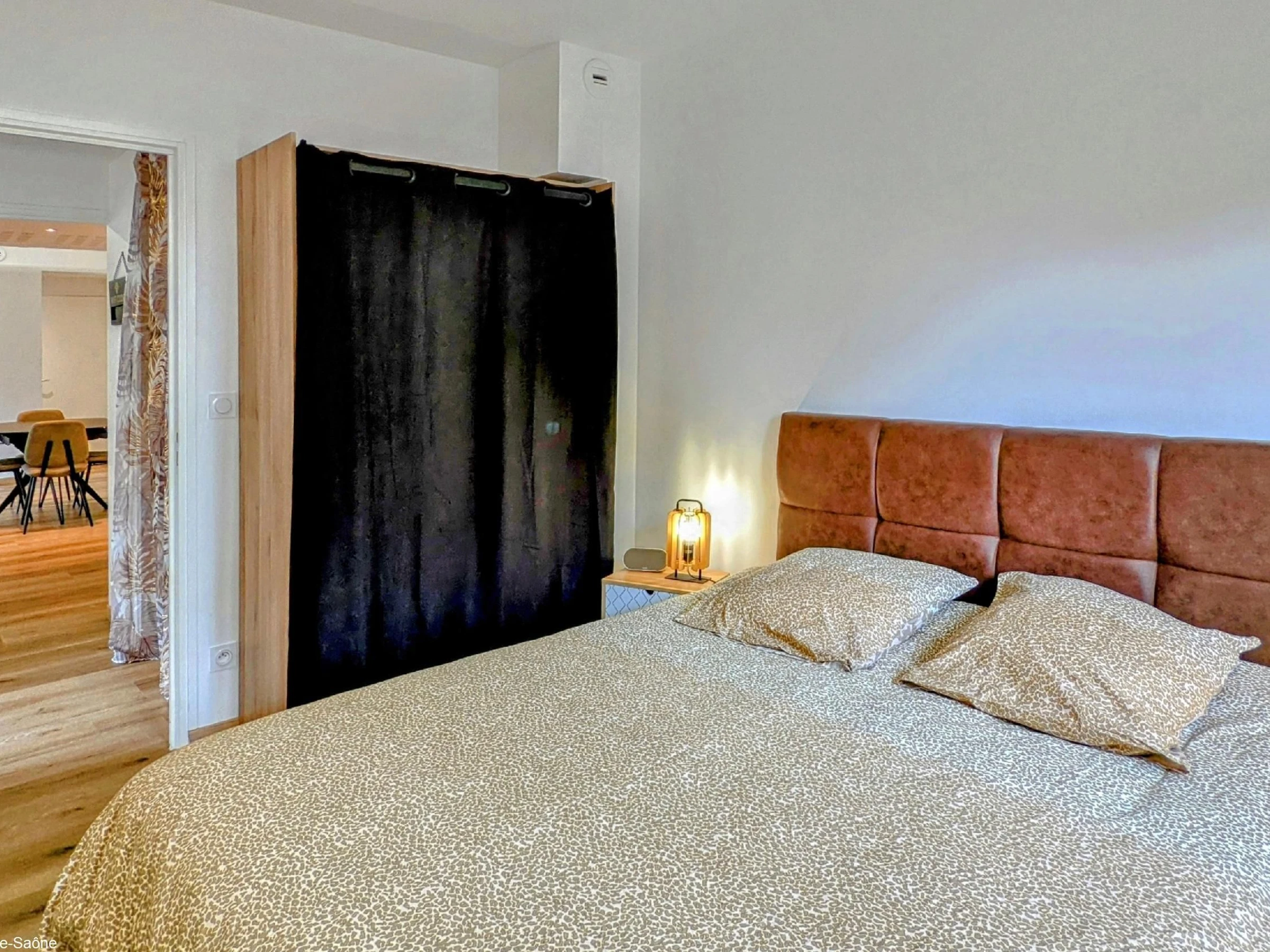 35 minutes from Luxeuil-les-Bains (spa resort, casino, and more), 40 minutes from Fougerolles (Cherry Ecomuseum), and numerous walks and hikes (Plateau des 1000 Etangs, Planche des Belles Filles, and more). Just steps from the historic center of Vesoul, this beautiful, spacious, and fully renovated single-story apartment is located on the ground floor of a small building. The apartment features a fully equipped kitchen opening onto the dining/living room, with a flat-screen TV and Wi-Fi. Two bedrooms, each with a 160 cm bed, a dressing room, a shower room, and a separate toilet. Private and secure parking (digital code). Baby crib and high chair available upon request.
