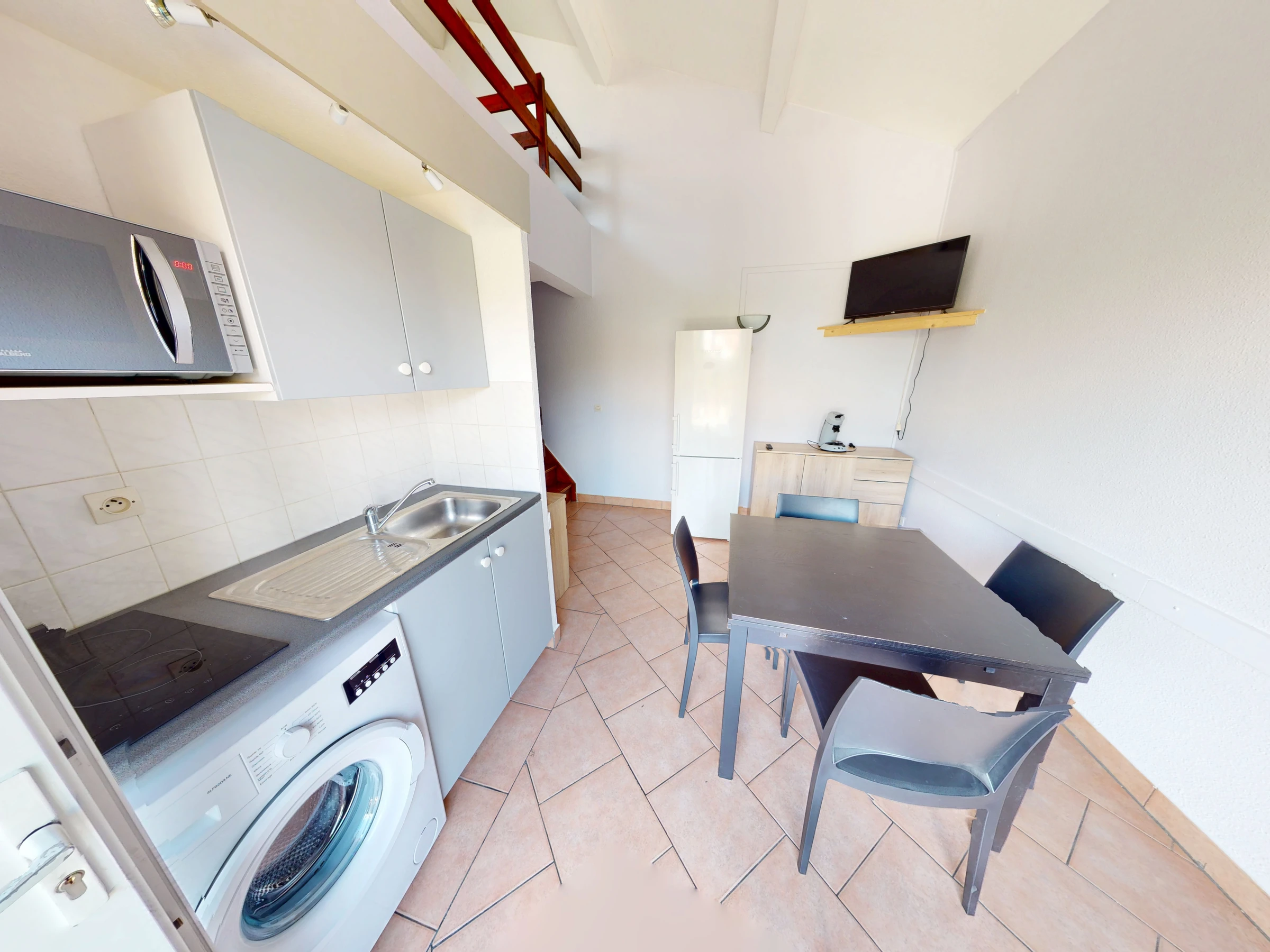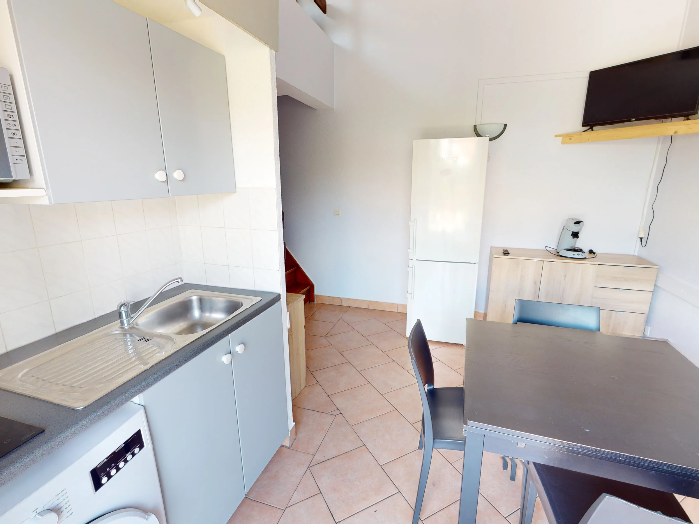 Fully furnished, it can accommodate up to 4 people thanks to a first bedroom on the ground floor equipped with a double bed. A second bedroom on the mezzanine, also equipped with a double bed.