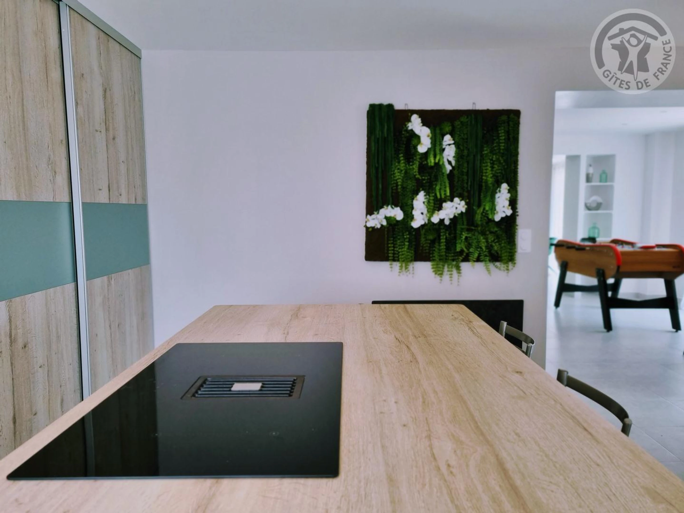 Entrance to the fully equipped kitchen (dishwasher, Tassimo capsule coffee maker, oven, microwave, 4-burner induction hob with integrated extractor hood, washing machine). Dining area.