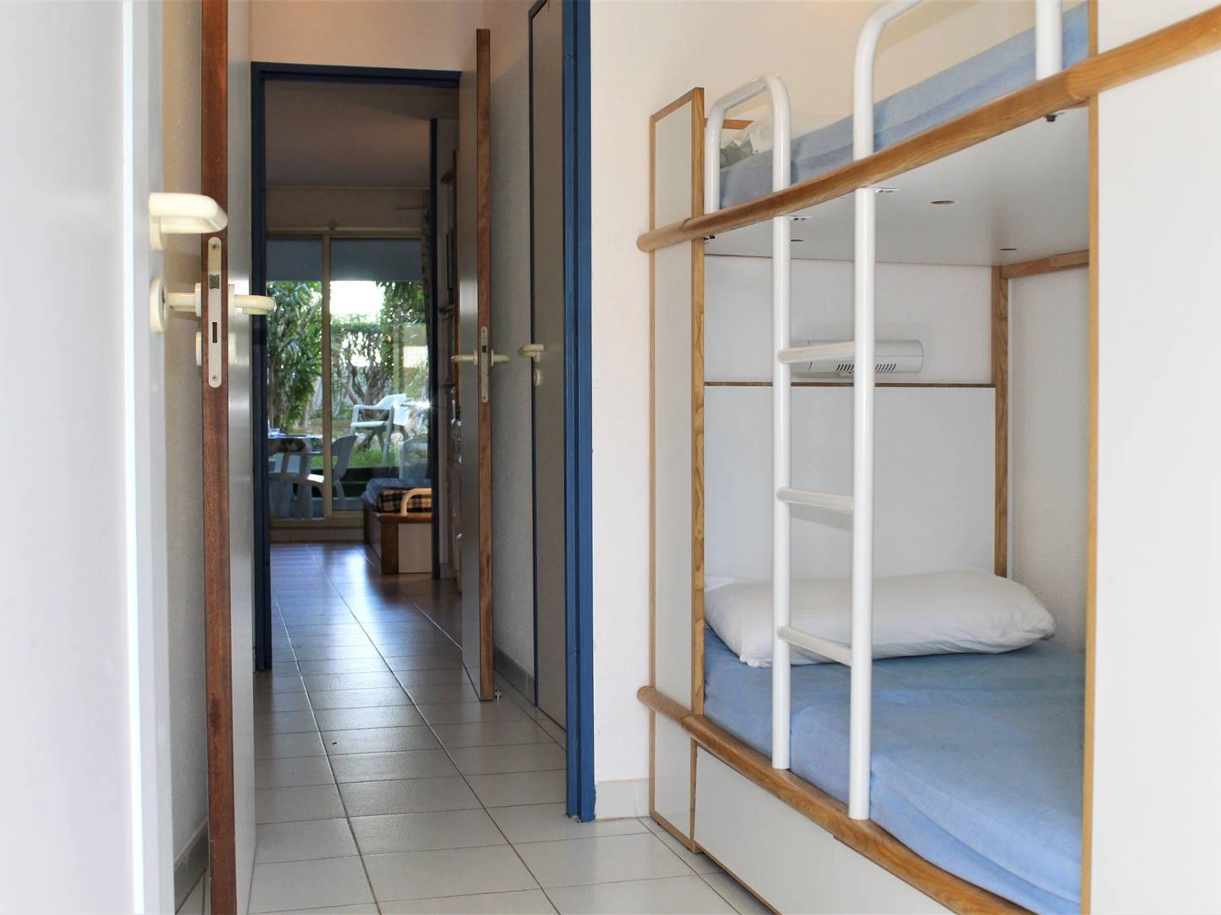 Apartment on the ground floor. It consists of a sleeping area with two bunk beds at the entrance, a second bedroom with a 140 cm double bed. A bathroom with separate toilet. A fully equipped kitchen (washing machine, oven, refrigerator) open to the living room-dining room. A terrace with garden and direct access to the beach completes this apartment. Household linen is not provided, you can rent it.