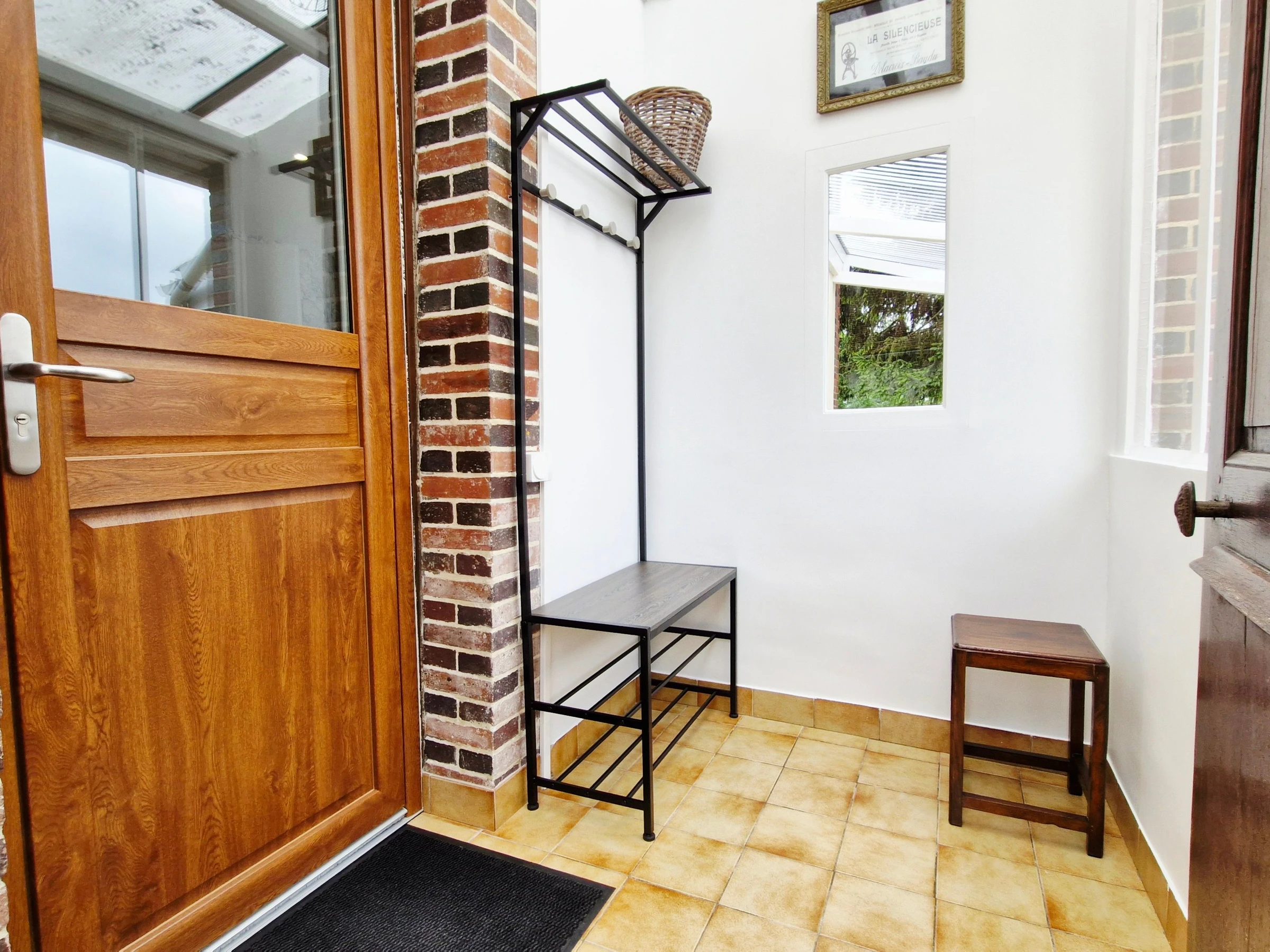 On the ground floor, you enter the house through a small veranda converted into a cloakroom, leading to the large open-plan living area comprising the kitchen, dining room, and lounge (with television and board games).