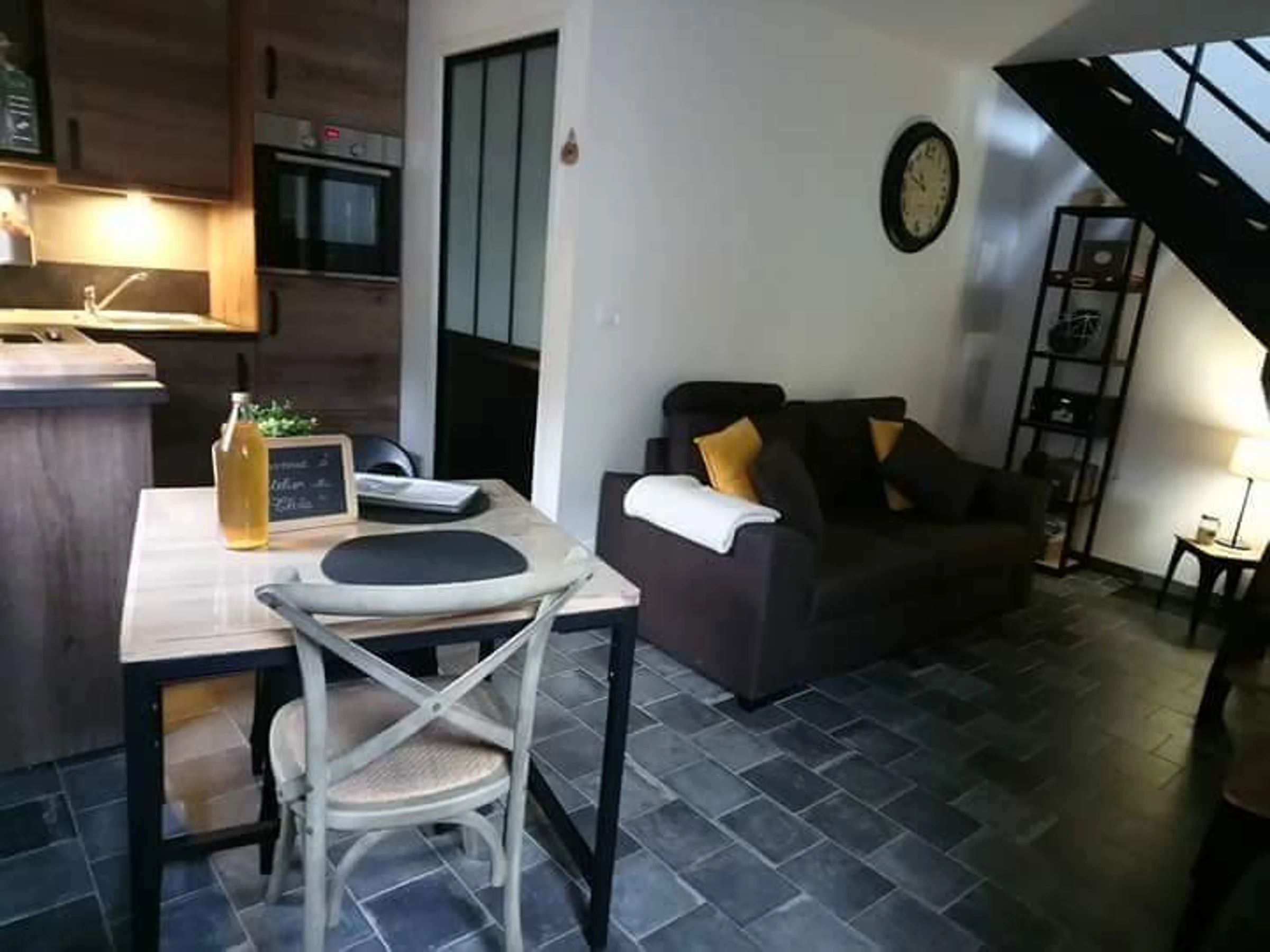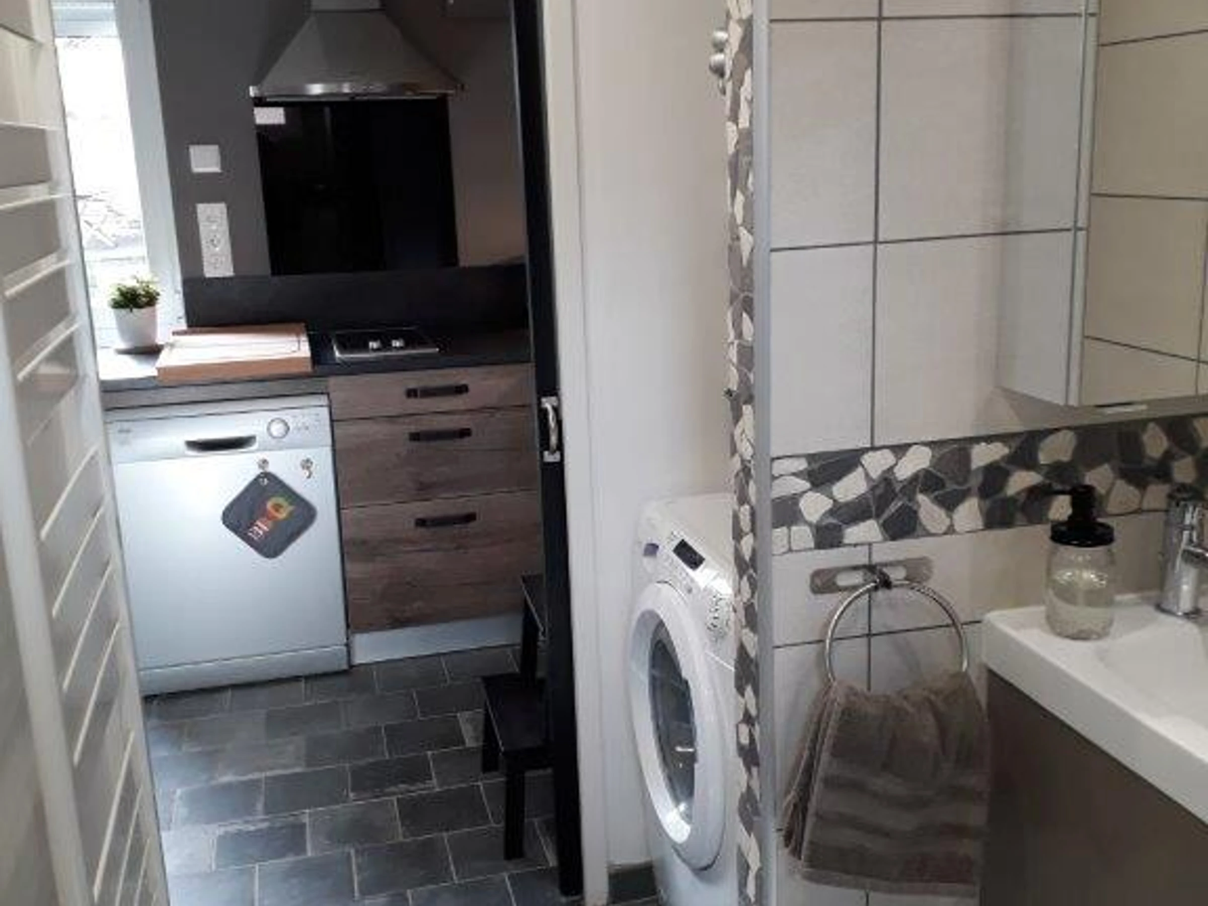 Free day of arrival. 1 km from the center of the village, 43 m² very comfortable gîte in "workshop" style with courtyard shared with the owners. Private garden 25m² with privacy screens, barbecue (charcoal), 2 deckchairs, parasol, trees, vegetable gardens, flowers, barbecue, garden furniture, deckchairs. Access to agricultural land with chickens. Private parking space in the barn (and covered shelter for a car and / or bicycles and motorcycles), secure garden shed. Ground floor: Living room with convertible sofa (140x190cm), fitted kitchen area (fridge-freezer, dishwasher, microwave, 80cm TV with DVD player and USB port, HIFI), bathroom with Italian shower , washbasin, WC, washer-dryer. Floor: landing with an office area and a bedroom with either a 180x200 bed or 2 90x200 beds. WIFI, baby equipment on request, sheets provided. Wifi (fiber). Electric heating, charges included. Additional person (20 € / stay). Gîte all charges included. Julie and Tanguy welcome you to "l'Atelier de Théa" where you can enjoy the proximity of the forest close to the cottage. Come and discover our magnificent Mare à Goriaux, our UNESCO-listed mining site 2km away with authentic renovated miners' settlements, the Trouée d'Aremberg and its legendary Paris-Roubaix cycle race called "Hell of the North". Wallers-Arenberg, unique with its 3 headframes, is one of the major places in the mining basin listed as a UNESCO World Heritage Site. 10km away: Saint Amand les Eaux spa resort (pretty tower, Pasino, bowling, restaurants, cinema, swimming pool, port). In the center of Wallers, shops: bakery, grocery store, fast food, doctors, pharmacy ... Come and discover our Attractive and Dynamic city! Saint Amand-Les-Eaux (spa town, casino) 12 km, Valenciennes 10 km, Orchies 22 km, Le Quesnoy 25 km, Tournai 30 km, Cambrai 35 km, Lille 45 km, Lens 47 km, Maubeuge 50 km, Arras 62 km, Poss cleaning fee, Enclosed space, Washing machine, Dishwasher, TV, Tumble dryer, Sheets provided, Microwave, Cot, internet or wifi, Free day of arrival, Garden, company, Single-family house. Option to be paid on site: Cleaning charge. : 35 €. Towels / person: 8 €.