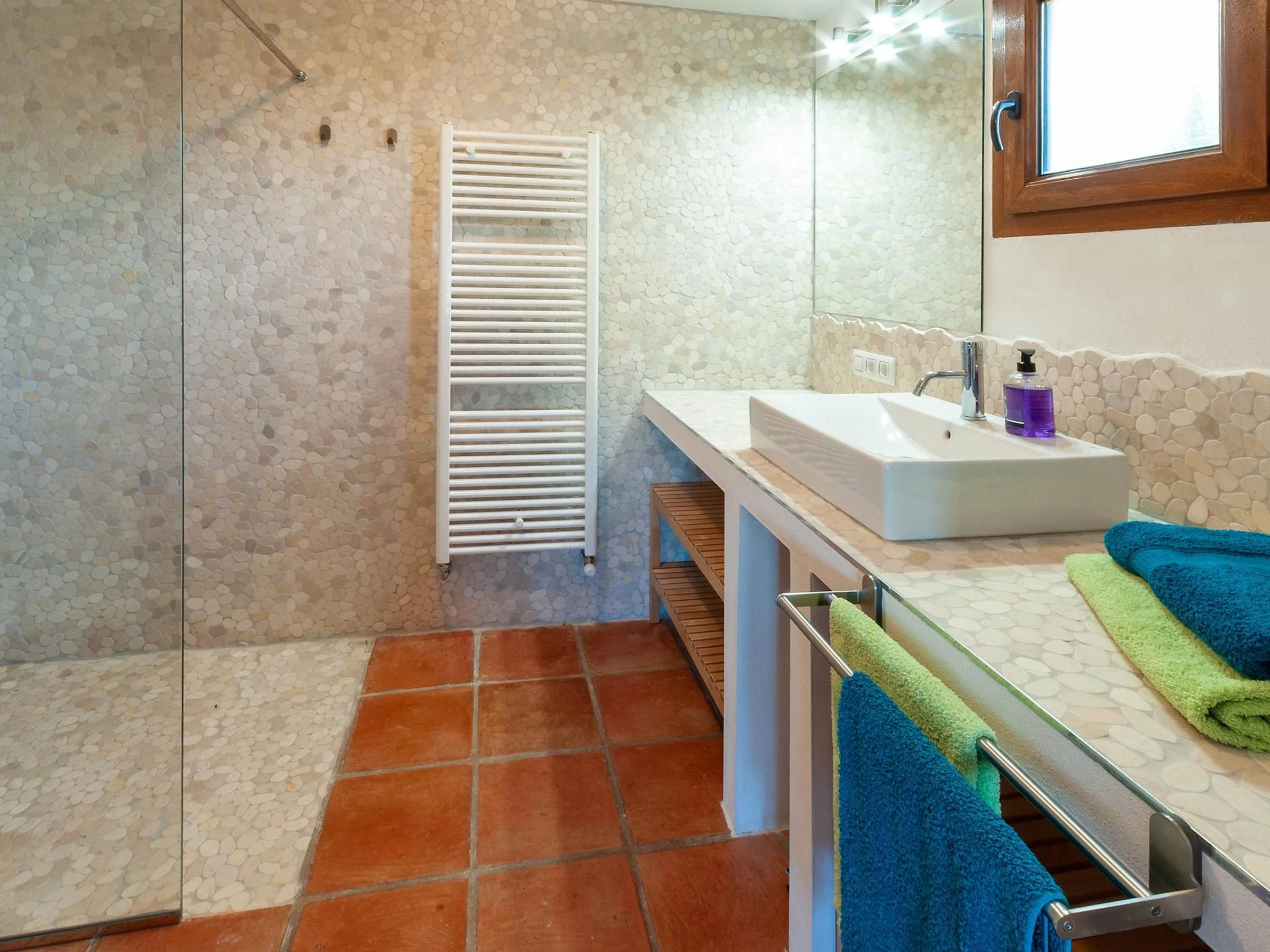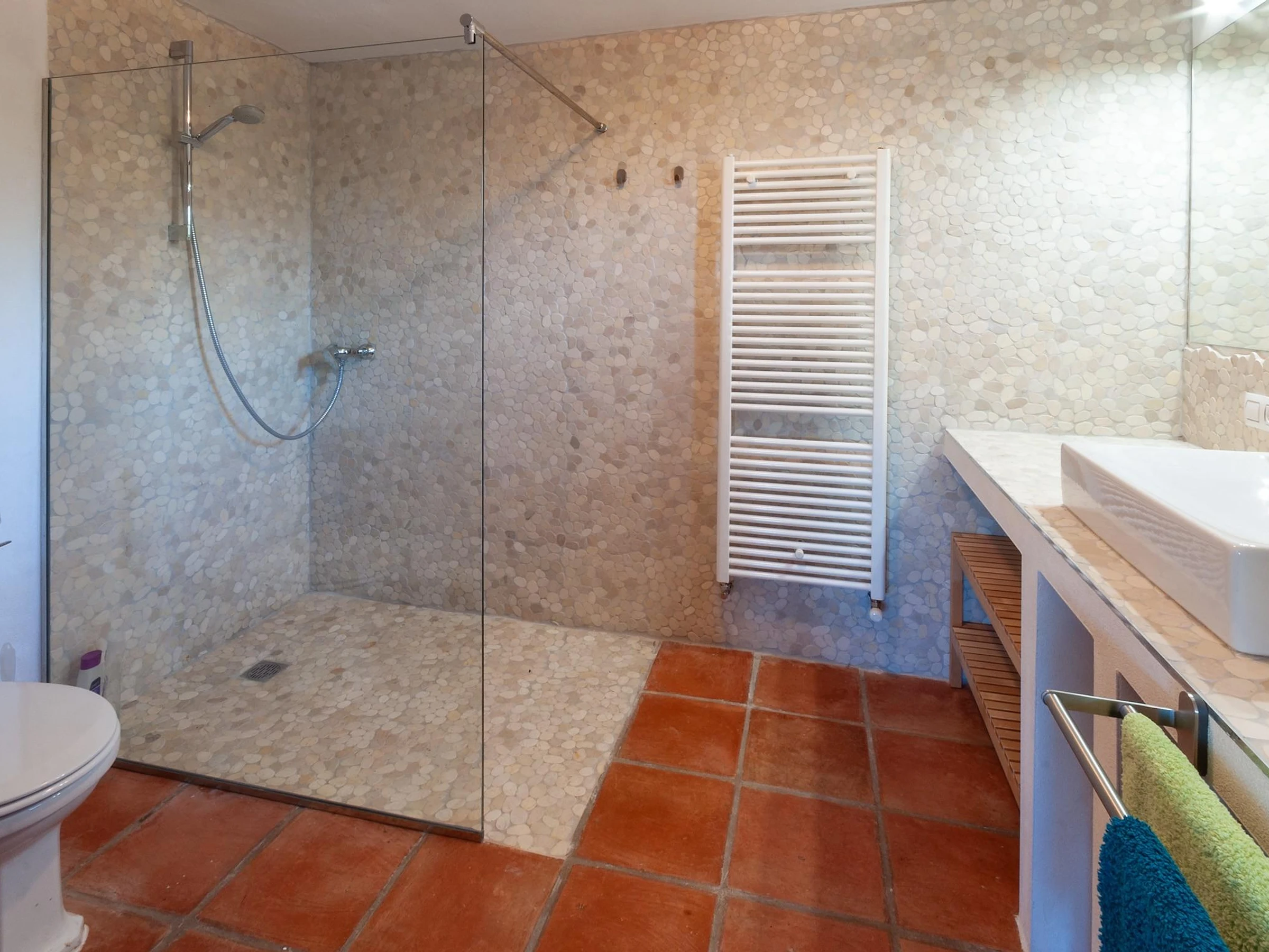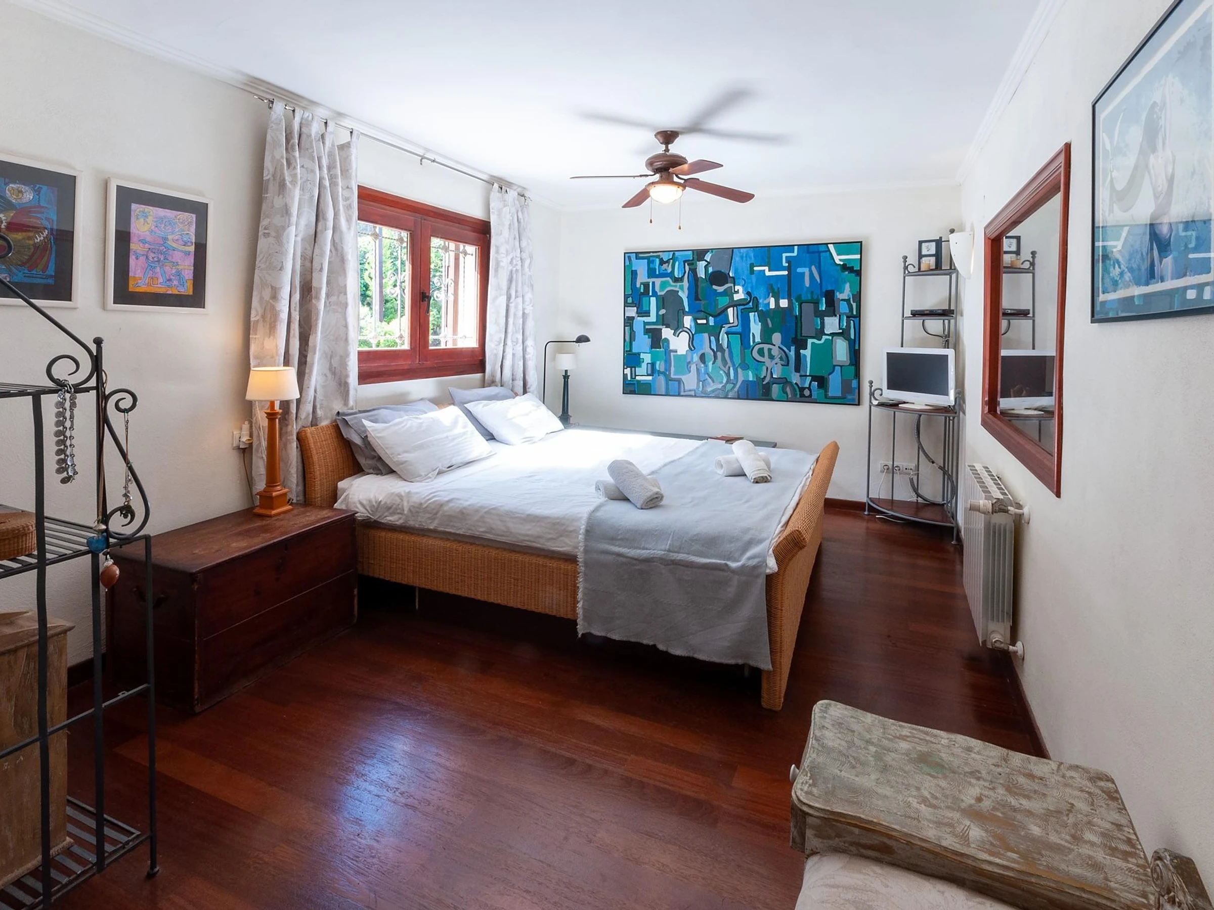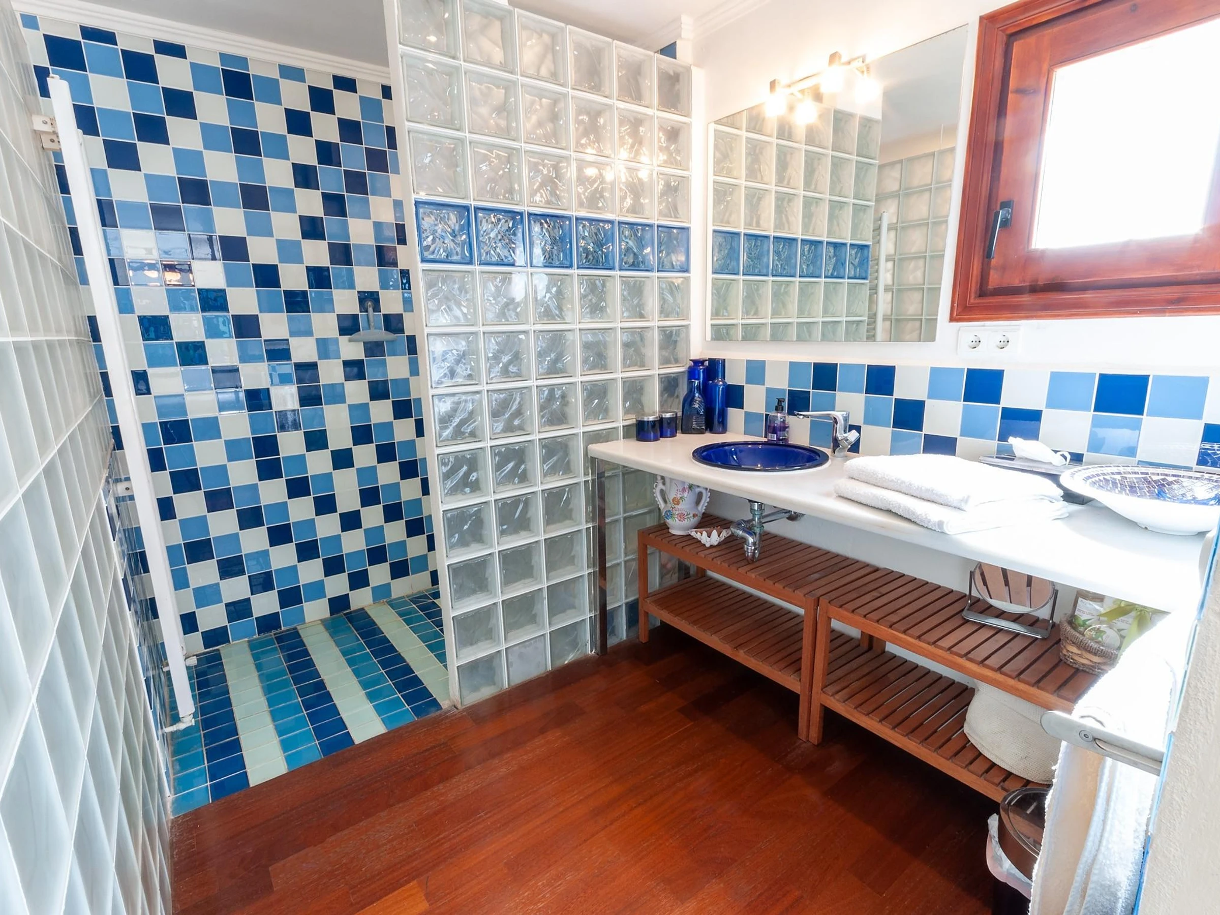The 2-storey house measures 190m2 and counts with 2 bedrooms with a double bed and an en-suite bathroom with shower (one on the ground floor and another on the first floor). On request, there is a baby bed and a high chair available. One extra person may sleep on the sofa-couch.