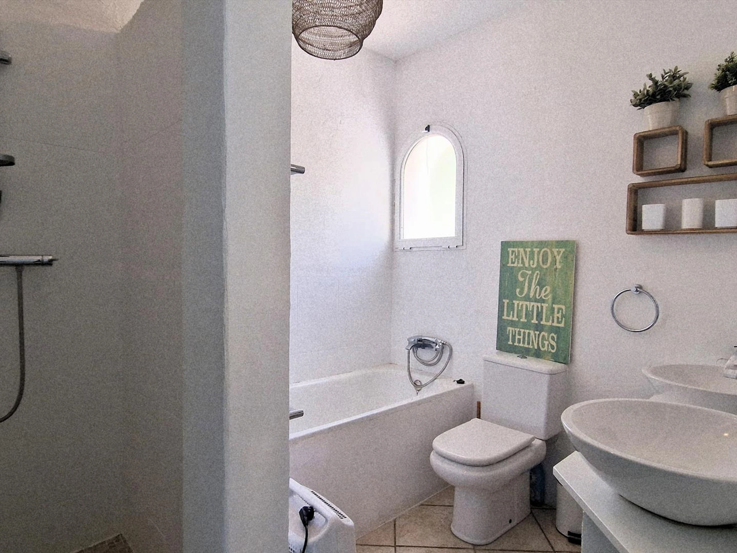 * Bathroom with sink, shower, toilet, and hairdryer Villa Exterior