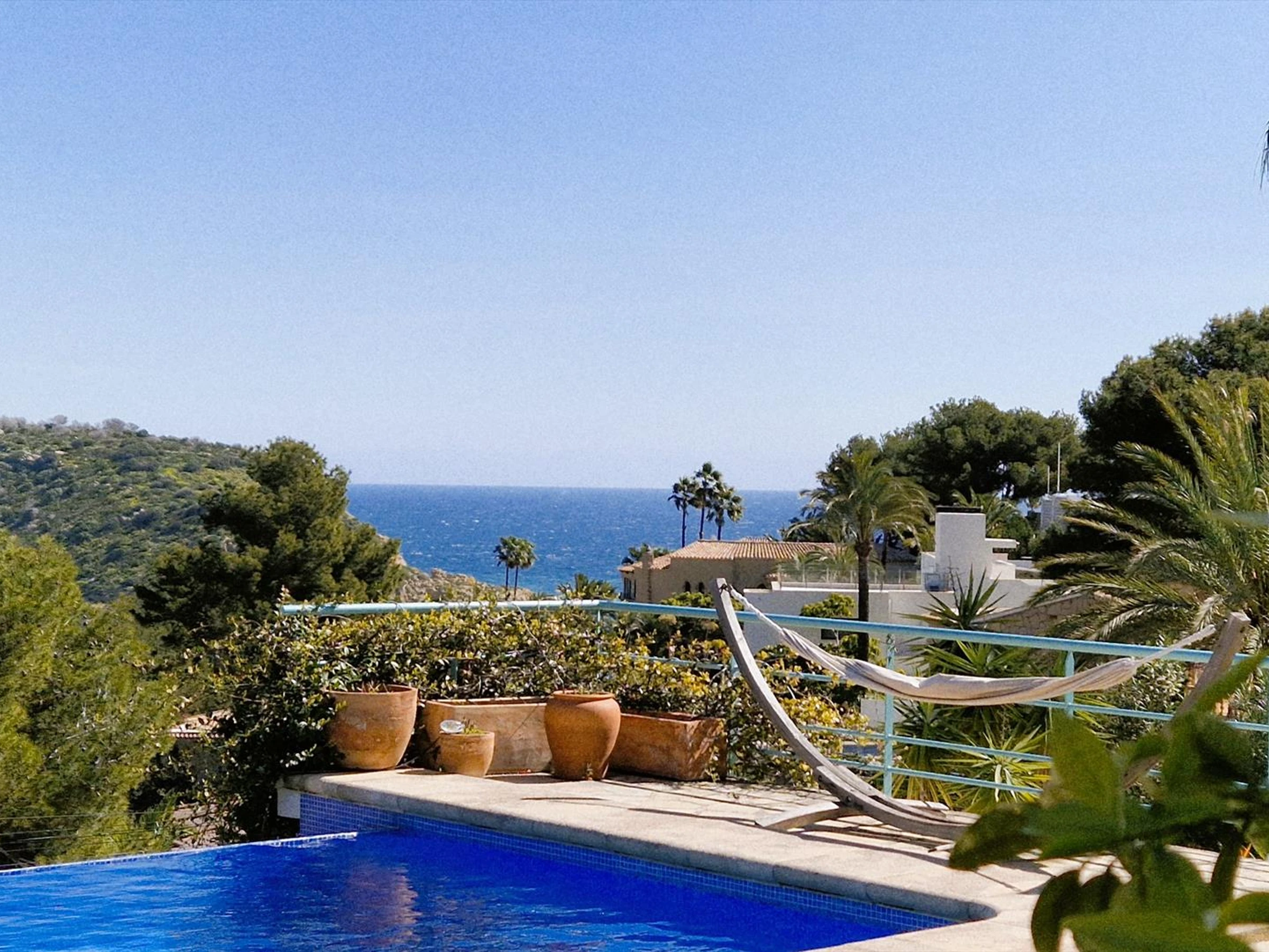 Magnificent holiday villa in Javea, Costa Blanca, Spain, with a private pool for 6-8 people. This holiday home with private grounds is located in the well-known and very popular residential area of ​​Porticholl, just 500 meters from the famous La Barraca beach and the Cala Clemence beach bar.