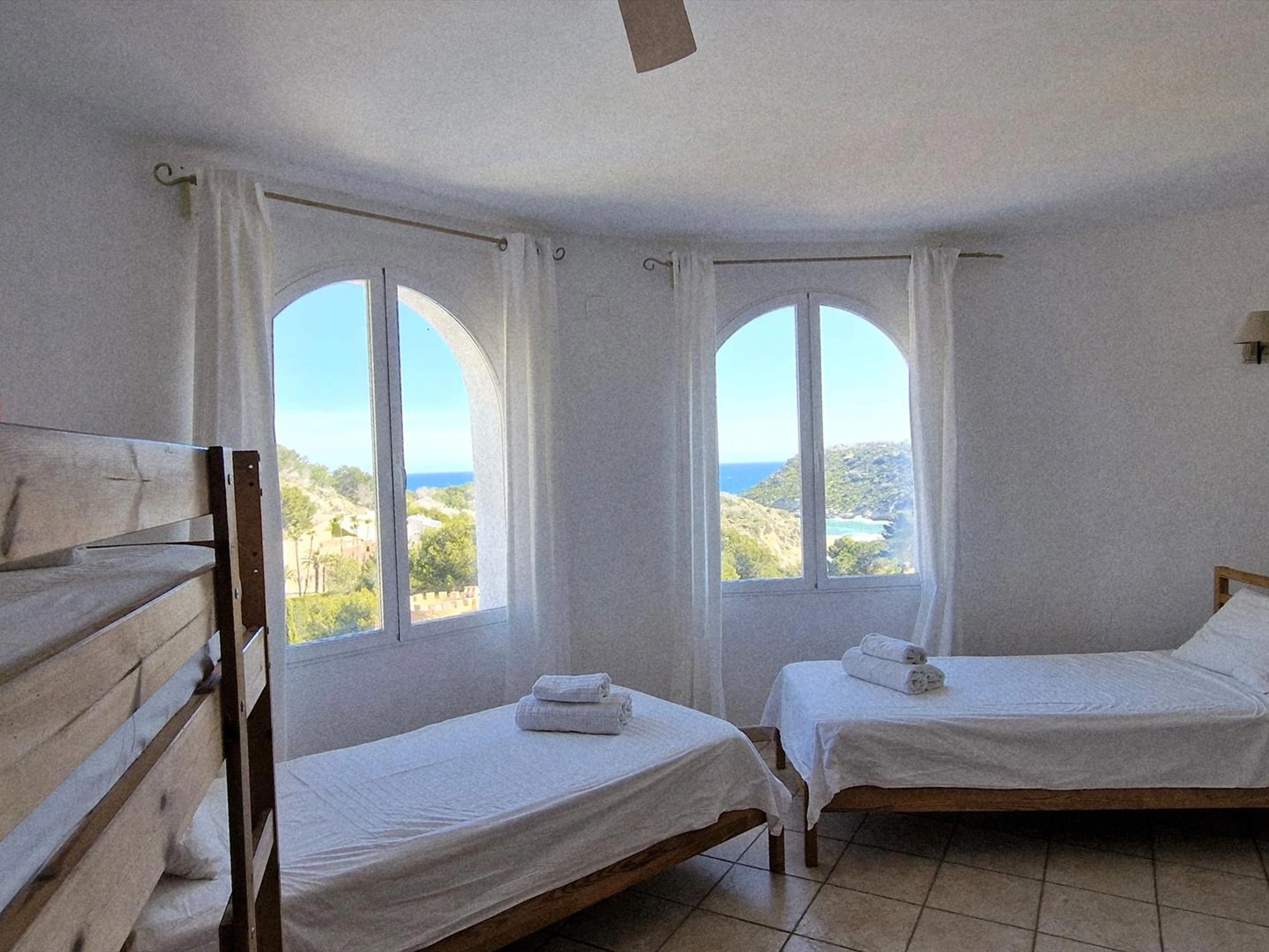 * Bedroom with air conditioning, two single beds (each 200 x 90 cm), two bunk