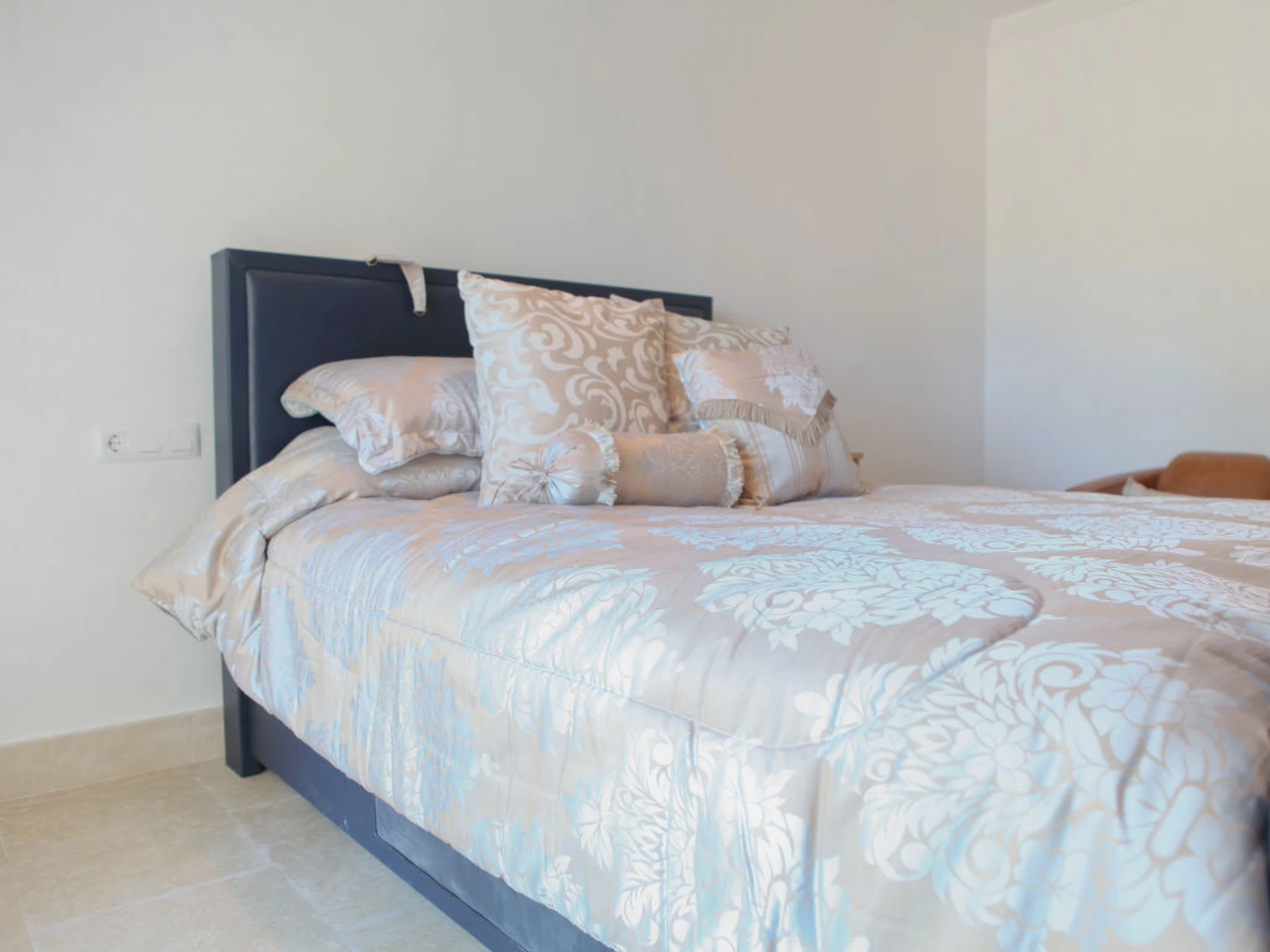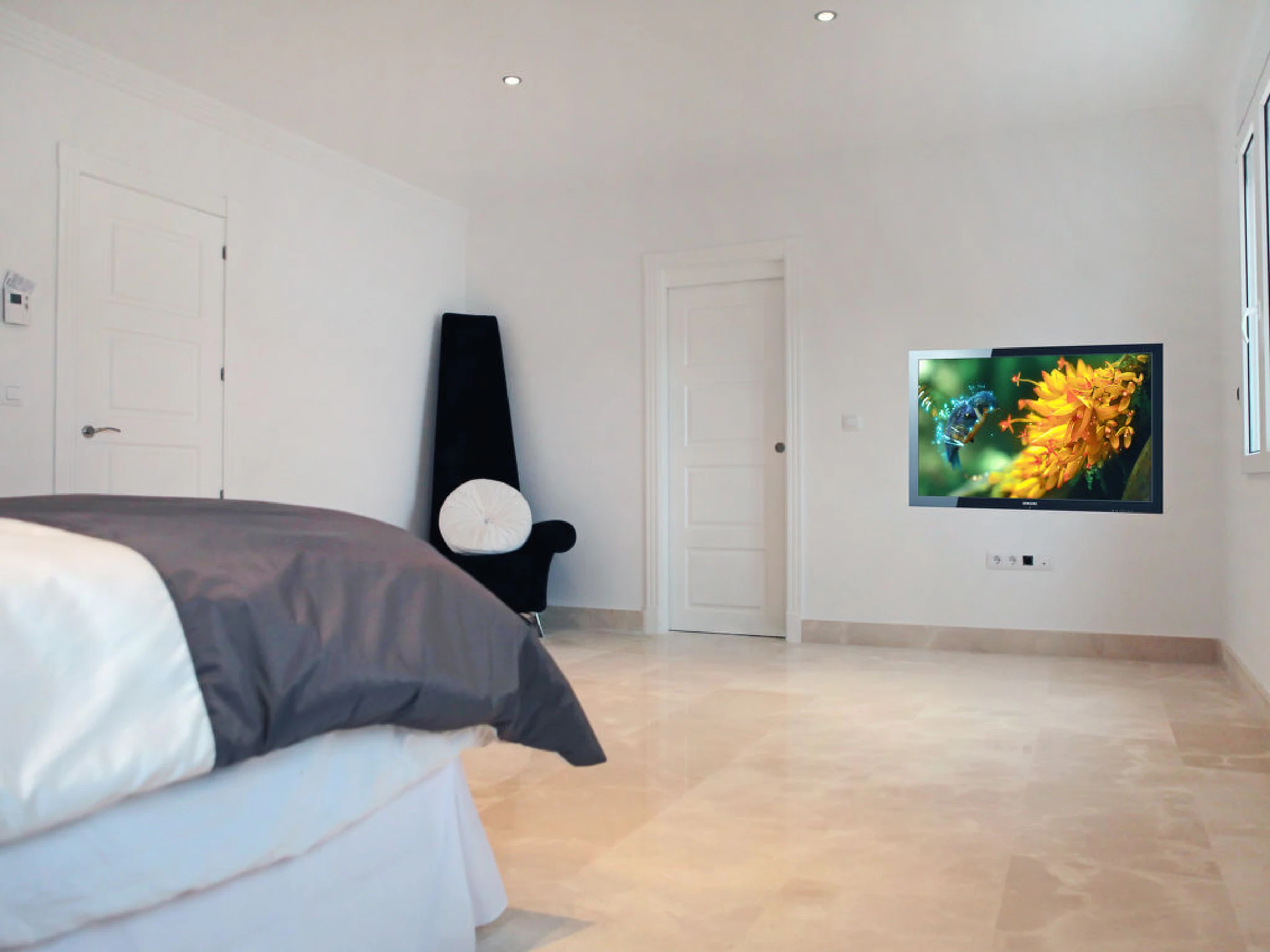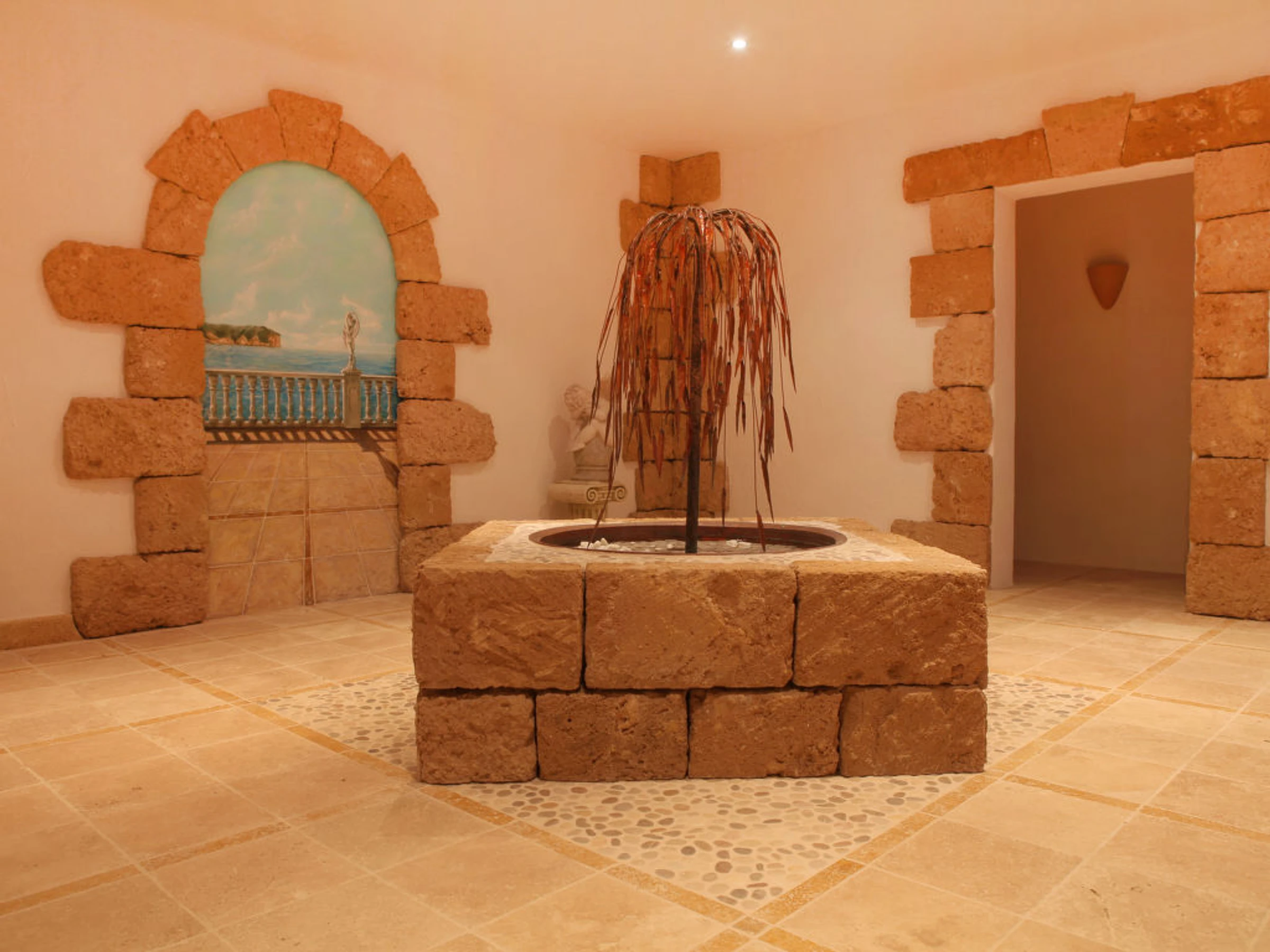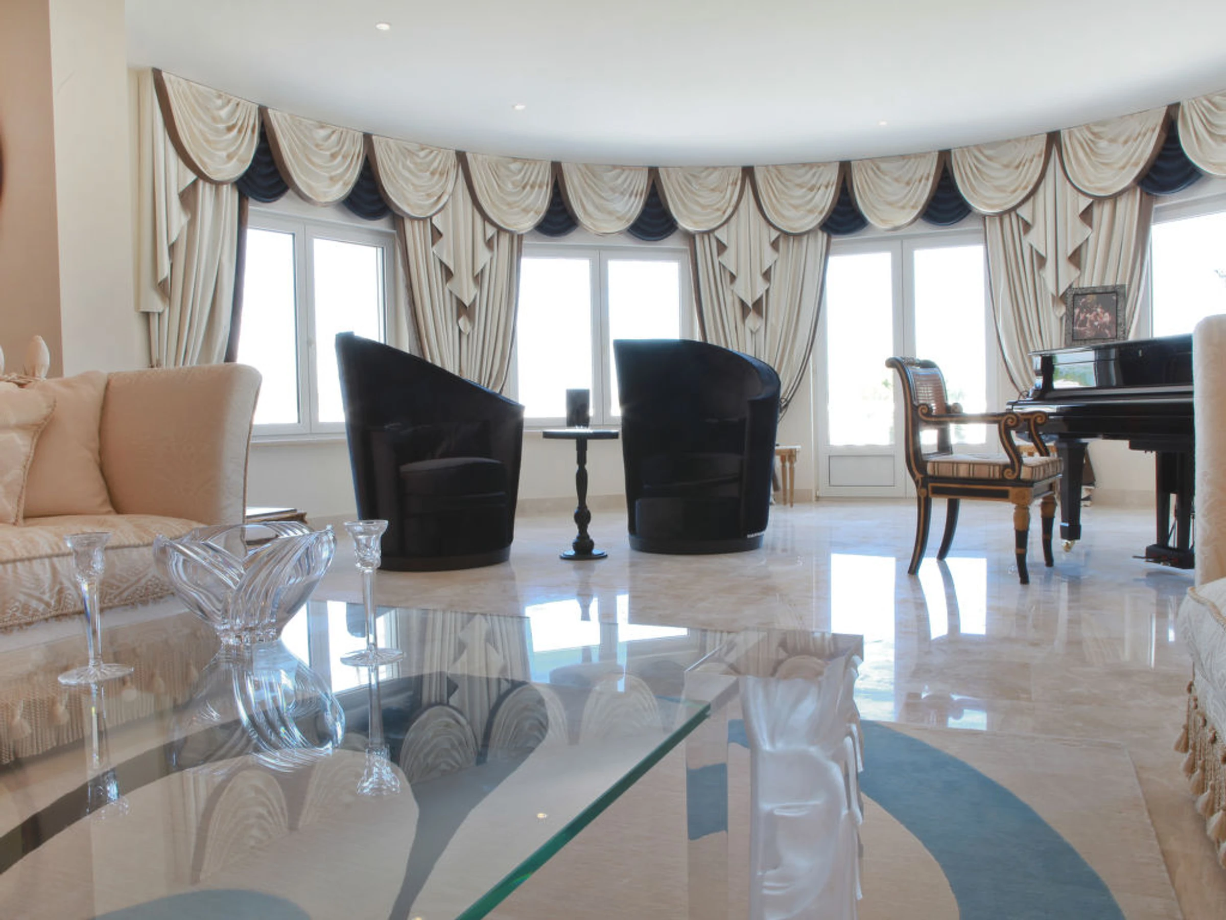 11-room villa 900 m2. Fully renovated in 2011, very luxurious and tasteful furnishings: large living room. Exit to the terrace. Dining room with hi-fi system. Exit to the terrace. Living room with satellite TV (flat screen). Exit to the garden. Exit to the terrace. Large kitchen (oven, dishwasher, X ceramic glass hob hotplates, microwave, freezer, electric coffee machine, steamer). Sep. WC. Floor heating. On the lower ground floor: 1 room with 1 french bed, shower/WC and flat screen. Exit to the garden. Upper floor: 1 room with 1 french bed (200 cm, length 200 cm), shower/WC, double hand-basin and flat screen. 1 room with 1 french bed, bath/shower/WC and flat screen. Exit to the terrace. 1 room with 1 french bed, shower/WC, whirlpool and flat screen. 1 room with 1 french bed (200 cm, length 200 cm), shower/WC, double hand-basin, whirlpool and flat screen. Exit to the terrace. Terrace furniture, deck chairs. Marvellous panoramic view of the countryside and the ocean. Facilities: washing machine, dryer, safe. Internet (WiFi, free). Reserved parking (fenced 10 cars). Please note: non-smoking house. From the hall there is another flight of stairs leading down to a further reception hall designed as an outdoor courtyard with a centre piece fountain. From here you will find the Bodega and the Laundry room, there is also a door that leads through to the bar/games room an impressive 80 square meters filled with activities. From here leads a door, to an inner lobby with a popcorn maker through to the 10 seated cinema, fitted out with luxurious electric seats all fully reclining and some with massage facilities and drinks holder for hot or cold drinks. From the Bar, another door leads to the fully equipped gymnasium and Spa, with Sauna and steam shower. AT-436501-A