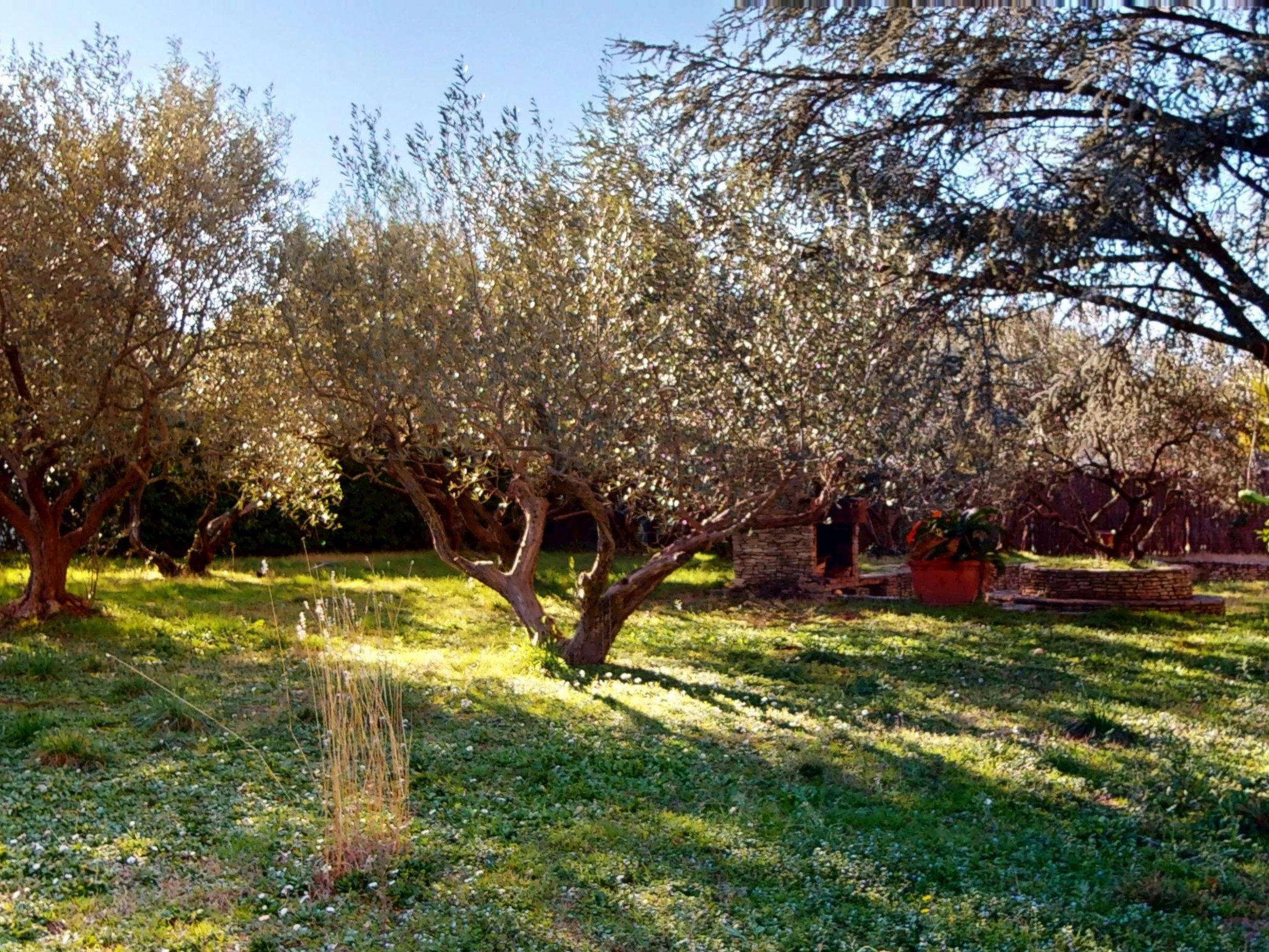 La casa cuenta con un amplio jardín paisajístico con olivos, pinos y otros árboles, así como con una piscina privada.