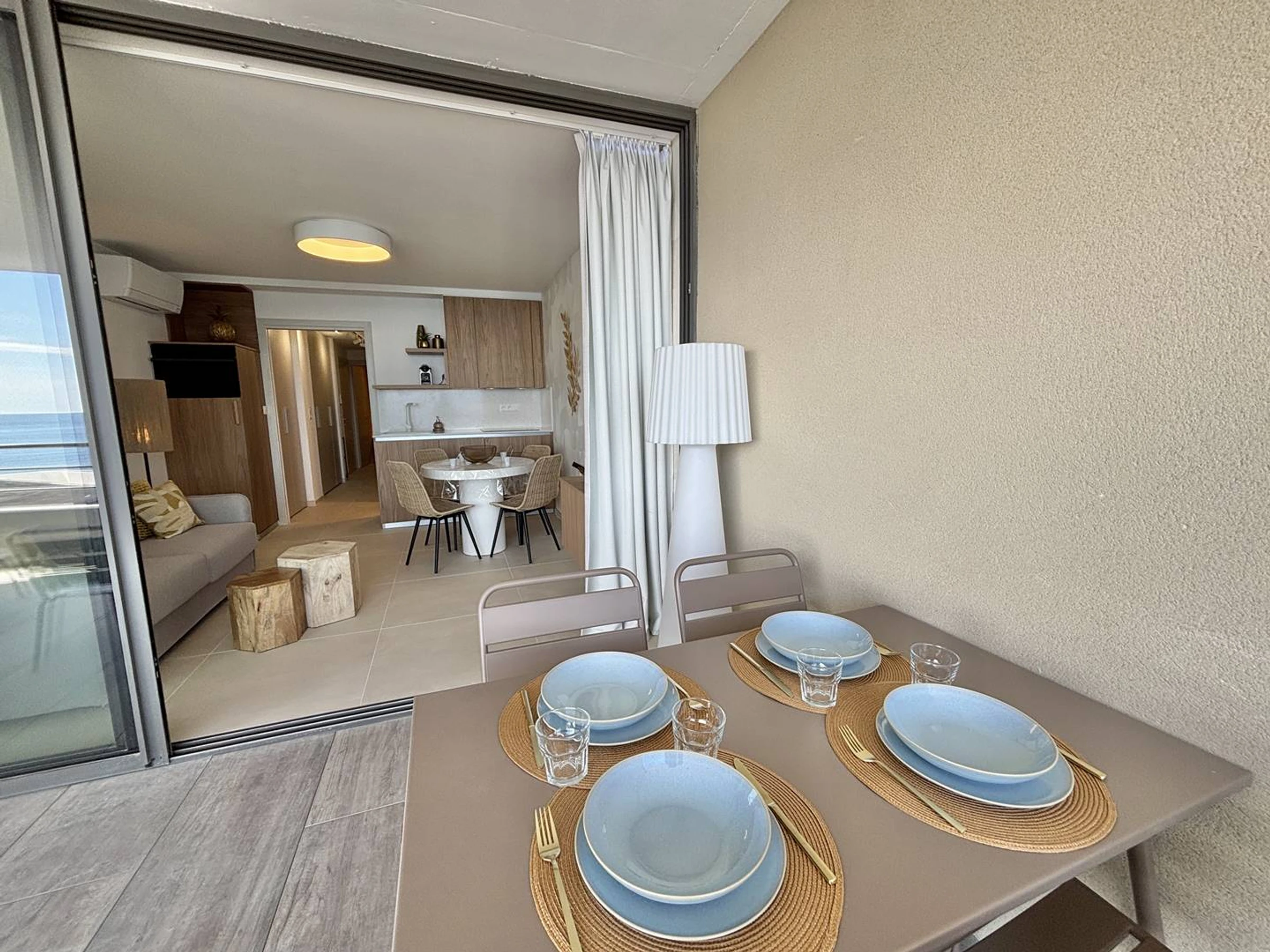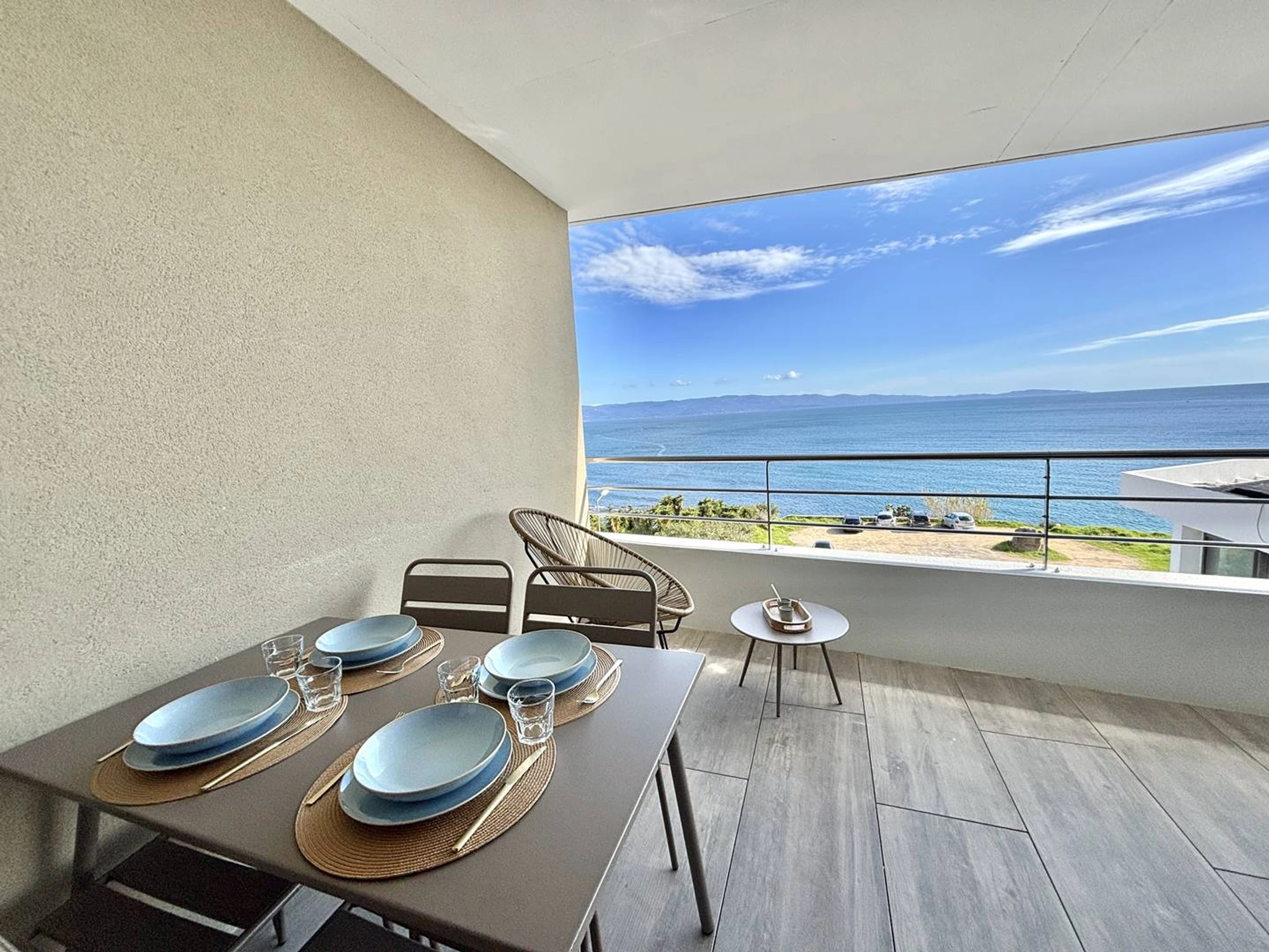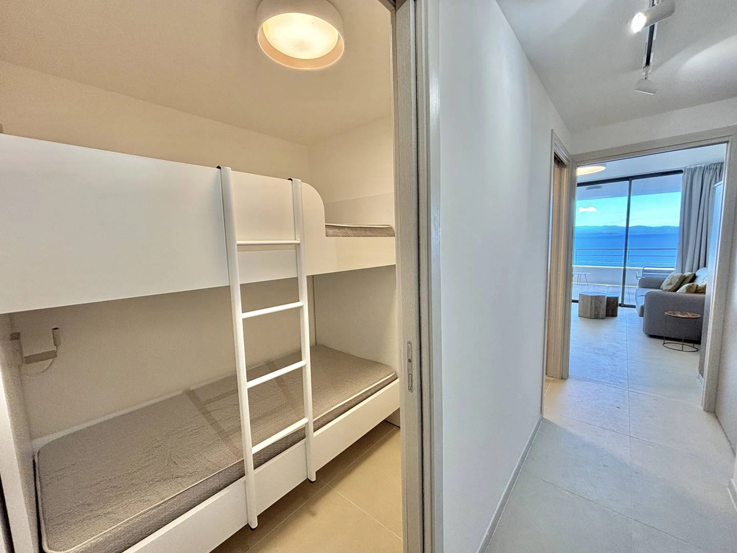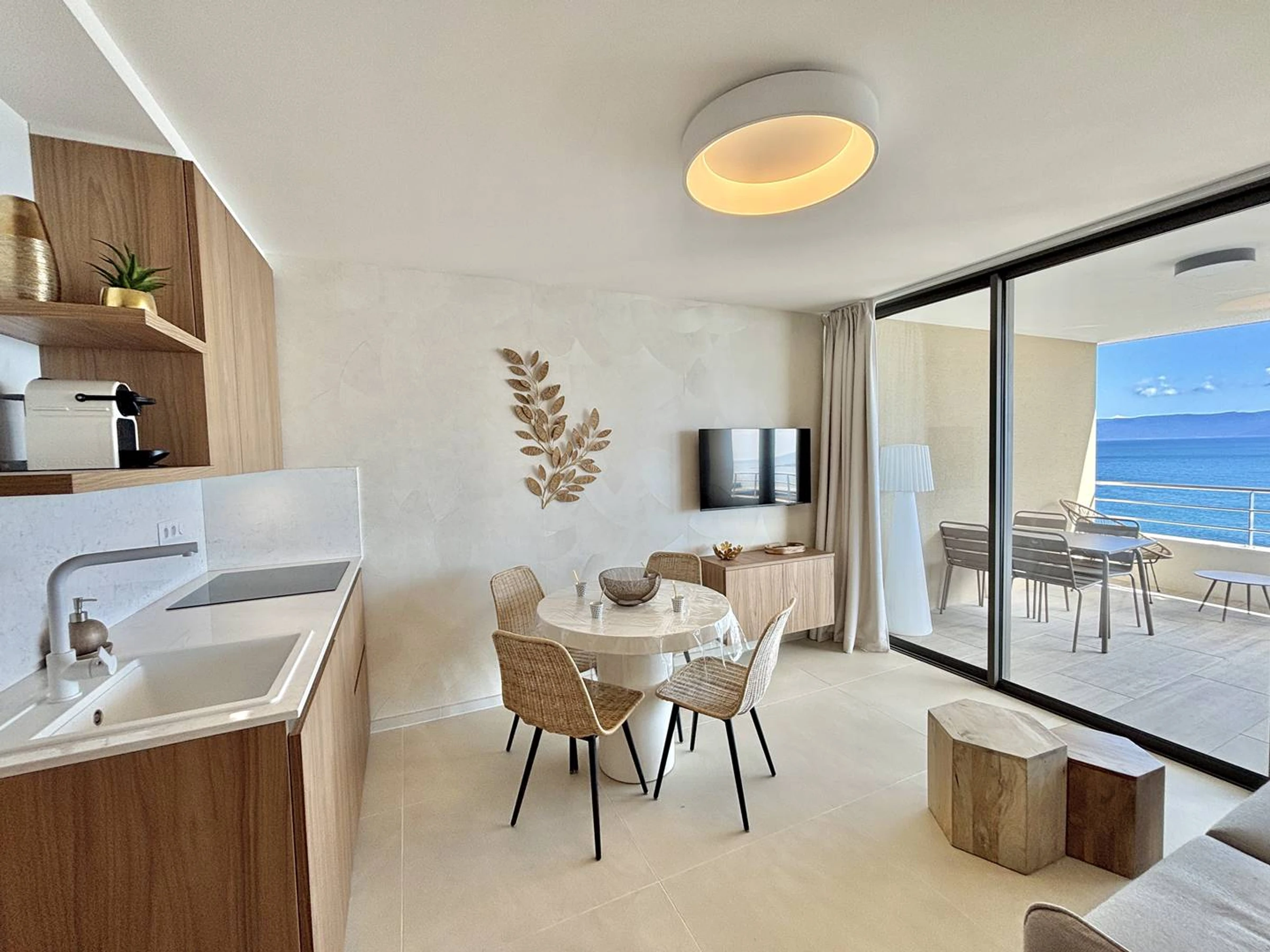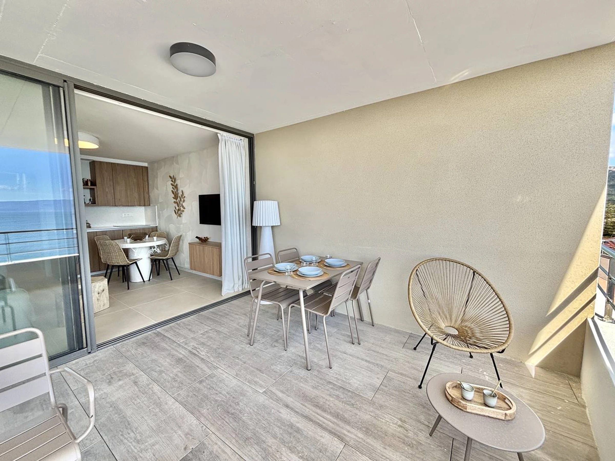 Lo más destacado de este apartamento: impresionantes vistas al mar, acceso a la piscina del complejo, aire acondicionado y aparcamiento privado.