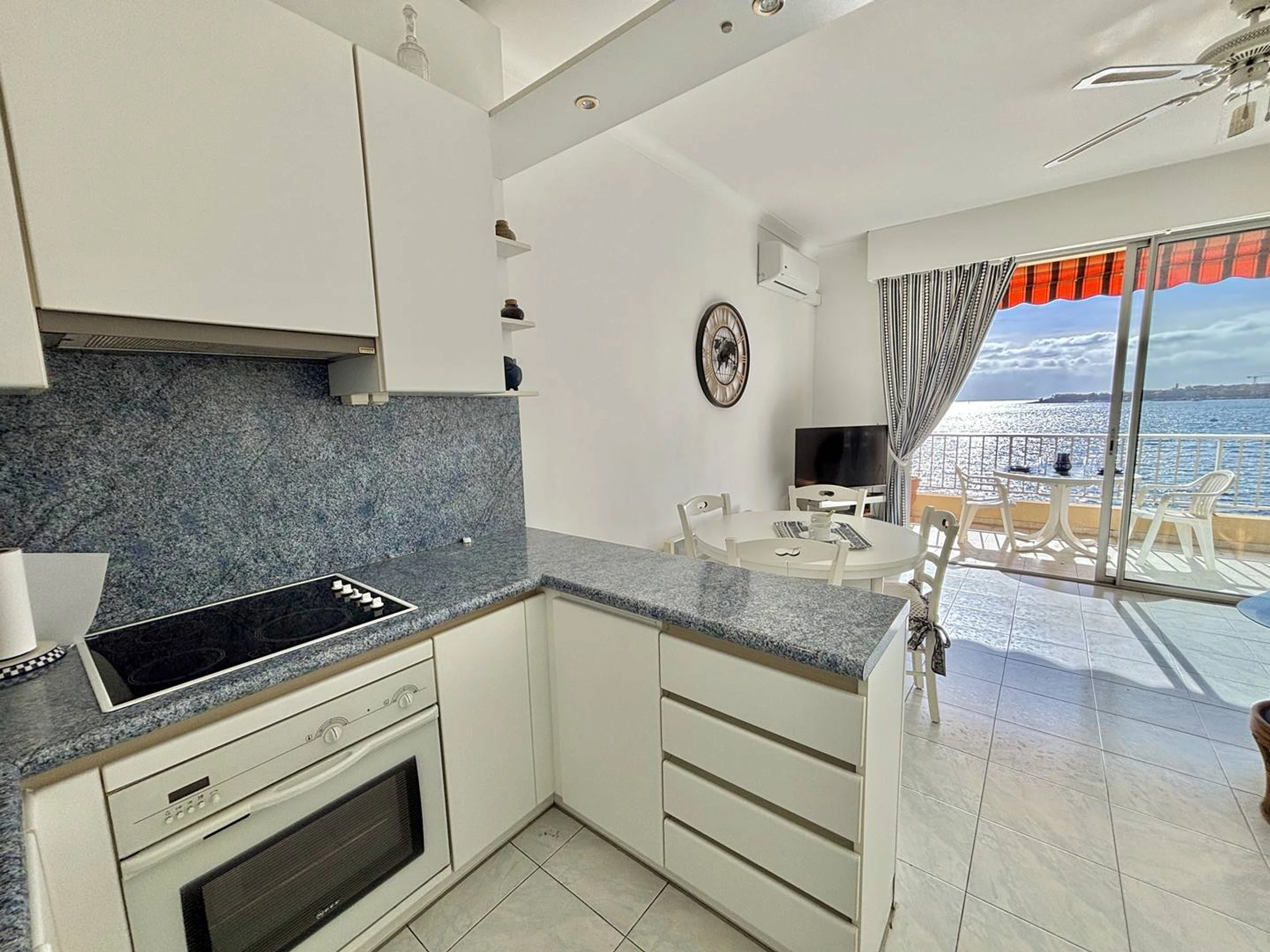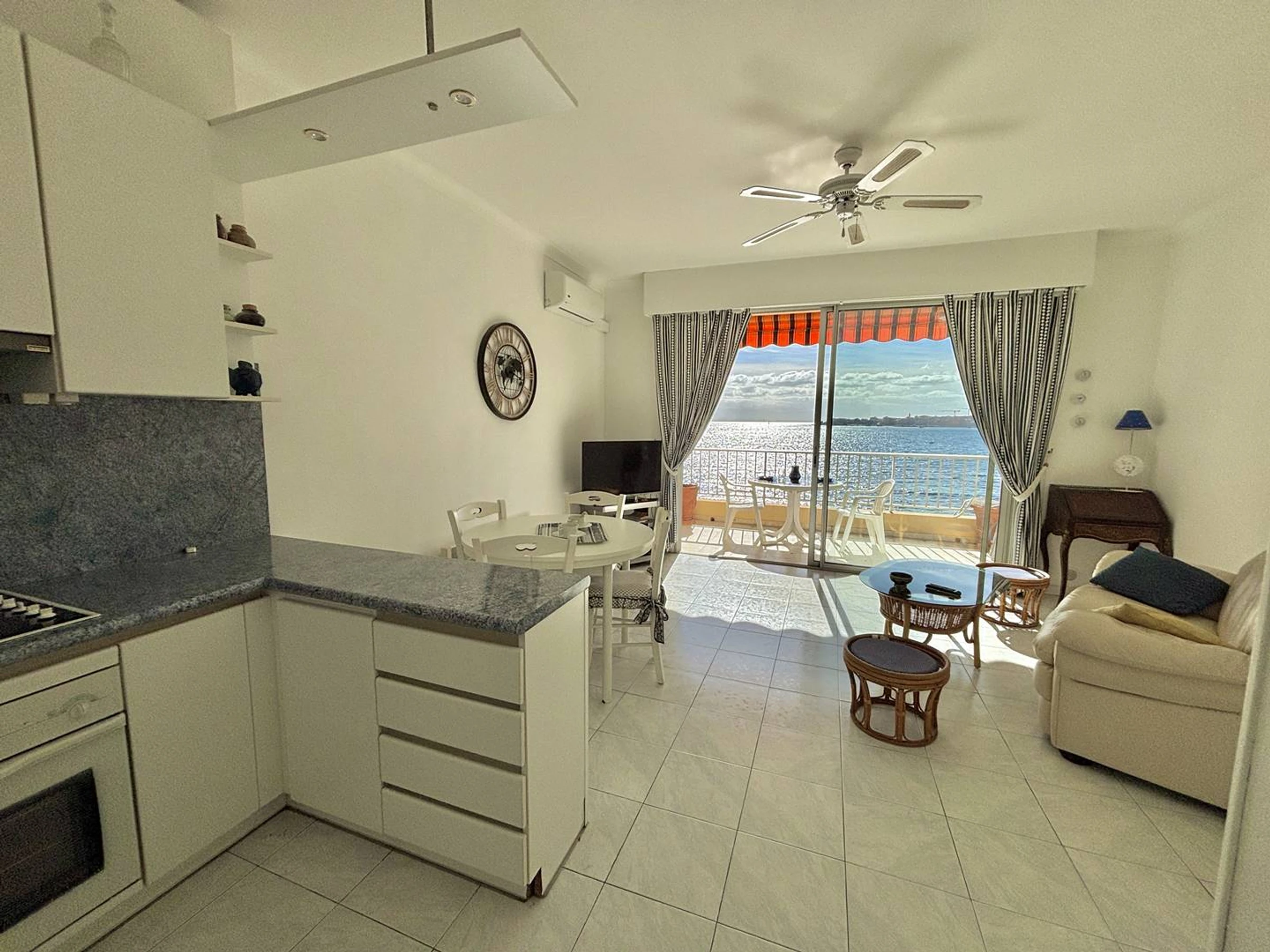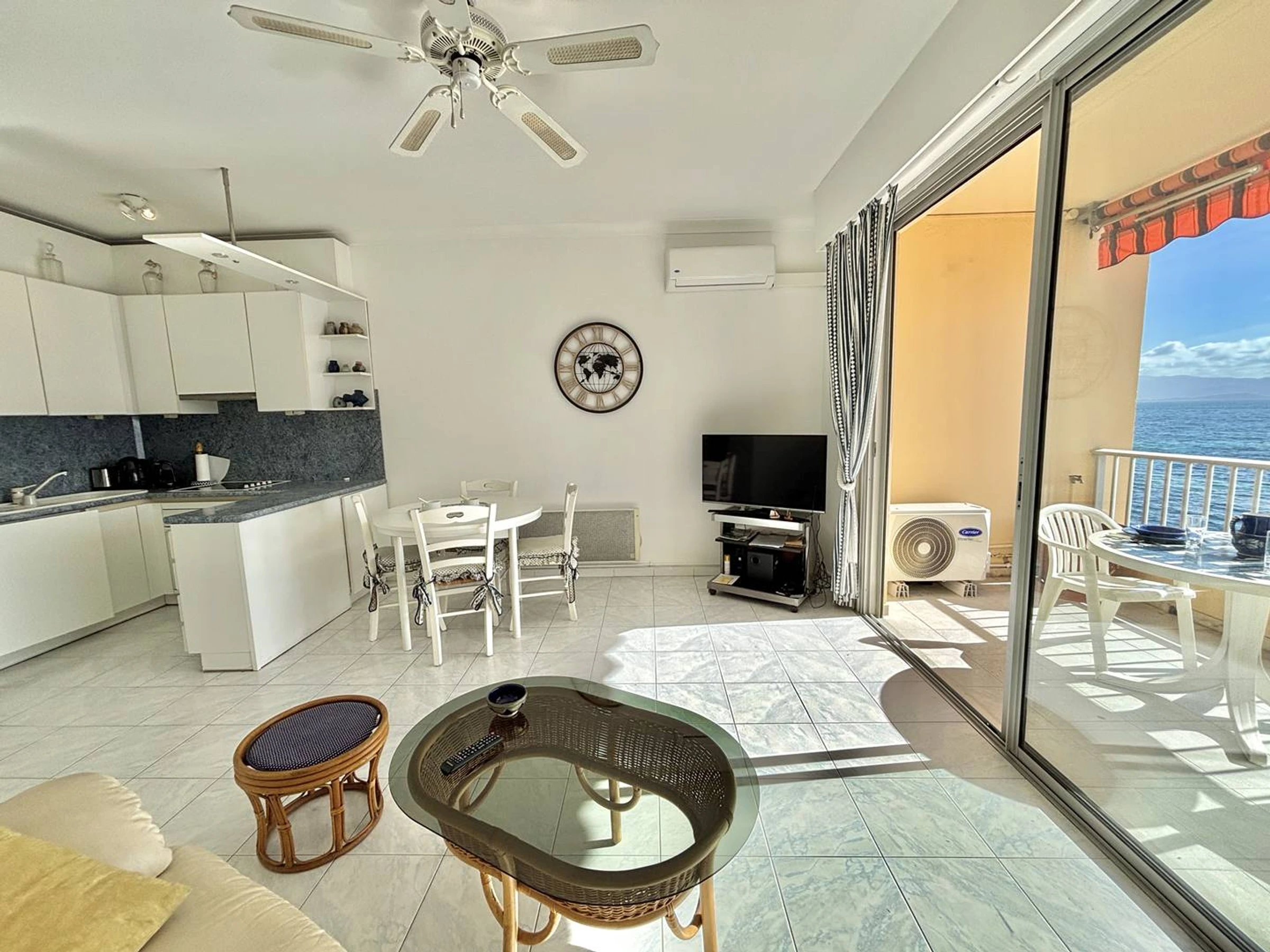El apartamento se compone de: entrada, salón con aire acondicionado y cama retráctil, cocina equipada abierta al salón-comedor que da a la terraza con vistas al mar, baño independiente con WC.