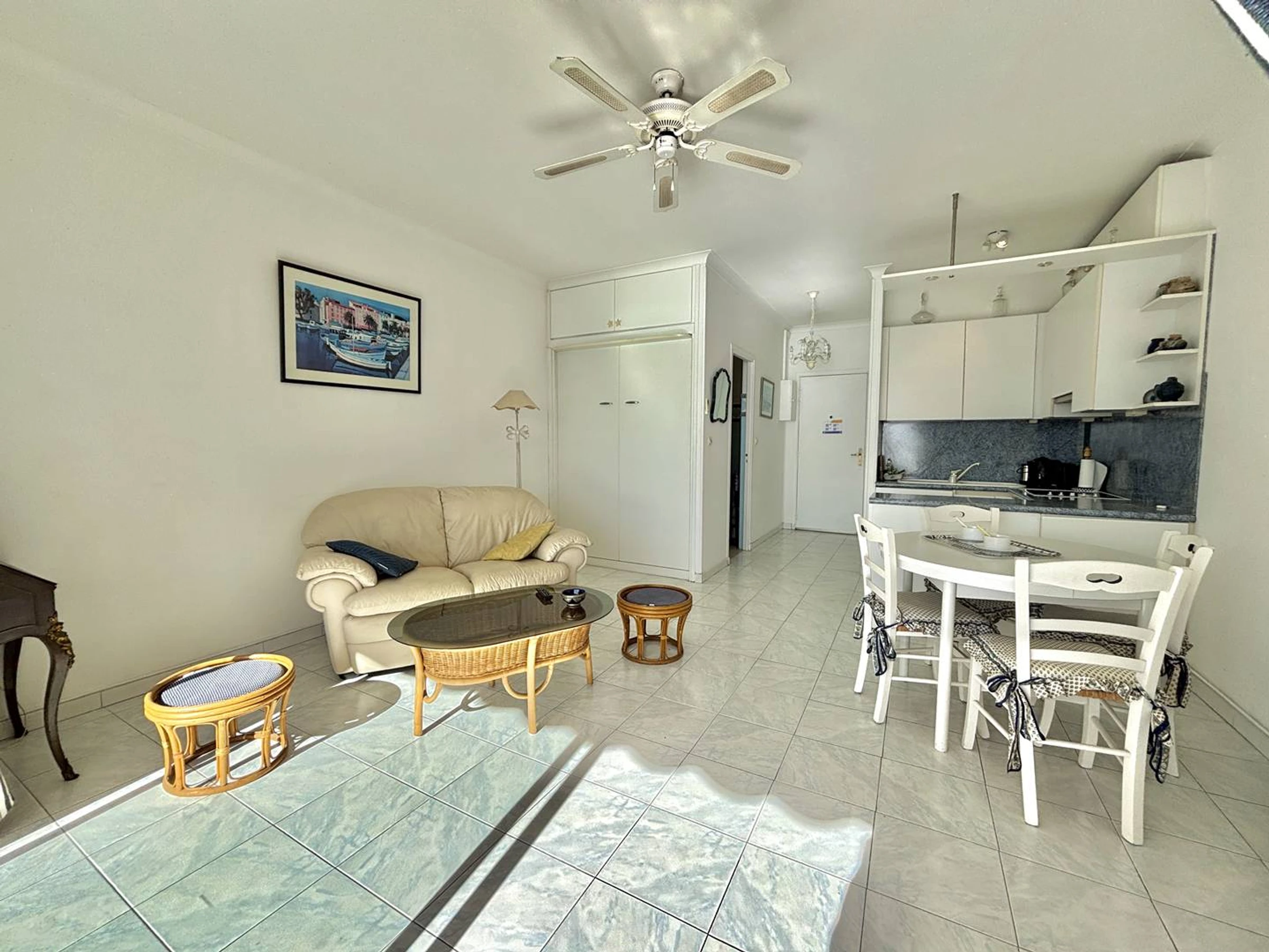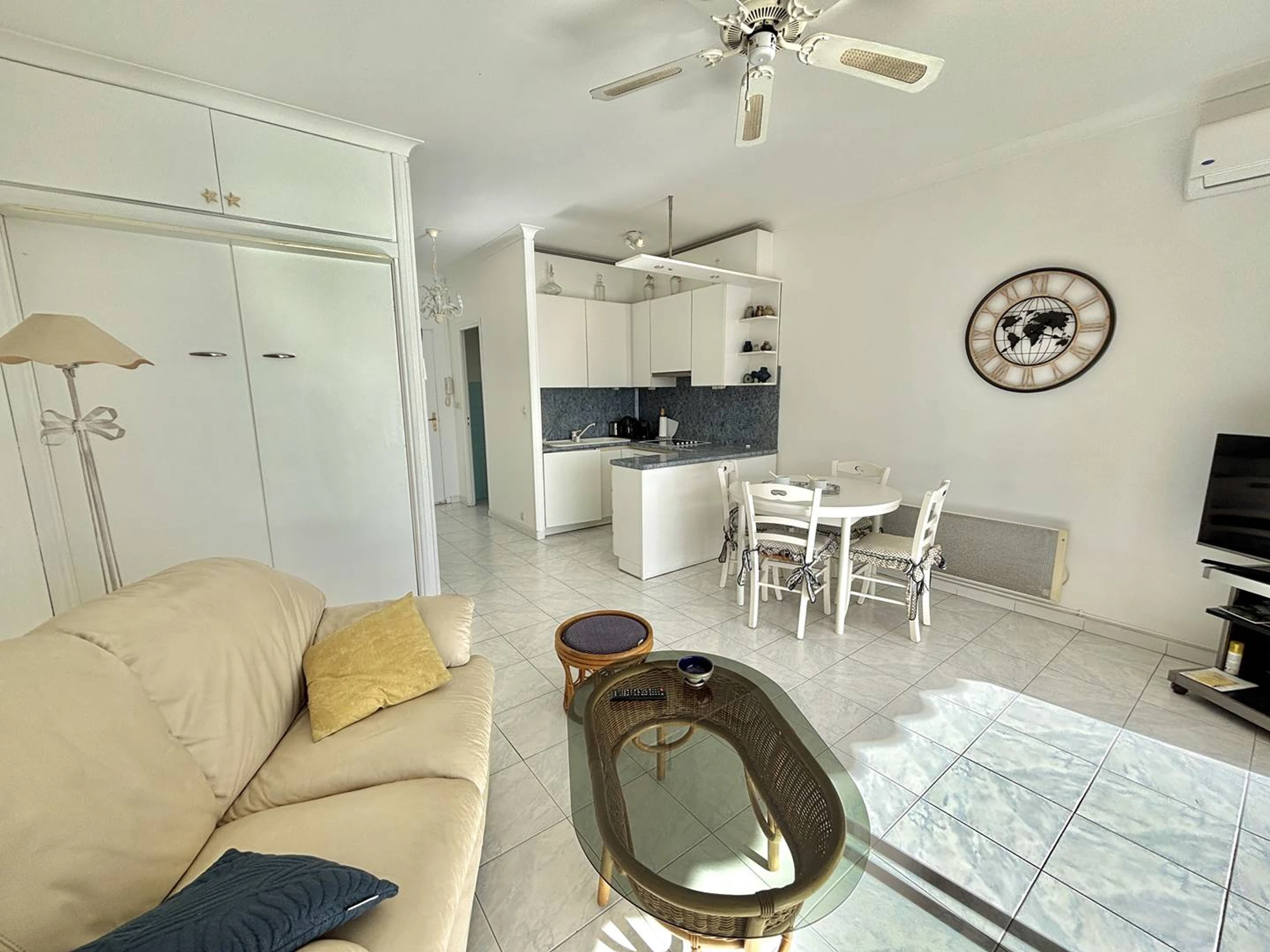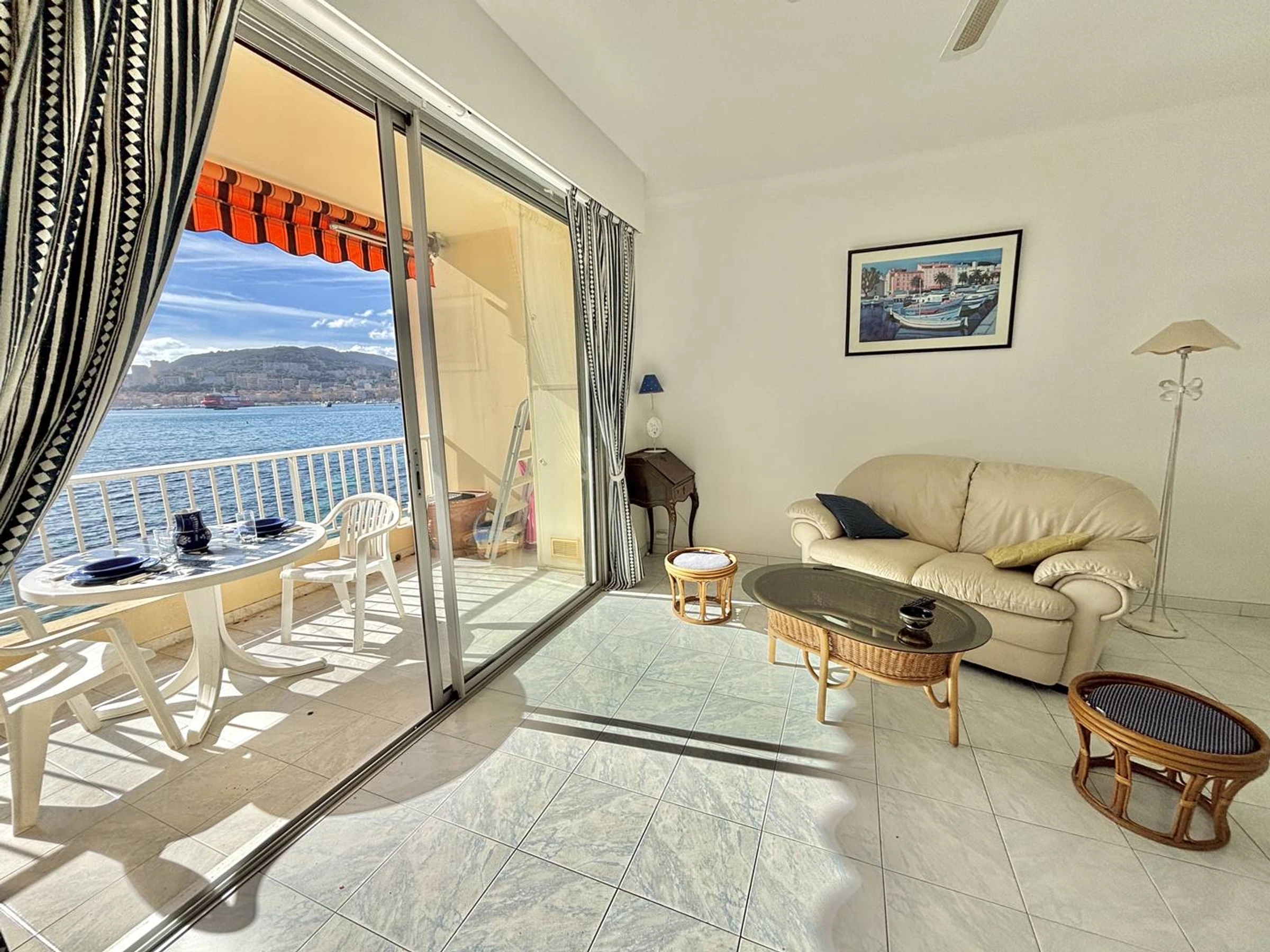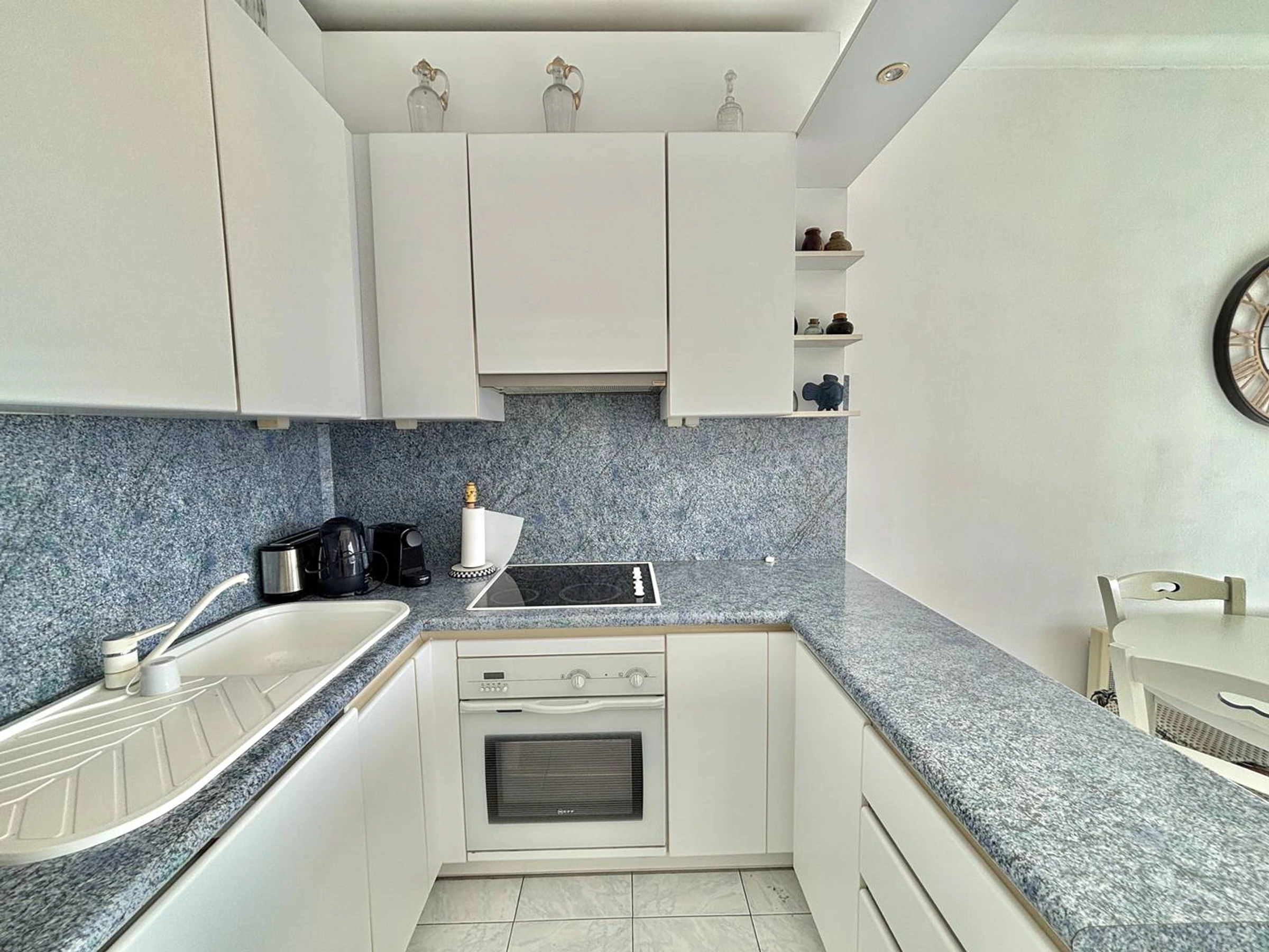 El apartamento se compone de: entrada, salón con aire acondicionado y cama retráctil, cocina equipada abierta al salón-comedor que da a la terraza con vistas al mar, baño independiente con WC.