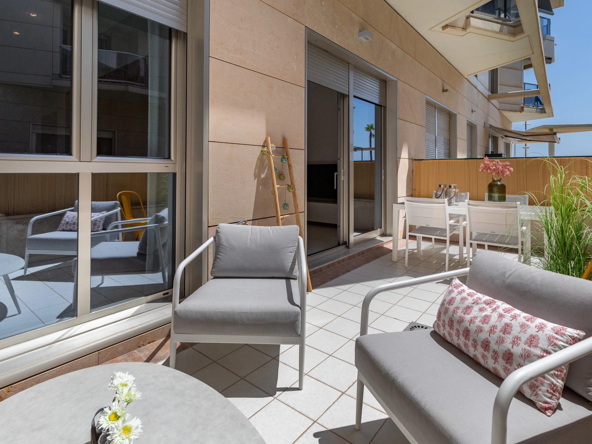 - Amplia terraza lateral al mar equipada con mesa y 4 sillas y zona de relax con sillones.