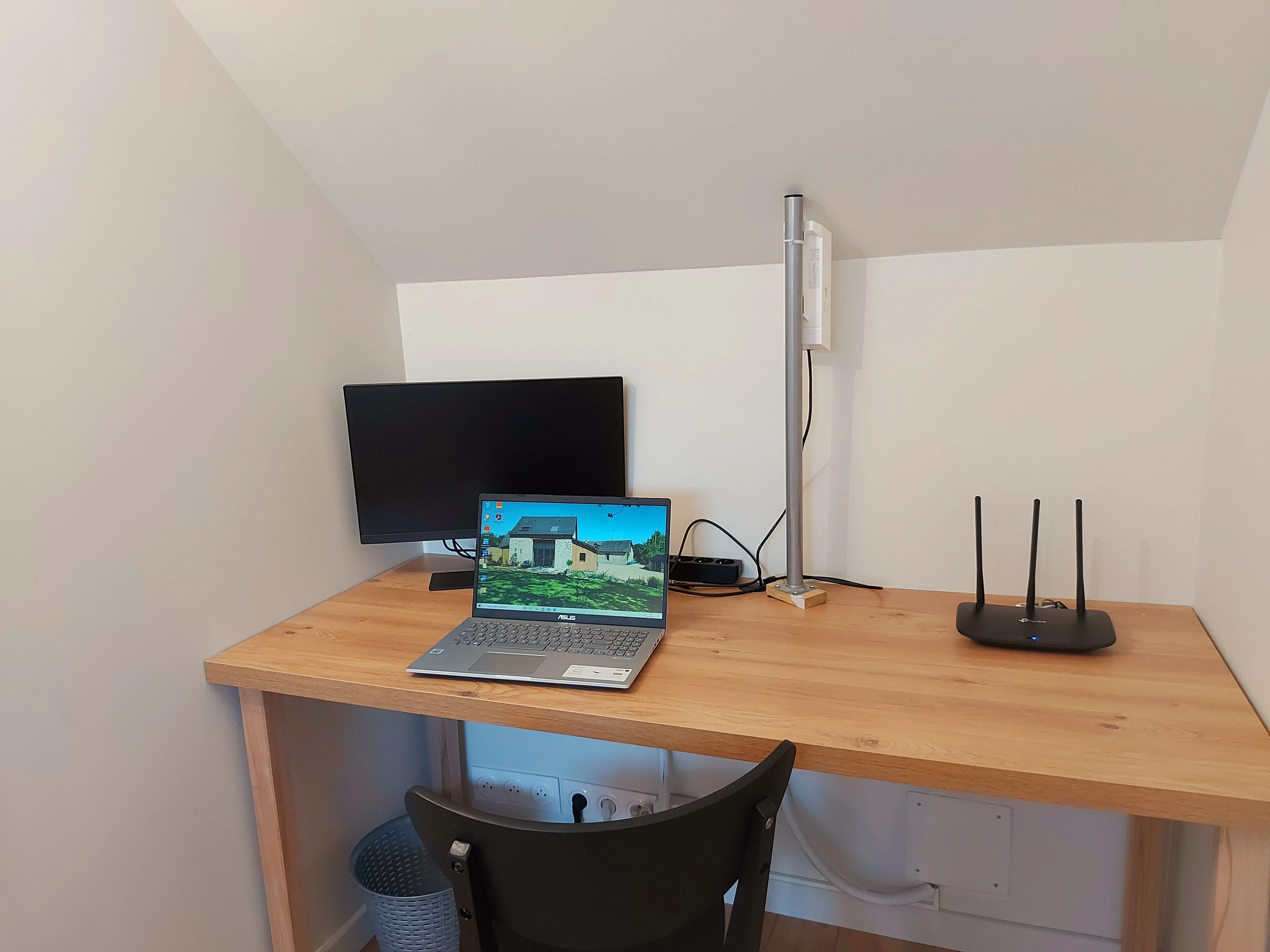 Entorno: el camino de sirga a 6 km (85 km a lo largo del río Mayenne), los castillos de Mayenne, Laval, Lassay-les-Châteaux, Ste Suzanne, Fougères, Vitré, así como los encantadores pueblos de Fontaine-Daniel y Chailland, el yacimiento galorromano de Jublains, los museos, el Jardín de los Renaudies, el Refugio del Arca, el sitio más visitado de Mayenne, las Cuevas de Saulges. ¡Y a 1h30 en coche del Mont-Saint-Michel! Casa rural de 2 plantas - NIVEL 0 - Amplio salón-comedor (36 m²) con cocina totalmente equipada con lavavajillas, frigorífico, congelador, microondas, tostadora, cafetera de filtro, horno, placa de inducción y plancha. Salón-comedor: TV Orange de 110 cm, sofá y sillones. Aseo independiente en un amplio baño con ducha (ropa de cama).