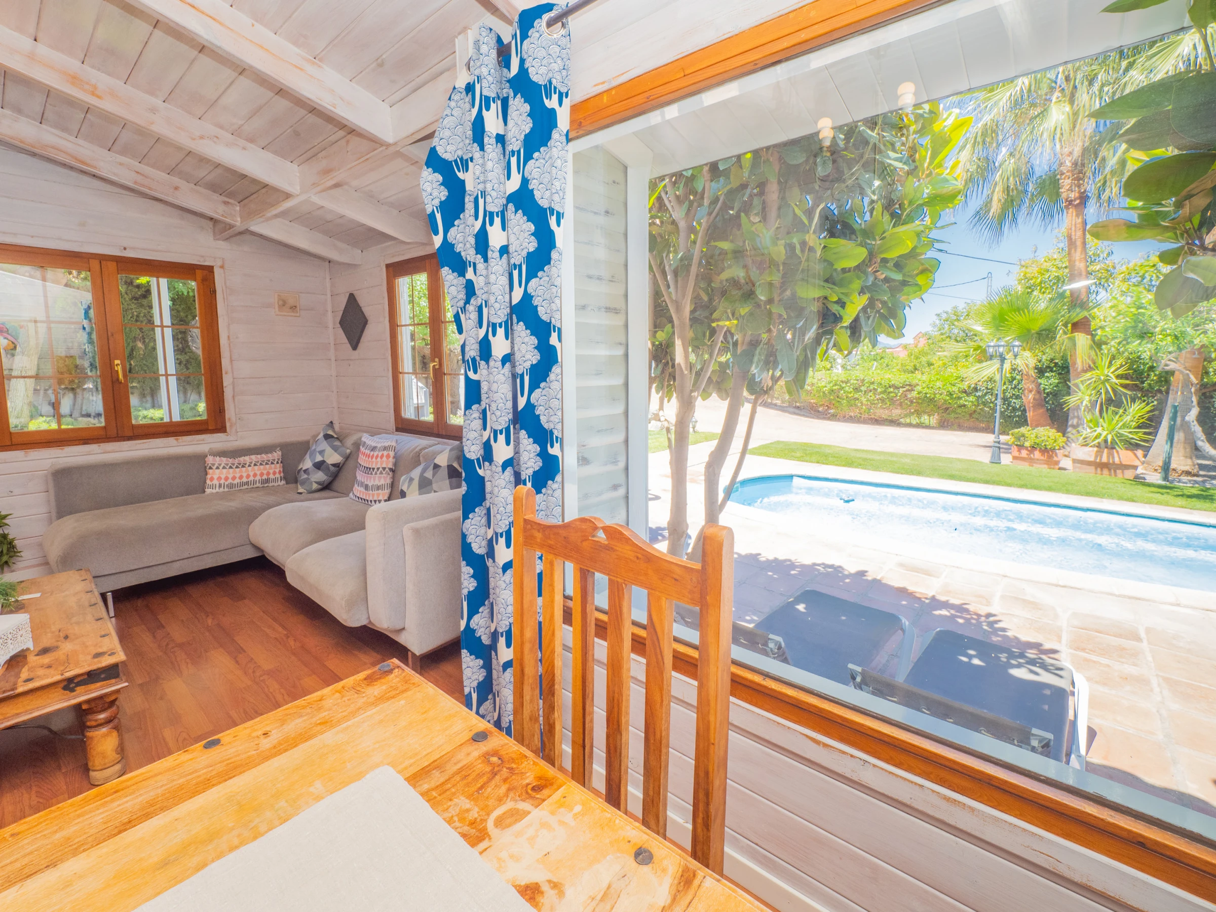 La finca cuenta con un amplio y bonito jardín que rodea la casa, donde podrás disfrutar de una piscina de cloración salina, hamacas, sombrillas, barbacoa y un parque infantil para los más pequeños. Además, para los huéspedes con coche eléctrico, la finca dispone de un cargador para que puedas recargar tu vehículo durante la noche sin preocupaciones ⚡🔌.