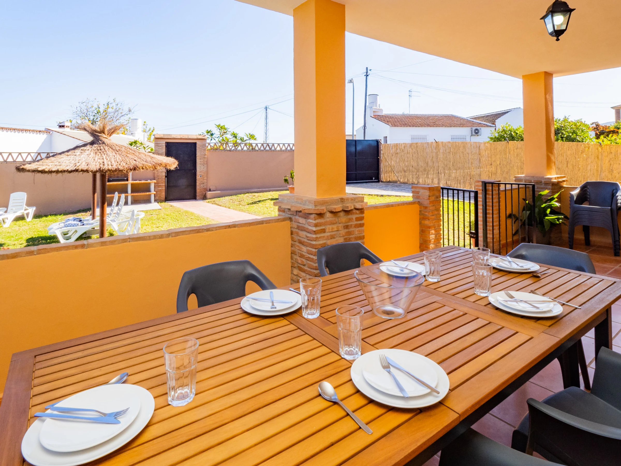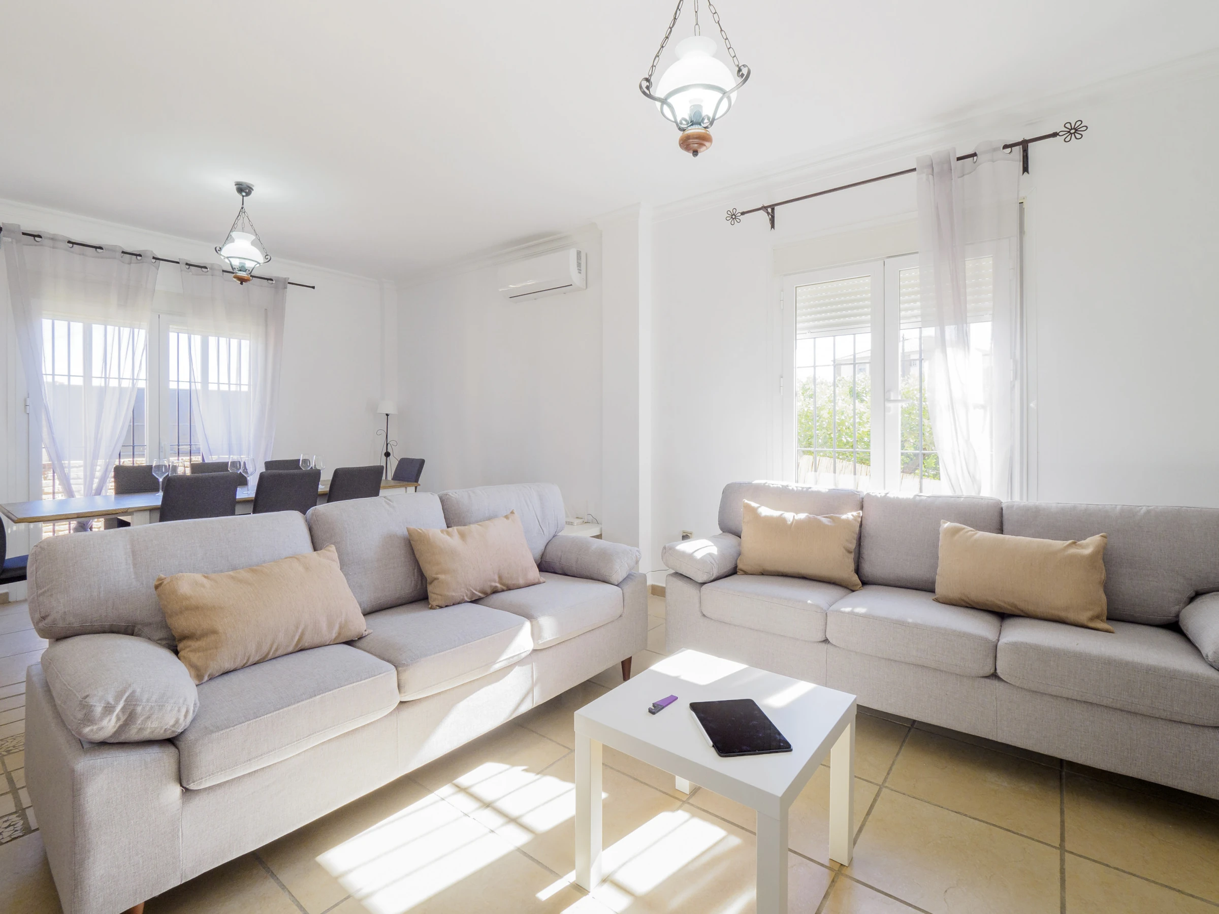Si te gusta el aire libre, disfruta de la piscina privada y del porche cubierto, que ofrece espacio para jugar, tomar el sol o preparar una barbacoa con la familia. La villa está rodeada por una pequeña comunidad de casas independientes en una zona muy tranquila, sin vecinos inmediatos que comprometan tu privacidad.