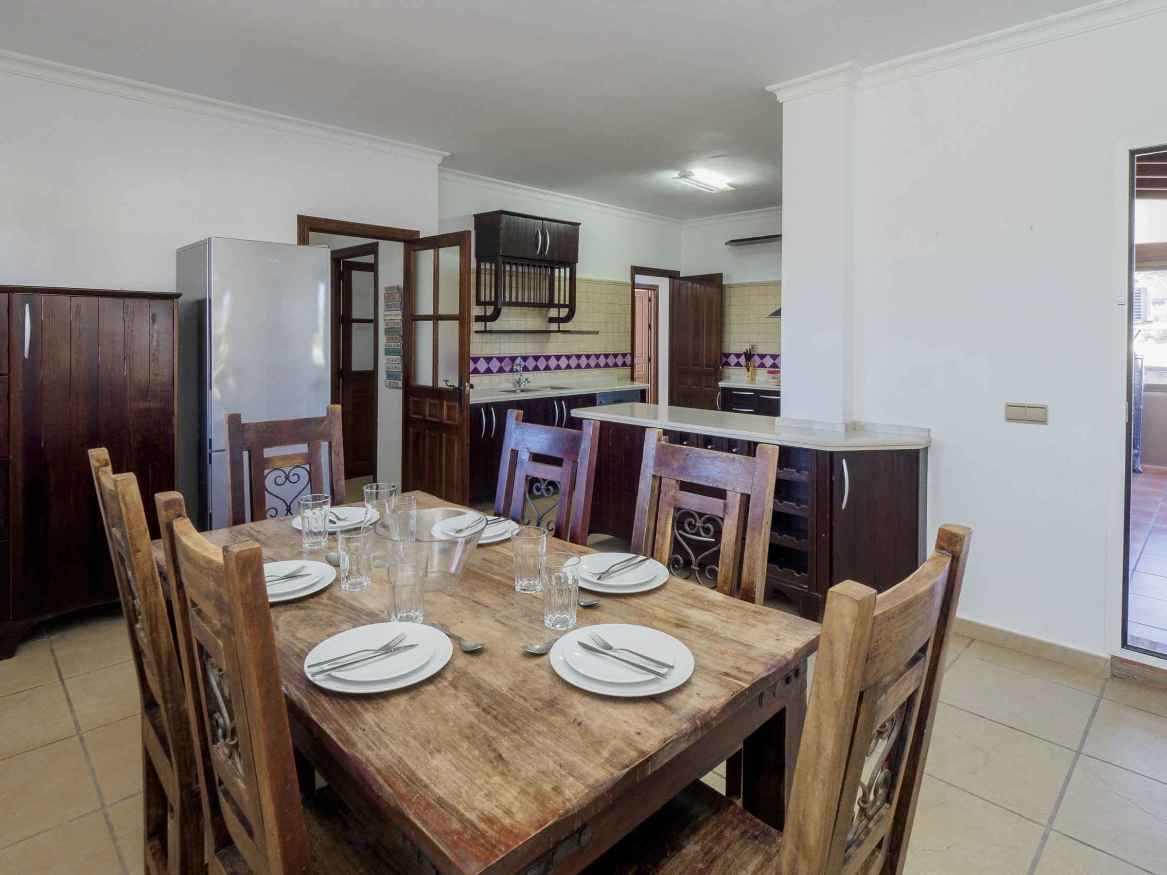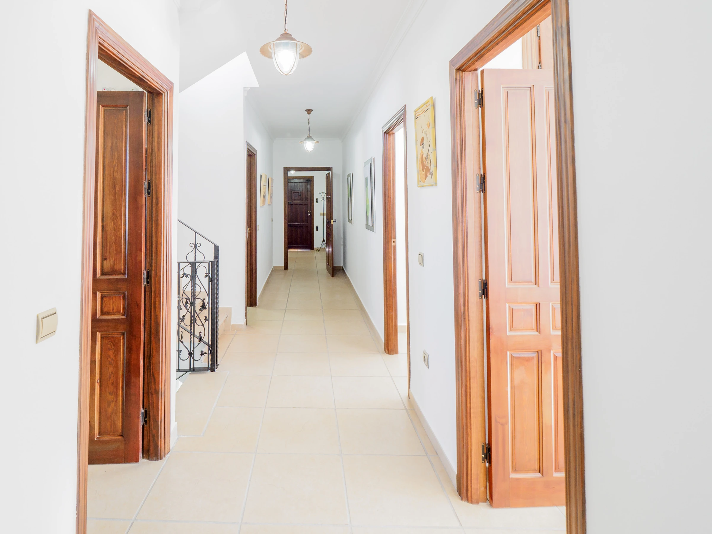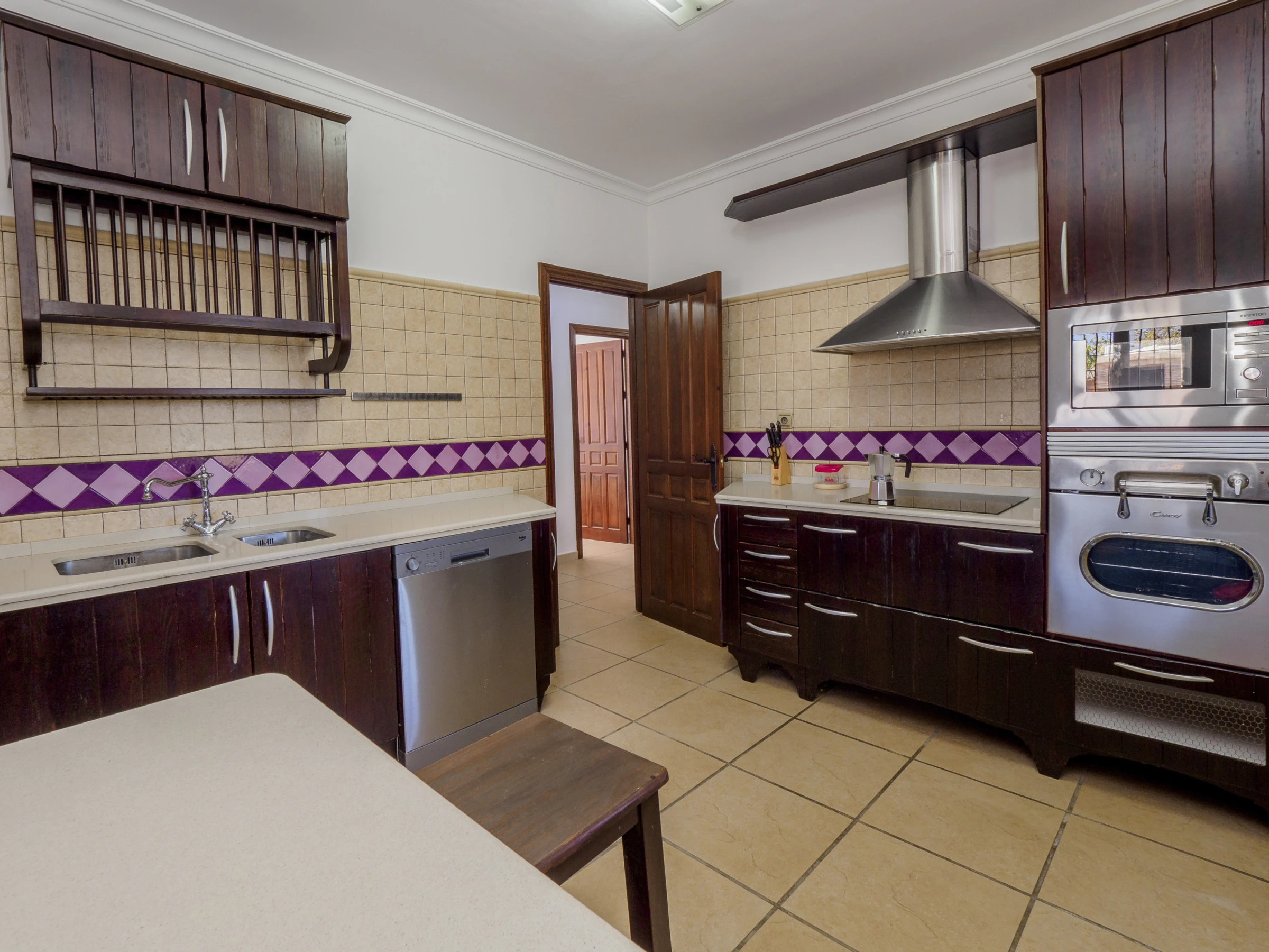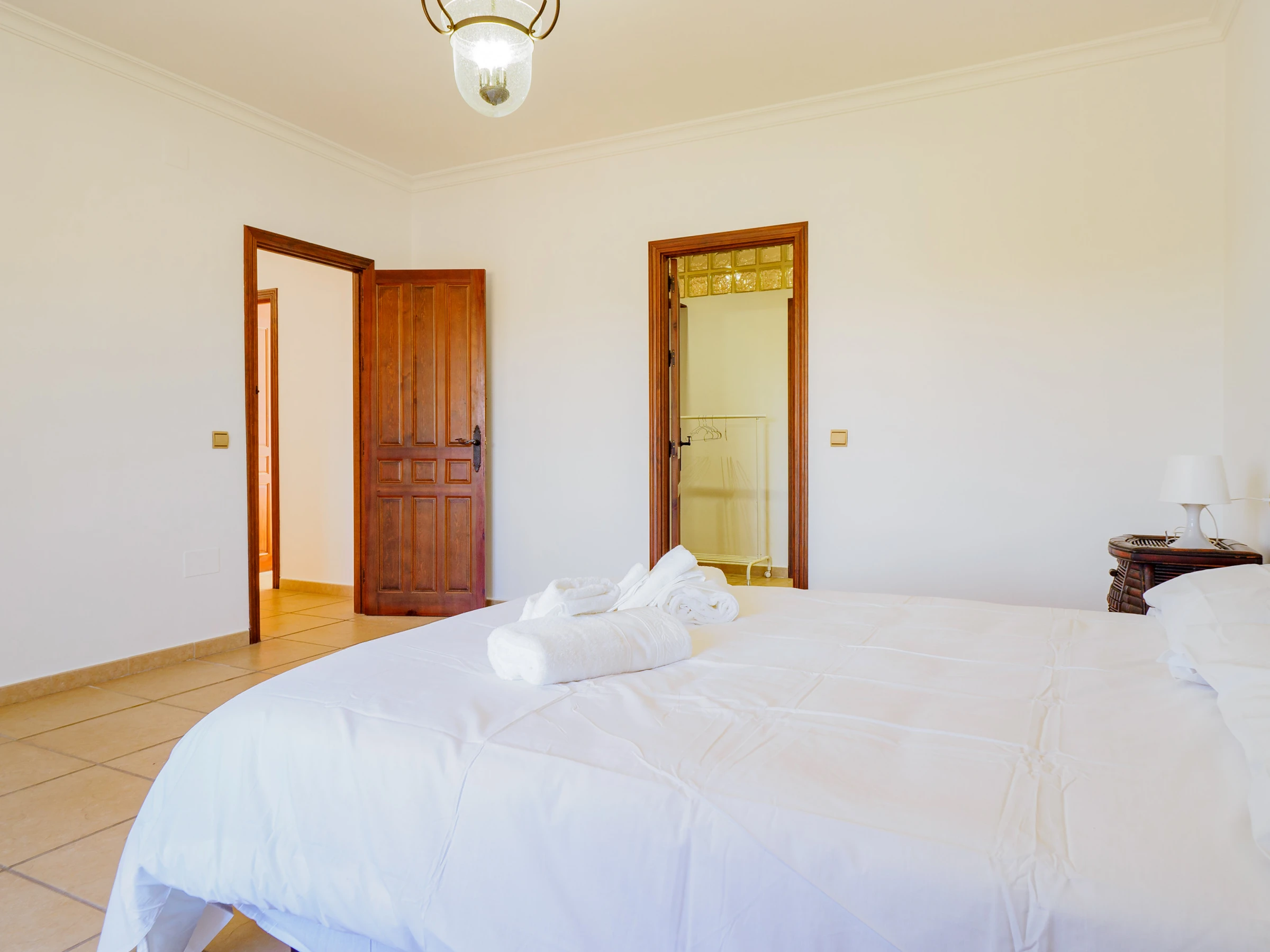 La villa está distribuida en dos plantas. En la planta baja encontrarás un salón comedor acogedor con chimenea (leña no incluida), ideal para momentos de relax y convivencia, además de una cocina independiente completamente equipada con electrodomésticos modernos como nevera, microondas, horno, lavavajillas y más. Junto a la cocina, un lavadero cerrado ofrece espacio para lavar, planchar o simplemente disfrutar de un momento tranquilo con vistas al paisaje. En esta planta también hay tres dormitorios matrimoniales luminosos, todos con armarios y un baño completo, además de una habitación con vestidor y baño en suite con ducha.