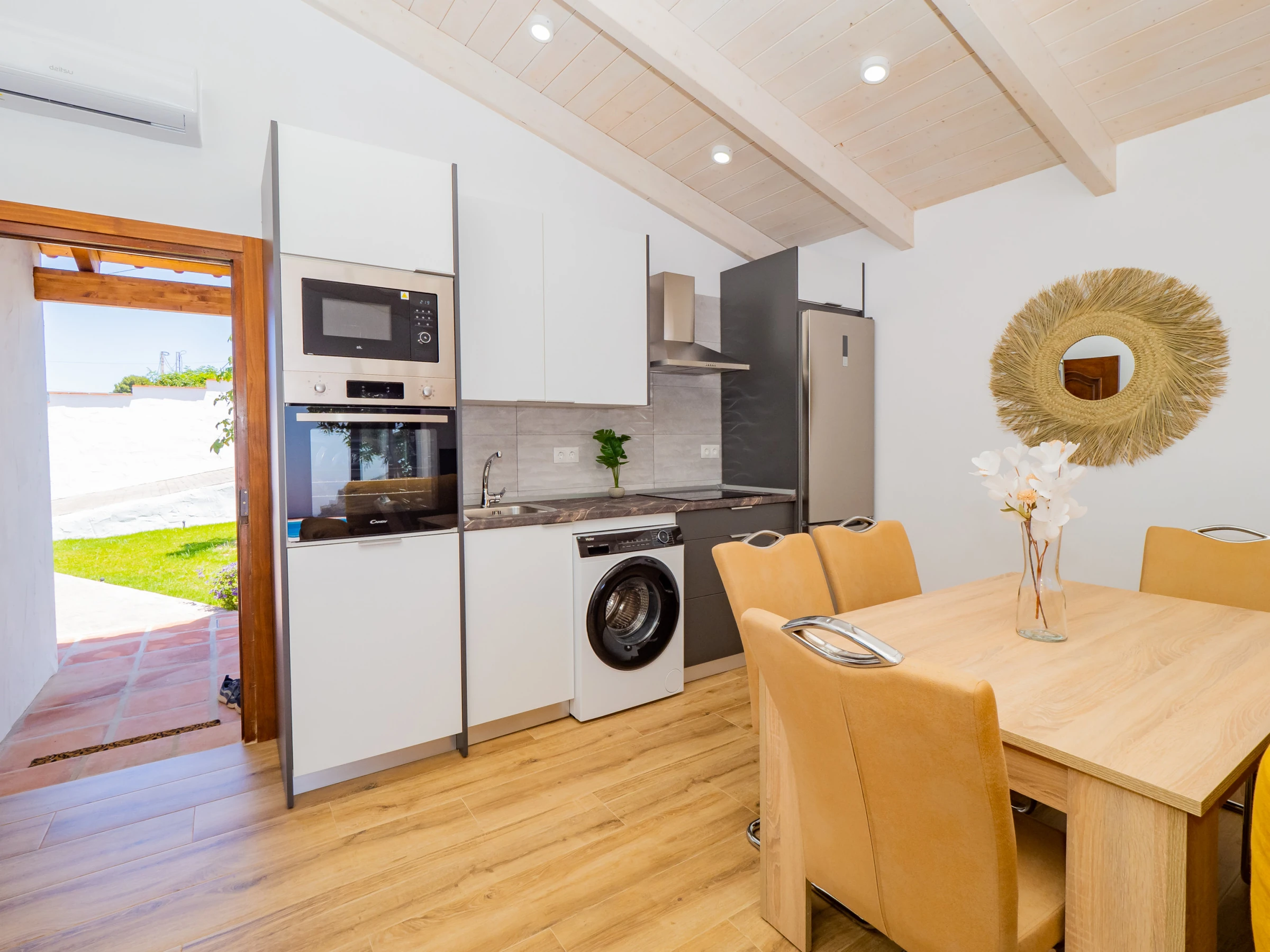 Esta acogedora casa rural de 60 m² en Alhaurín de la Torre ofrece un espacio moderno y privado para 4 personas, ideal para familias o grupos pequeños que buscan confort y tranquilidad. Cuenta con dos dormitorios climatizados: uno con cama de matrimonio y acceso directo al exterior, y otro con dos camas individuales y vistas al jardín y aparcamiento. El salón comedor, equipado con un cómodo sofá y una gran televisión conectada a internet, se integra con una cocina americana totalmente equipada, con electrodomésticos de primera calidad como nevera, microondas, horno, lavavajillas, cafetera y más. Además, para disfrutar al máximo el tiempo al aire libre, el alojamiento incluye un jardín vallado con mobiliario, hamacas para tomar el sol y una piscina privada, desde la que podrá vigilar a los más pequeños mientras se bañan. La mesa familiar en el salón es perfecta para compartir comidas, y para la zona exterior, los anfitriones han previsto vajilla segura de resina para evitar accidentes.