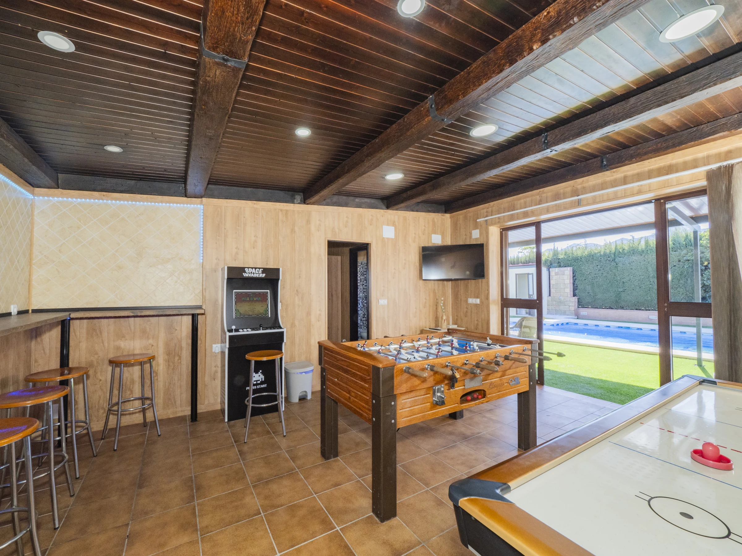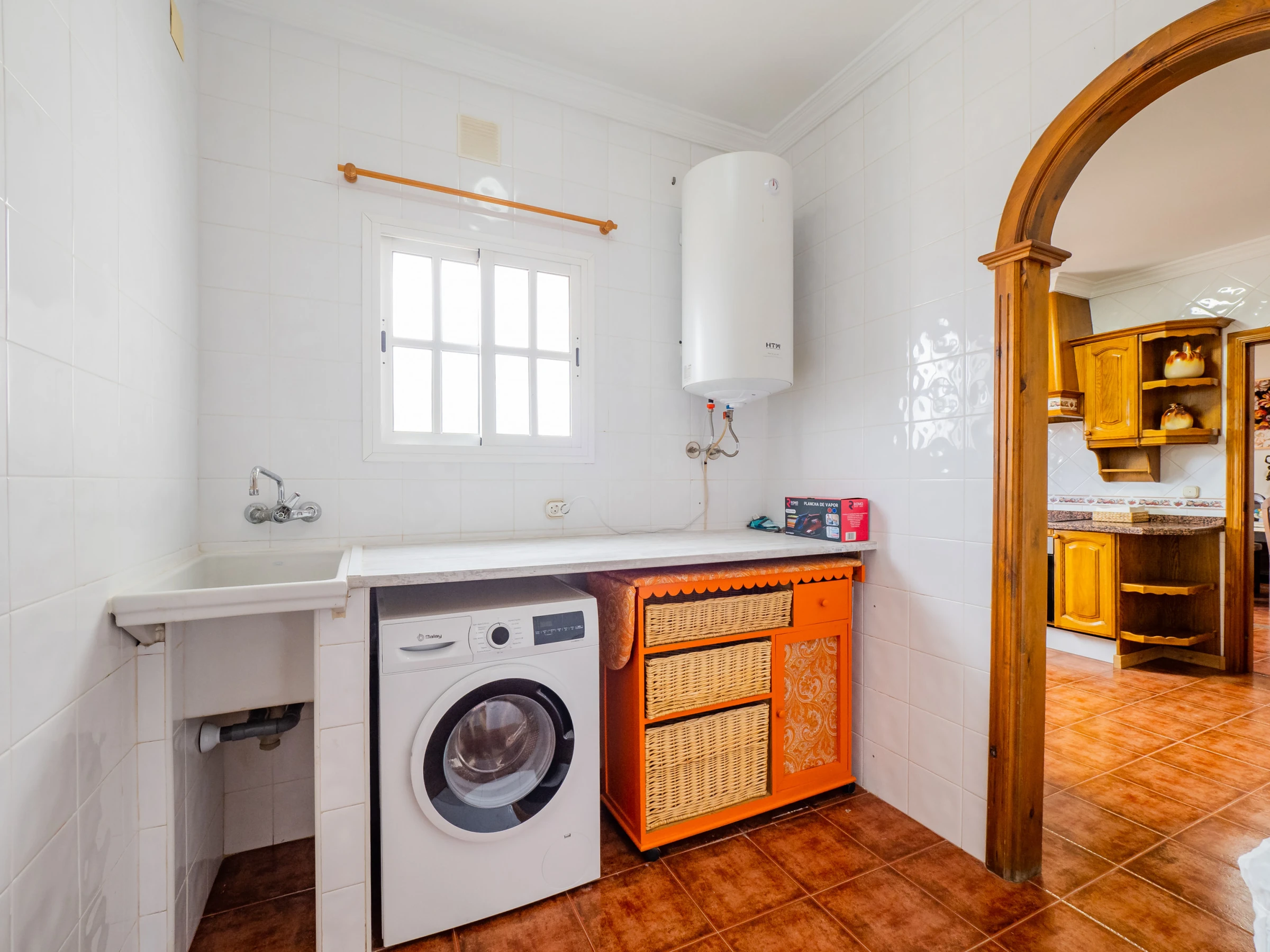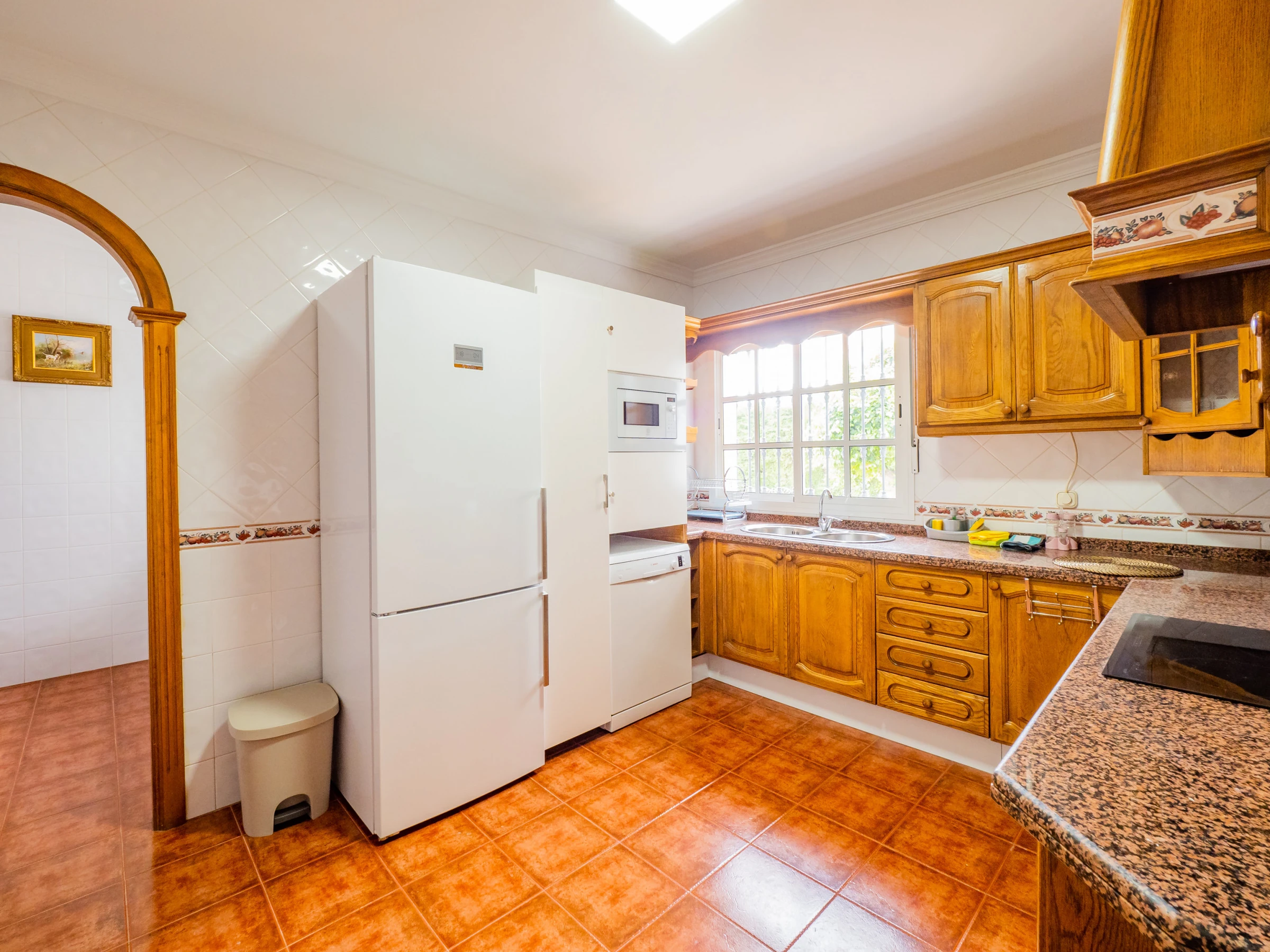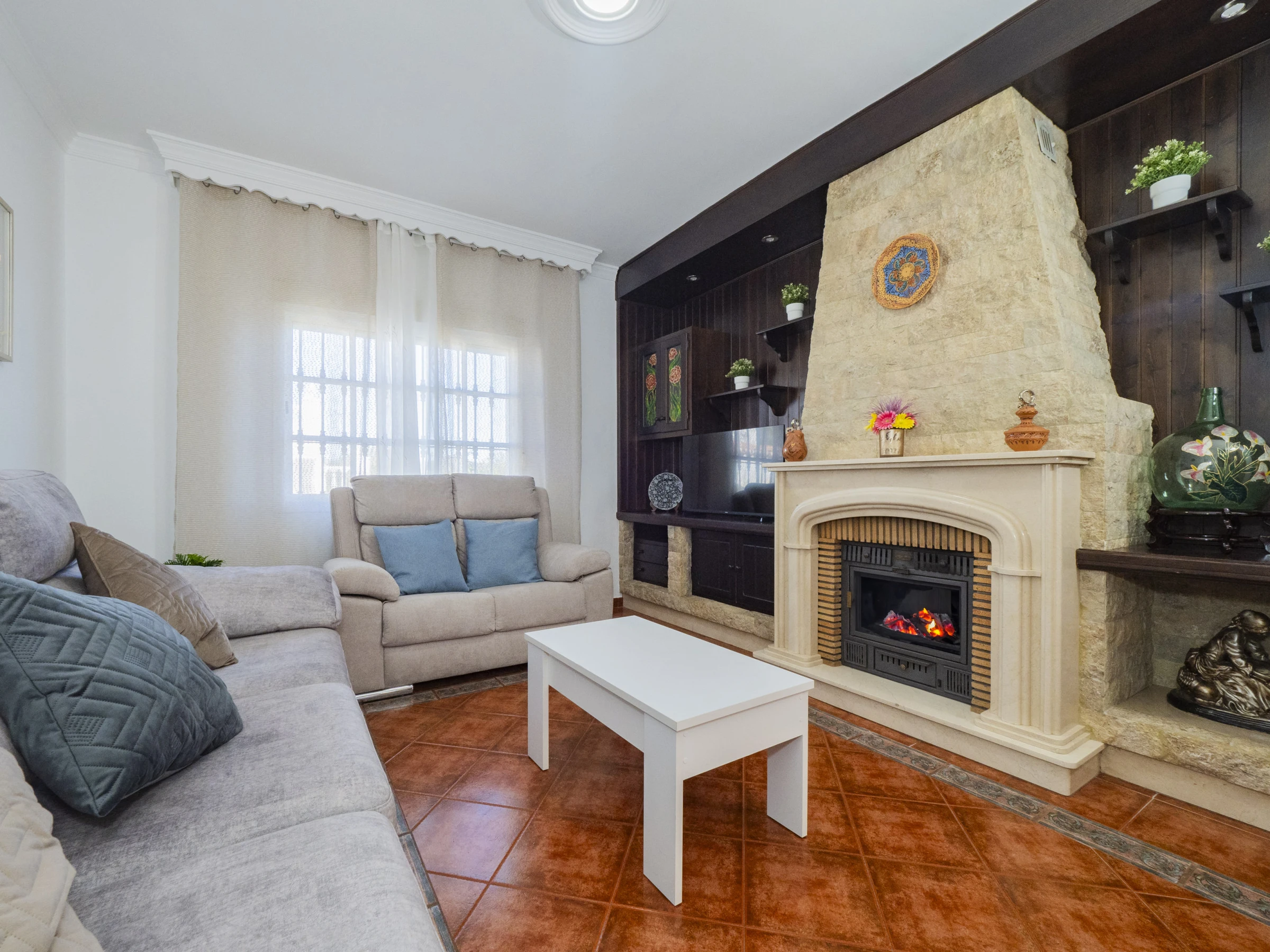 El interior es acogedor y bien equipado: sala de estar con chimenea y televisión, comedor, cocina independiente con electrodomésticos modernos (nevera, microondas, horno, lavavajillas, cafetera, tostadora, exprimidor), y lavandería. Además, toda la casa dispone de aire acondicionado, calefacción con bomba de calor, wifi gratis y TV vía satélite en varios idiomas para que estés conectado y entretenido.