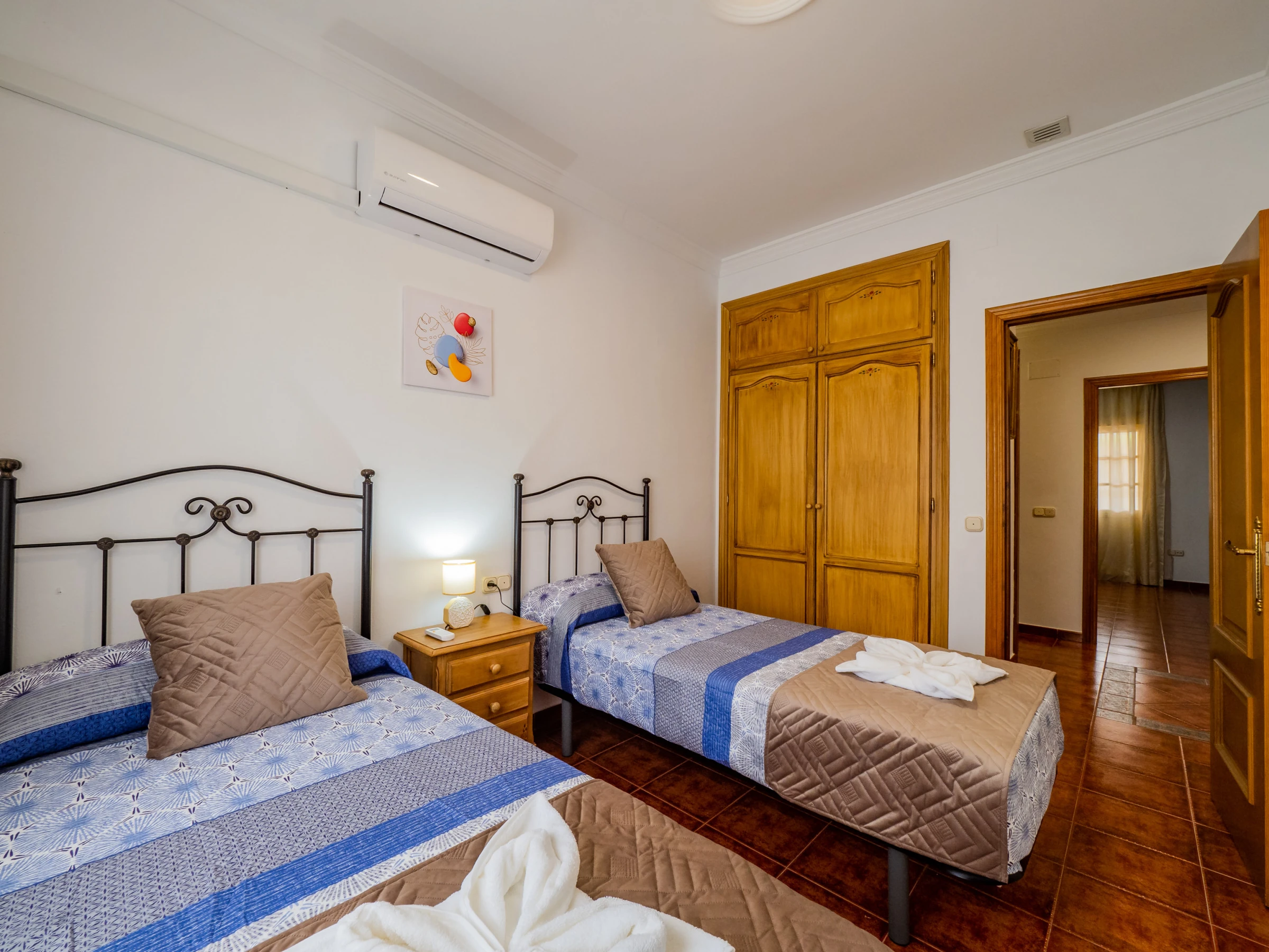 Disfruta de esta espaciosa casa rural en Alhaurín de la Torre, perfecta para descansar y compartir momentos inolvidables en familia o con amigos. Con capacidad para hasta 8 personas, este alojamiento de 220 m² ofrece una piscina privada con zona segura para niños, un fantástico porche exterior con muebles cómodos y una mesa de ping-pong para el entretenimiento. La casa cuenta con cuatro dormitorios —dos con camas individuales dobles, y dos con cama matrimonial, siendo uno de ellos un dormitorio exterior con baño privado y ducha, que se habilita cuando la reserva supera las seis plazas, sumando un suplemento para la séptima y octava persona.