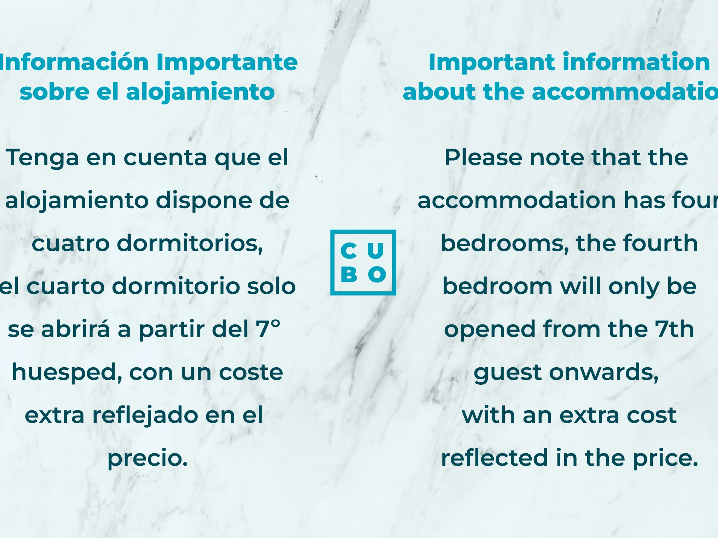 Como también hacemos en todas las demás propiedades de nuestra marca CUBO'S HOLIDAY HOMES, todos nuestros alojamientos disponen de juegos de toallas y sábanas. Disponemos de cunas y tronas bajo petición para bebés de 0 a 2 años. Y todo esto, absolutamente GRATIS. 🛏️🍼