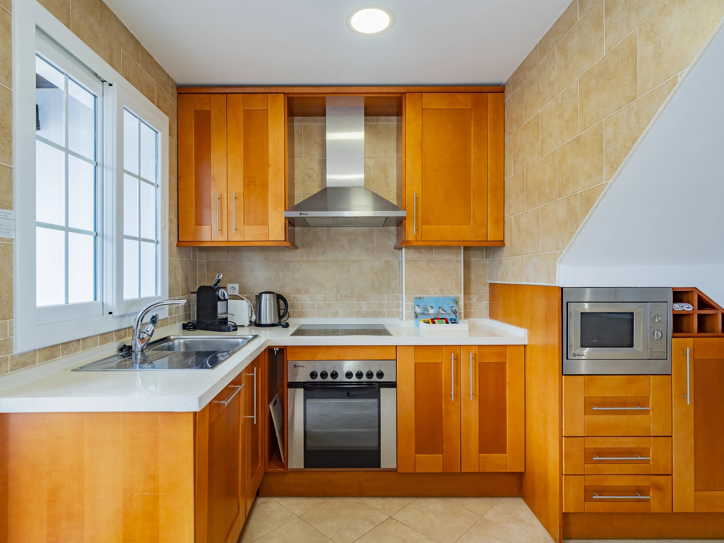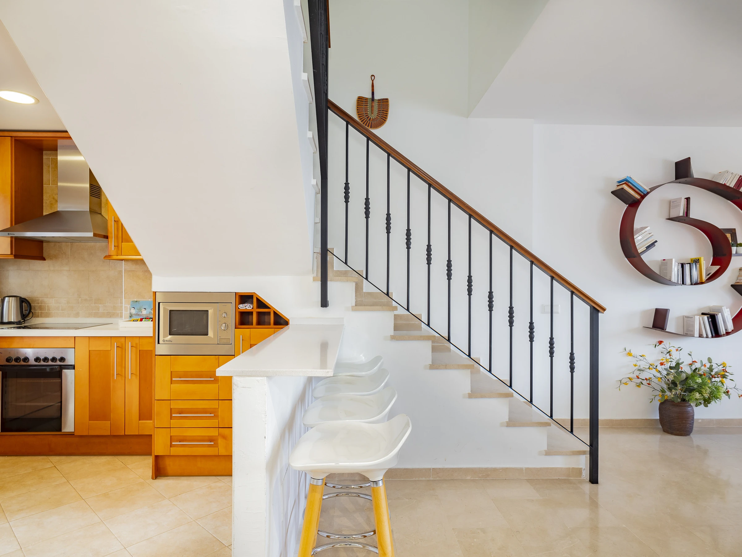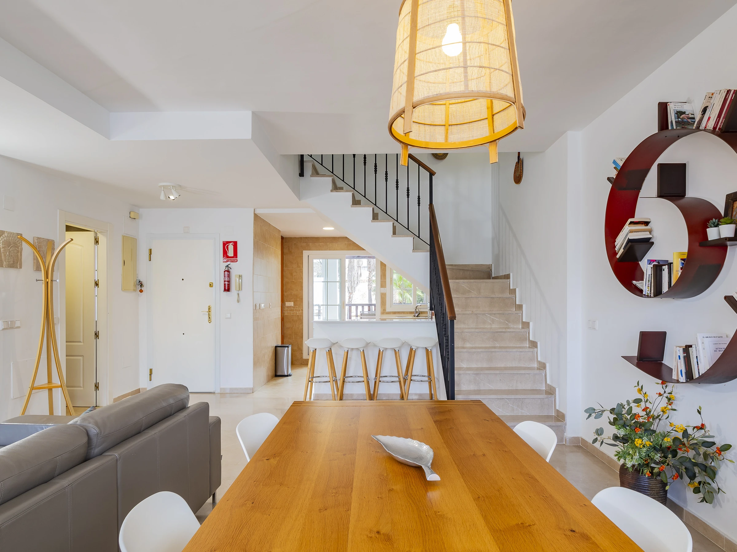 El dúplex es muy cómodo y accesible mediante un tramo de escalera. En la planta baja encontrarás un espacioso salón comedor, cocina americana totalmente equipada y acceso a dos terrazas, perfectas para disfrutar del aire libre y las vistas. La cocina cuenta con todos los electrodomésticos necesarios: vitrocerámica, nevera, microondas, horno, congelador, lavavajillas, cafetera, tostadora y hervidor de agua, para que puedas preparar tus comidas con comodidad. También hay un aseo con lavadora para mayor practicidad. 🍳✨