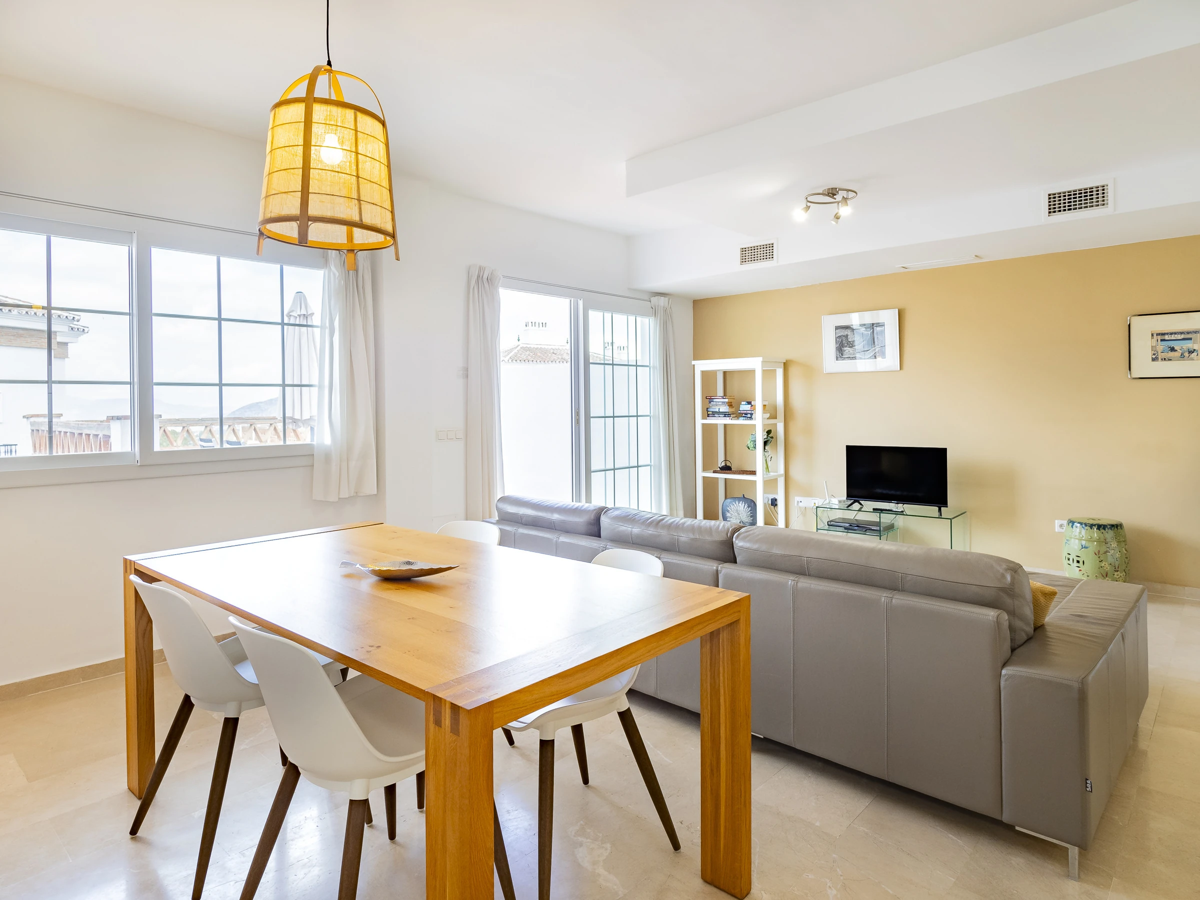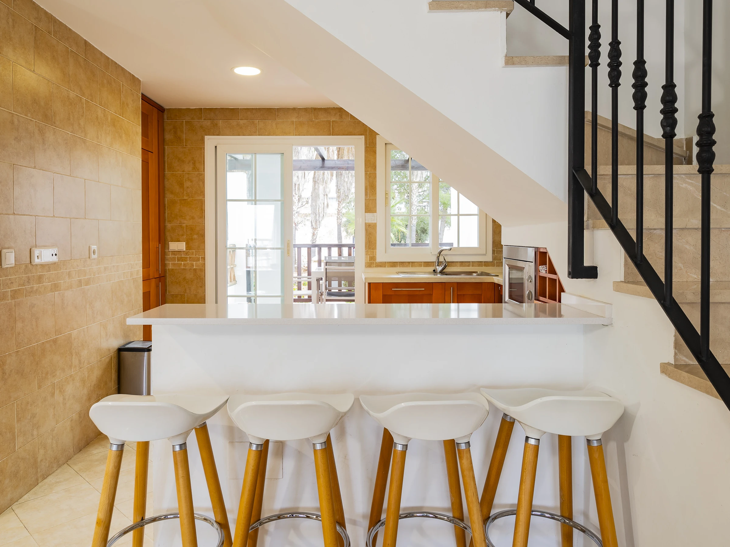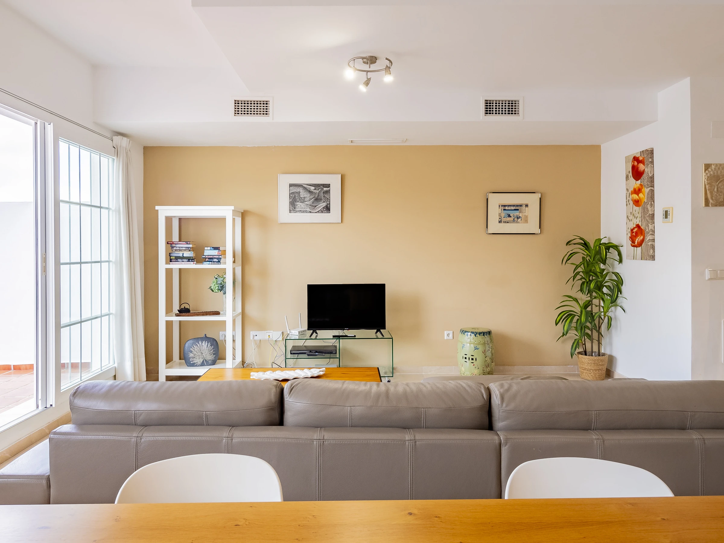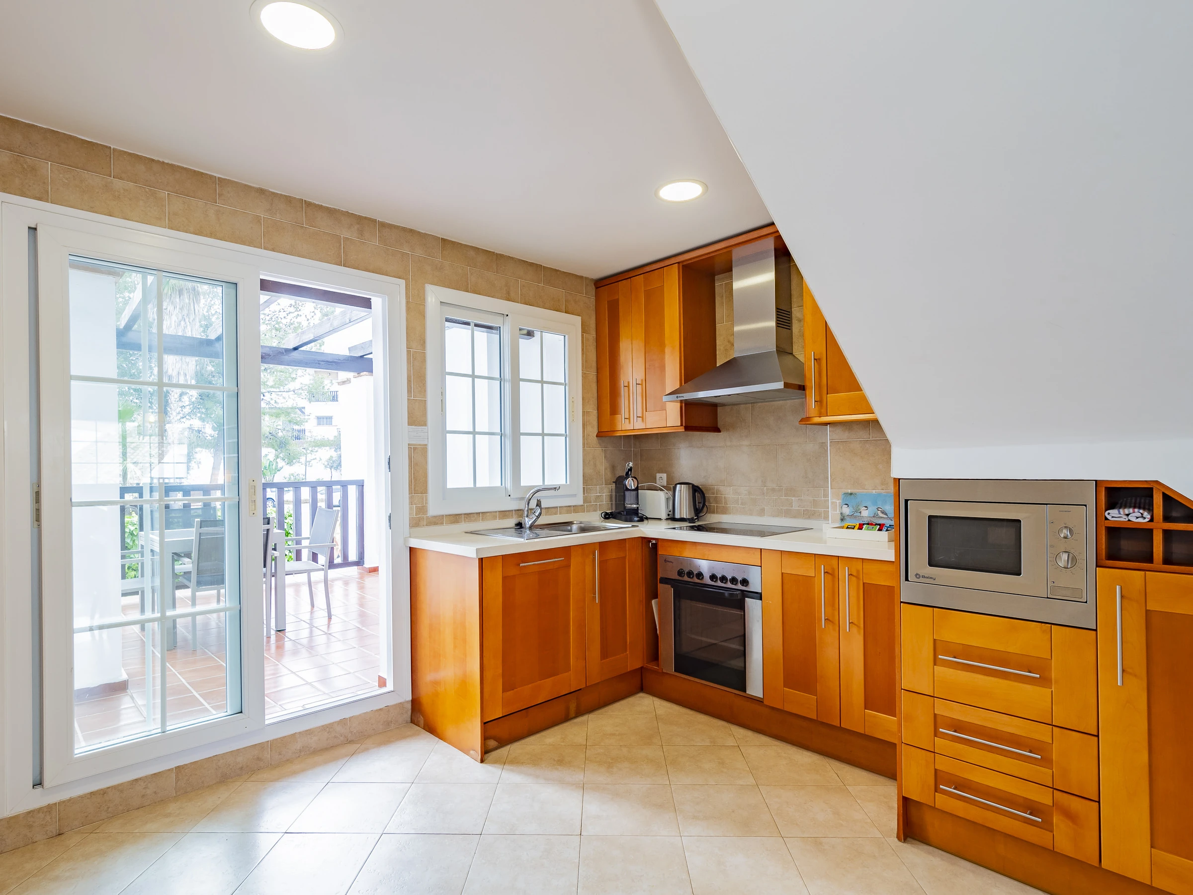 El dúplex es muy cómodo y accesible mediante un tramo de escalera. En la planta baja encontrarás un espacioso salón comedor, cocina americana totalmente equipada y acceso a dos terrazas, perfectas para disfrutar del aire libre y las vistas. La cocina cuenta con todos los electrodomésticos necesarios: vitrocerámica, nevera, microondas, horno, congelador, lavavajillas, cafetera, tostadora y hervidor de agua, para que puedas preparar tus comidas con comodidad. También hay un aseo con lavadora para mayor practicidad. 🍳✨