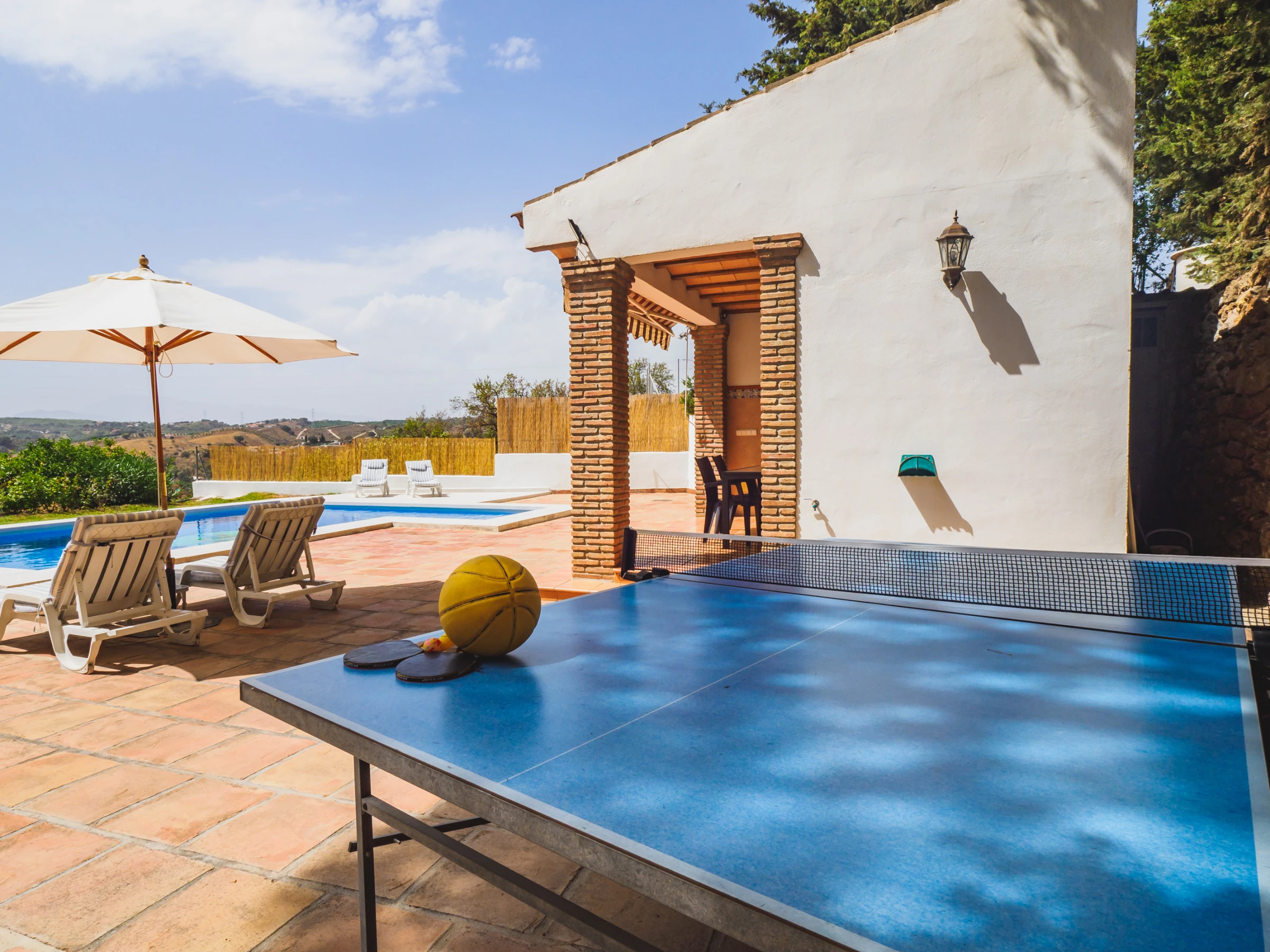 En el exterior encontrarás un jardín privado con hamacas para relajarte, una zona chill out en el porche y una barbacoa con mesa y sillas para disfrutar de comidas al aire libre admirando las espectaculares vistas al Valle del Guadalhorce 🌄. Para el entretenimiento, la villa incluye una zona de juegos con mesa de ping pong y canasta de baloncesto, perfecta para momentos de diversión en familia o con amigos.