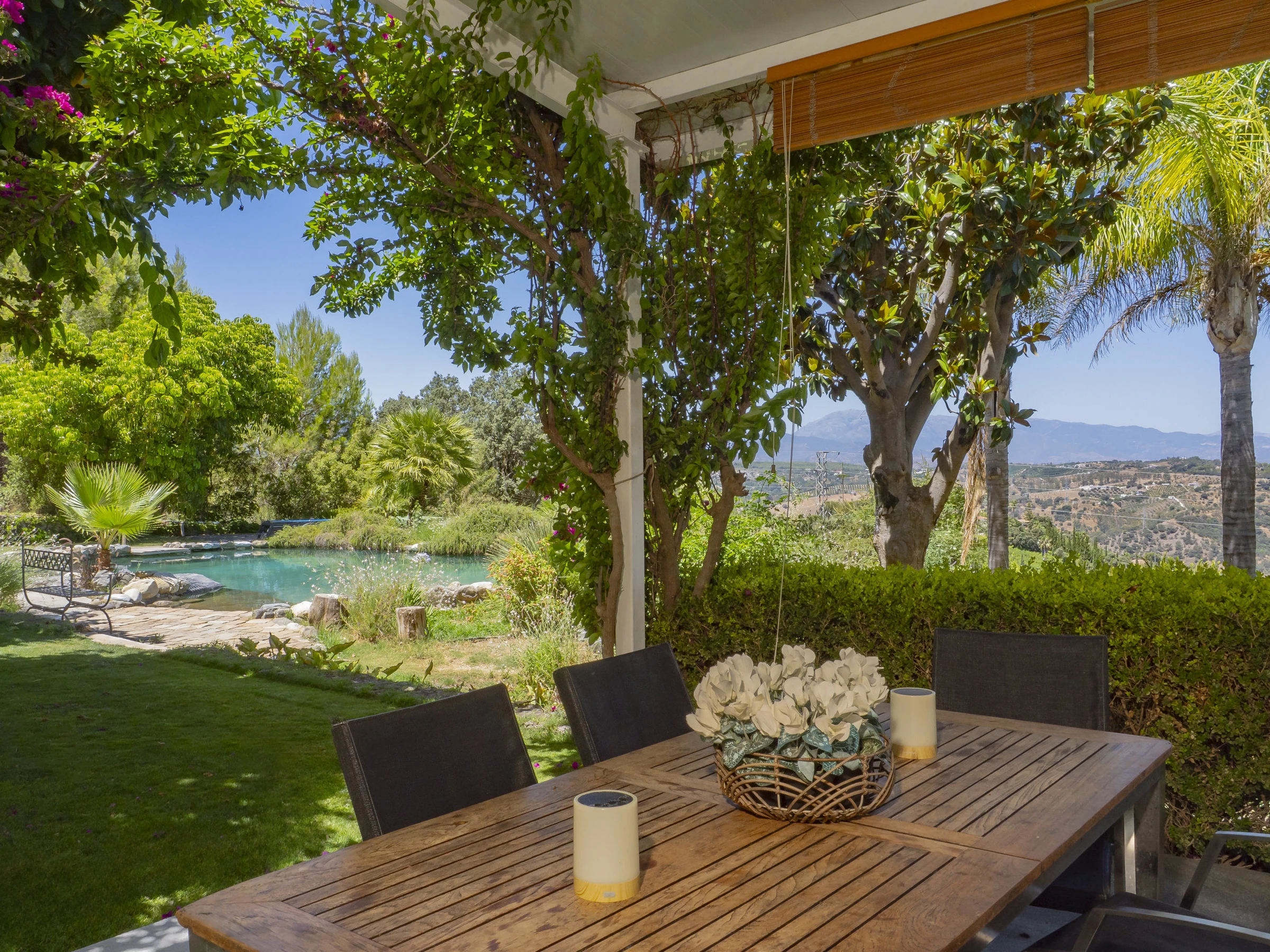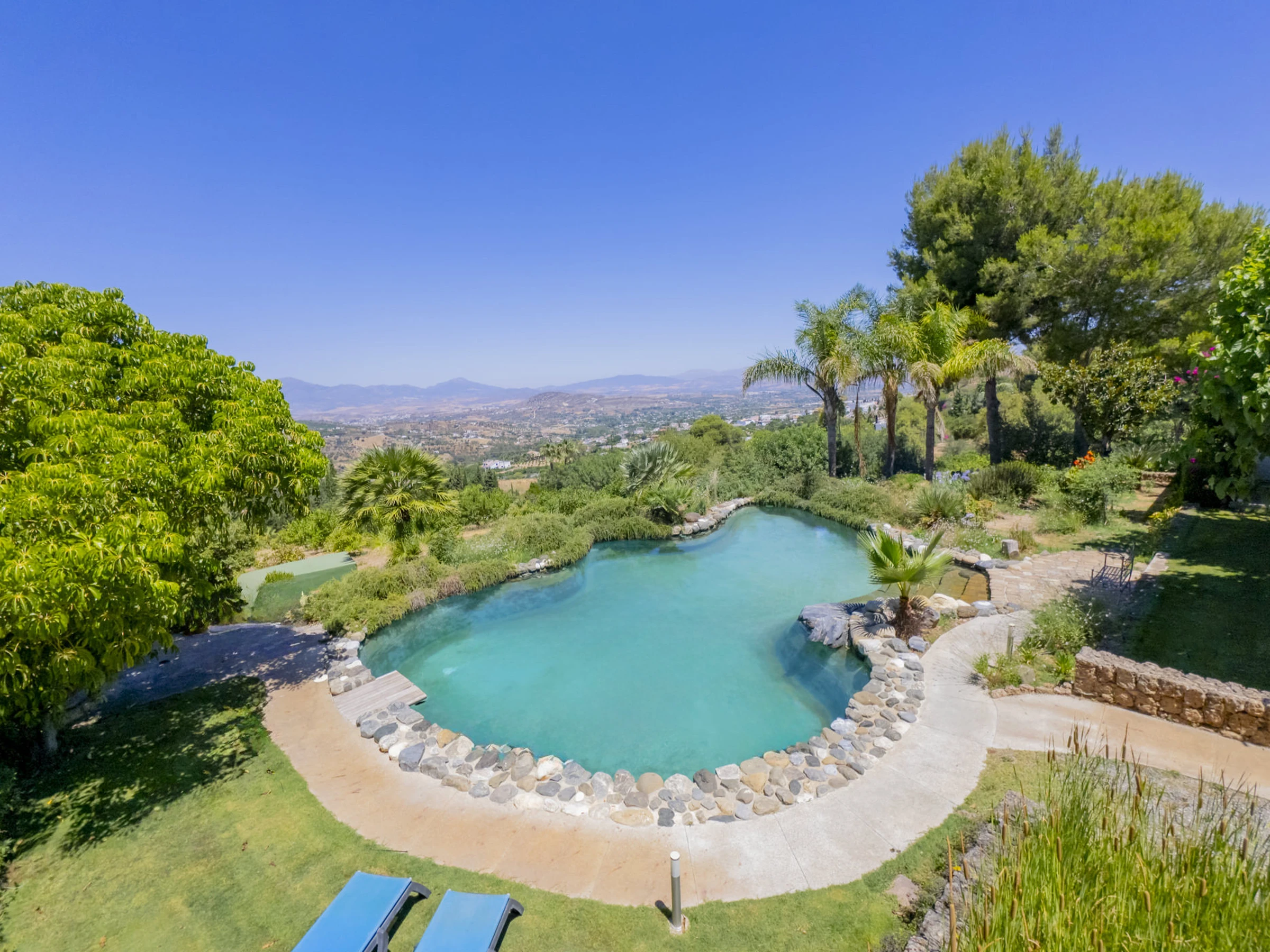 Esta fantástica villa se encuentra en un entorno natural privilegiado, rodeada de bosque mediterráneo y con acceso directo a la Sierra de Mijas. Disfruta de unas panorámicas únicas del Valle del Guadalhorce desde su amplio jardín privado de 10.000 m², que incluye un porche, varias terrazas y una impresionante piscina lago con cloración salina para momentos de relax y diversión bajo el sol ☀️🏊♂️.