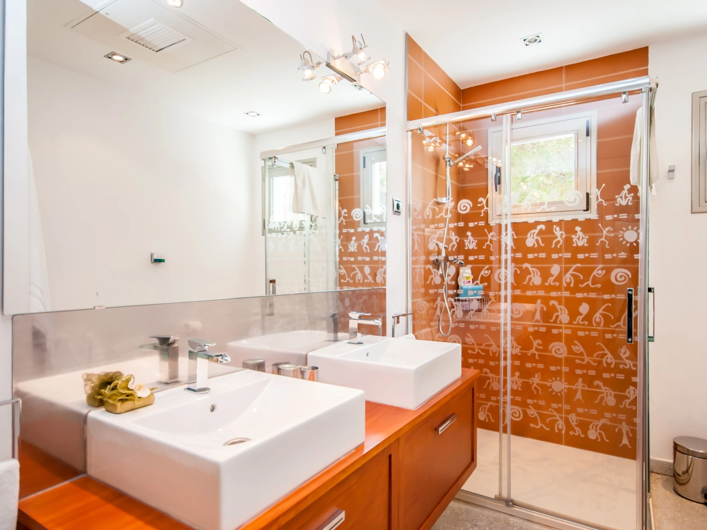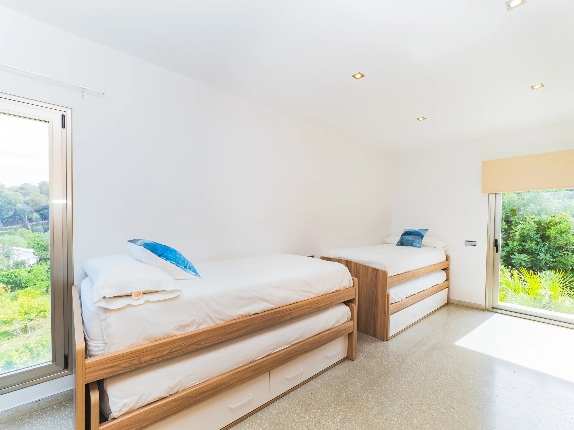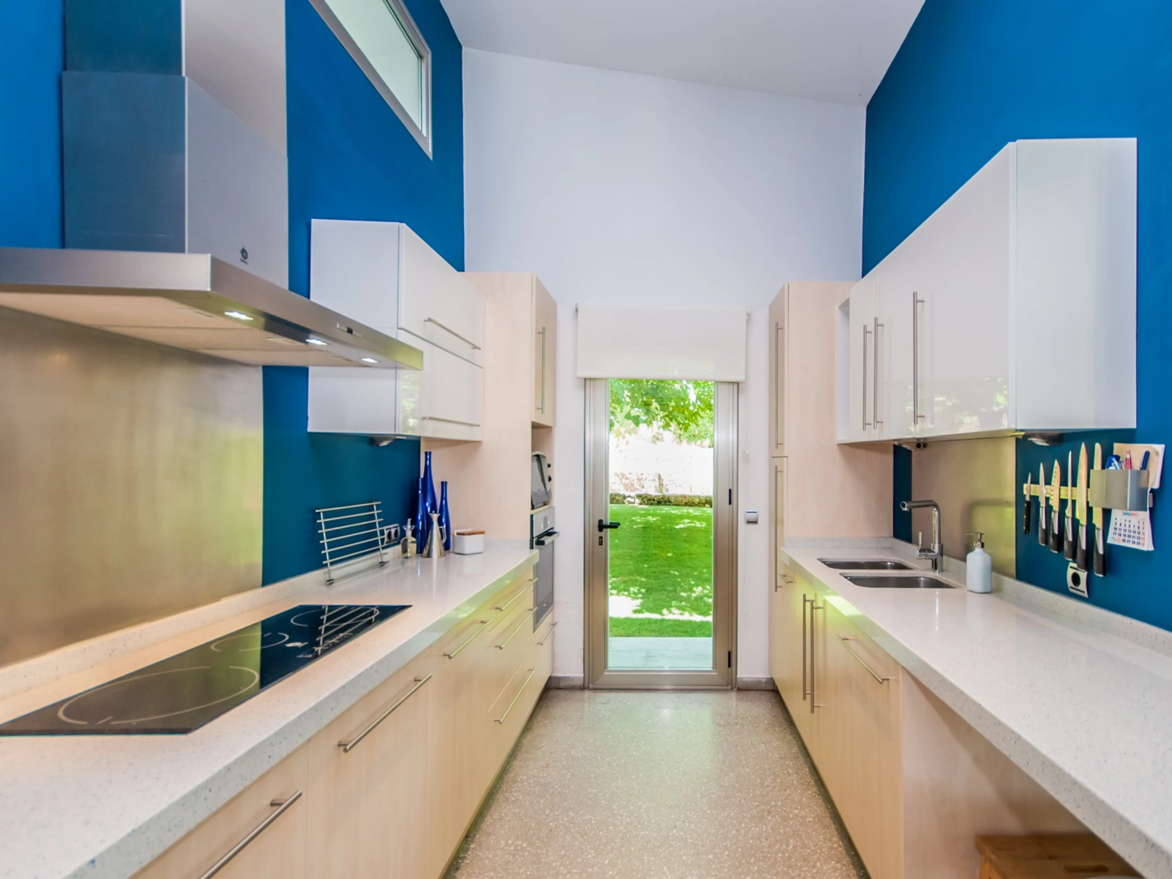 Con capacidad para 8 personas, la villa dispone de 3 habitaciones: dos dobles y una con dos camas nido, todas con baño en suite para máxima comodidad y privacidad. El interior destaca por un amplio salón comedor con grandes ventanales que permiten admirar las vistas, una cocina semi-independiente totalmente equipada para preparar deliciosas comidas, una sala de estar, una sala de lectura y un gimnasio con nevera y congelador adicionales 🛏️🍳📚🏋️♀️.