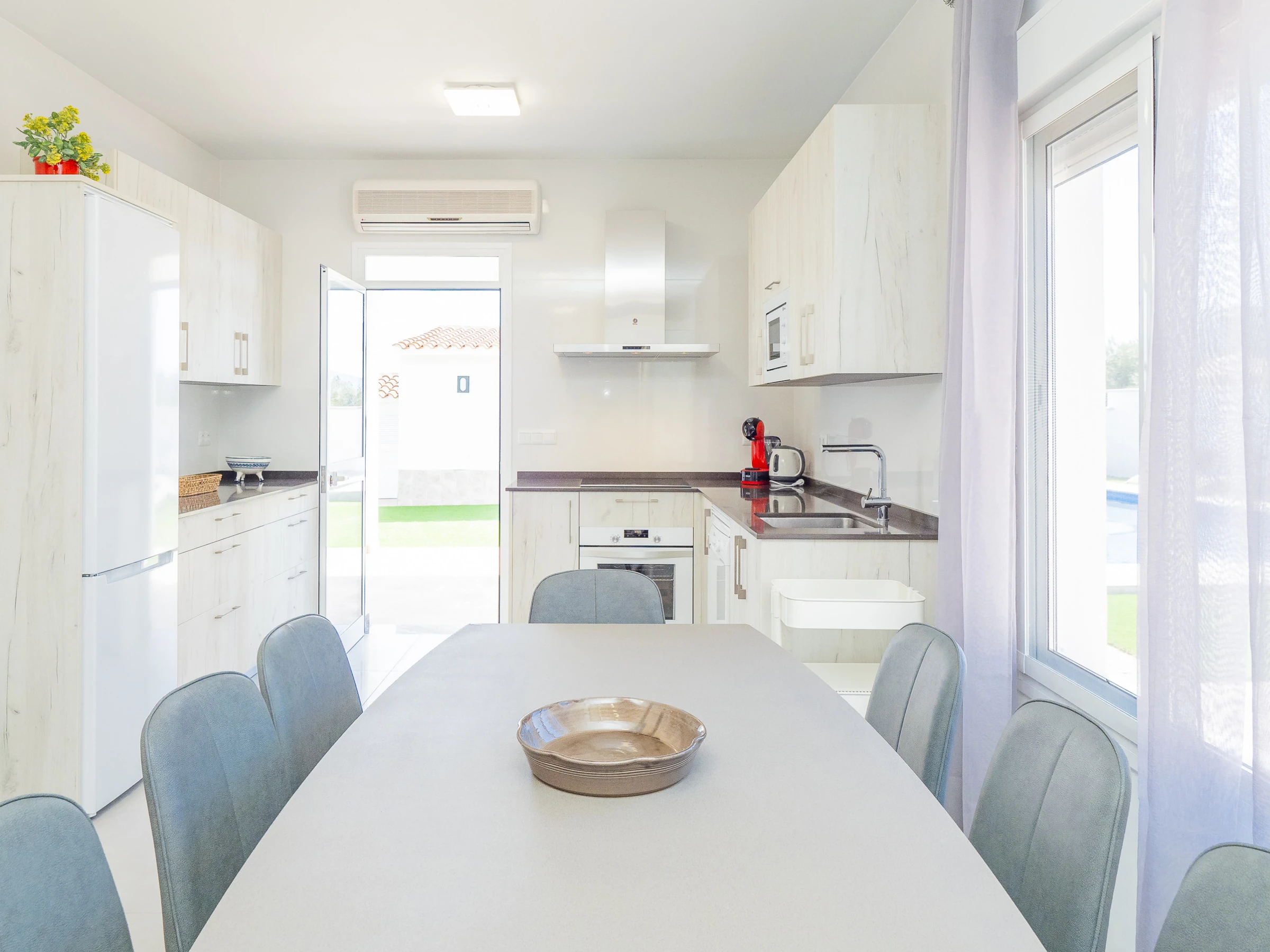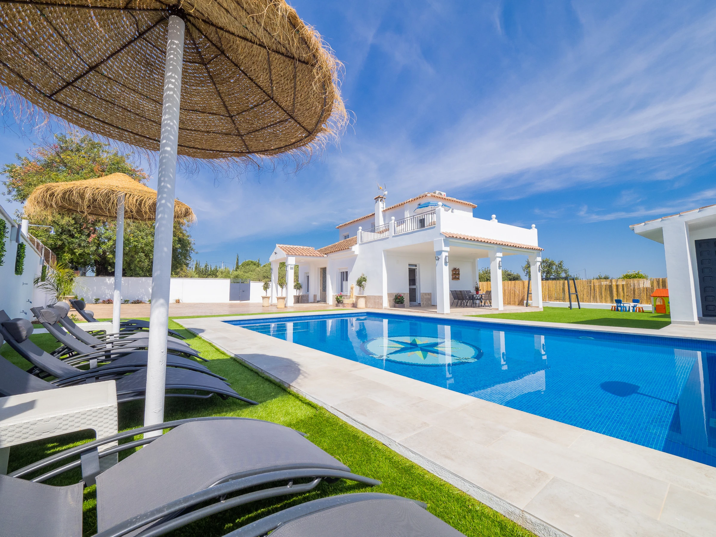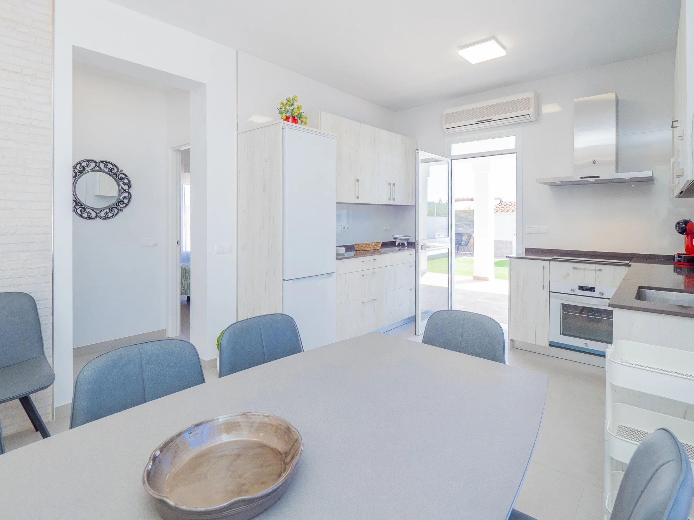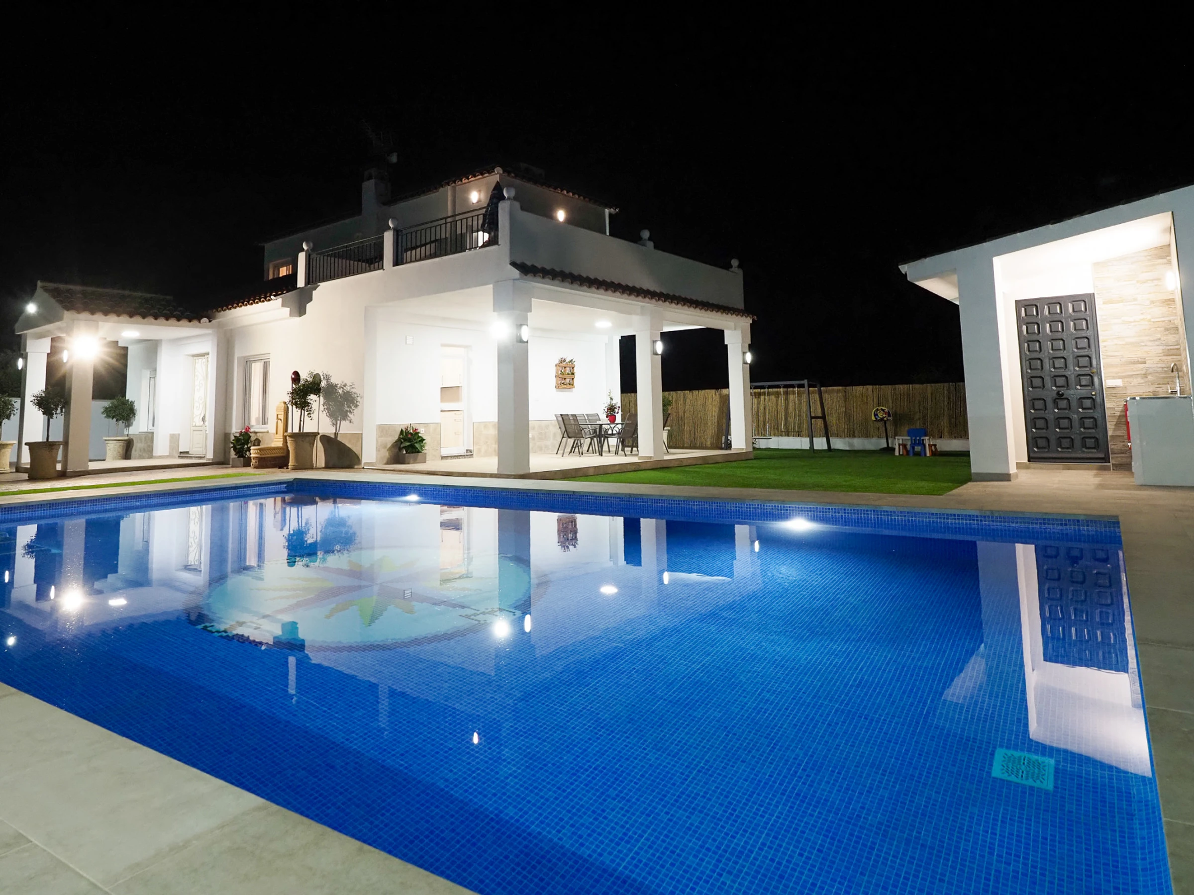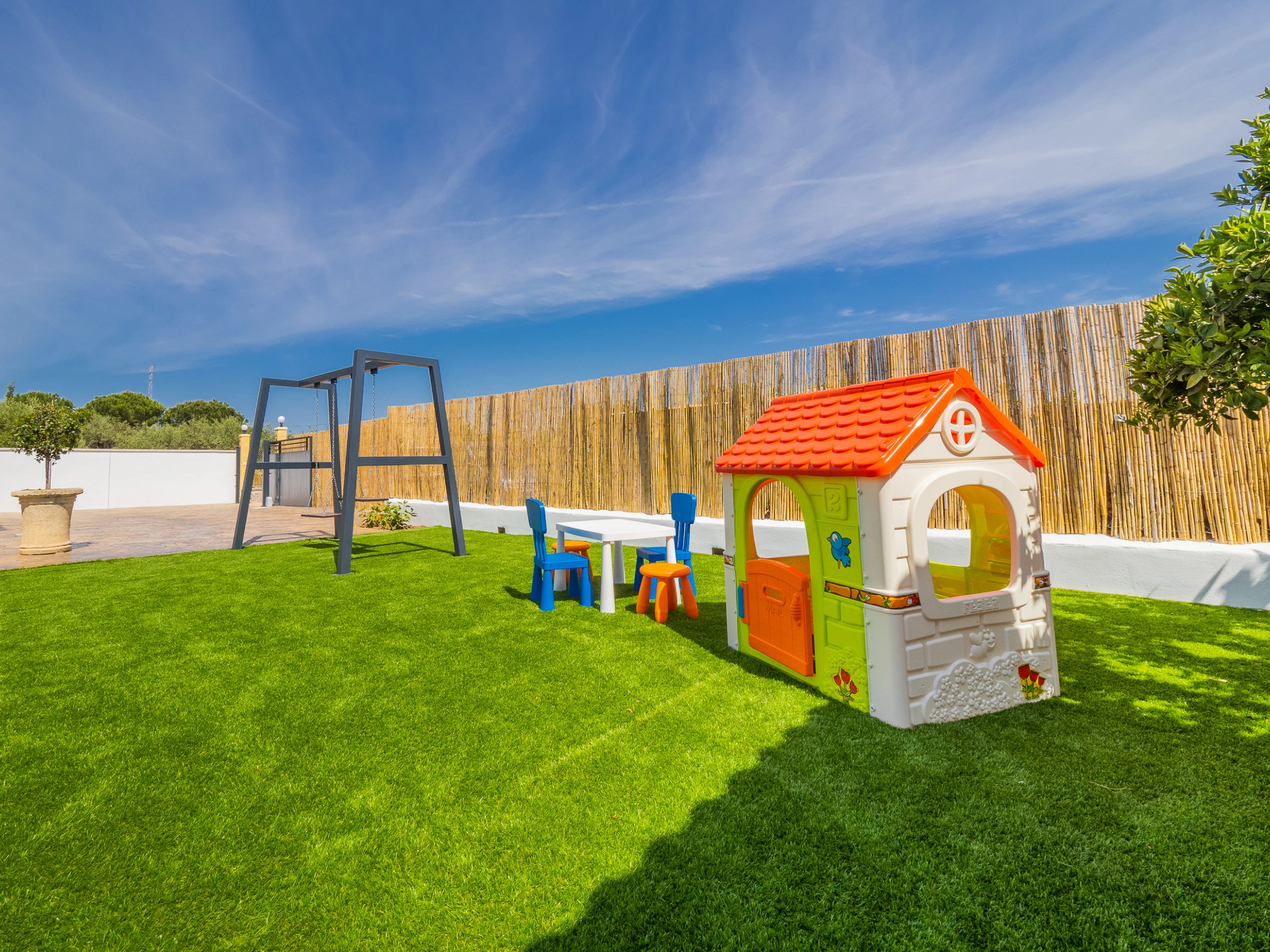 Esta encantadora villa ofrece todo lo necesario para unas vacaciones inolvidables en familia. Ubicada en un entorno privado y seguro, el recinto está completamente vallado, permitiendo que pueda dejar su vehículo dentro con total tranquilidad y disfrutar sin preocupaciones con los más pequeños. Los exteriores están diseñados para el disfrute total: una zona de barbacoa techada, un porche exterior, área infantil para niños y una fantástica piscina privada para refrescarse en los días más calurosos. Además, el mobiliario de exterior es moderno y cómodo, con una iluminación cuidada que permite disfrutar de las instalaciones también por la noche, garantizando una privacidad absoluta.
