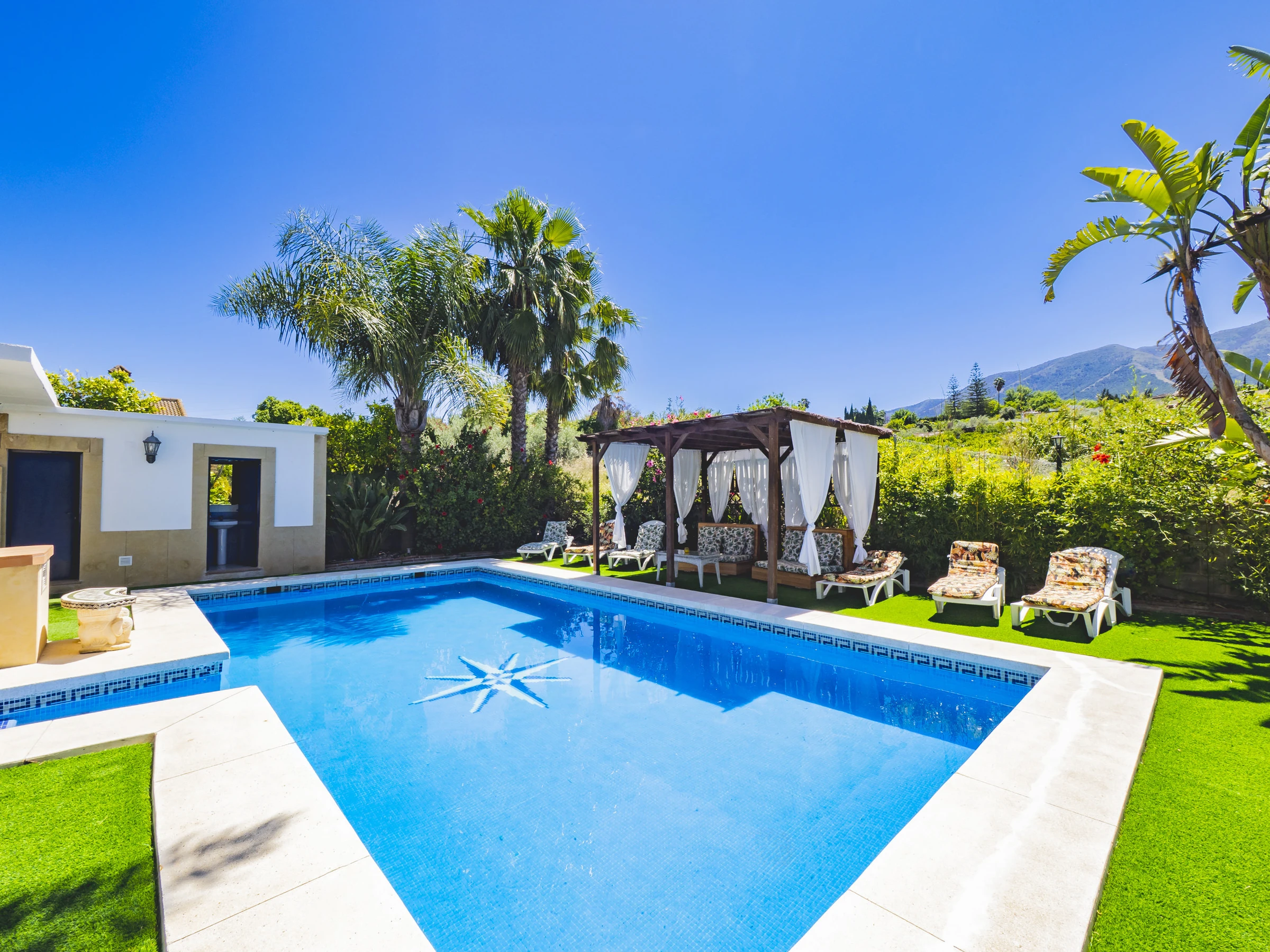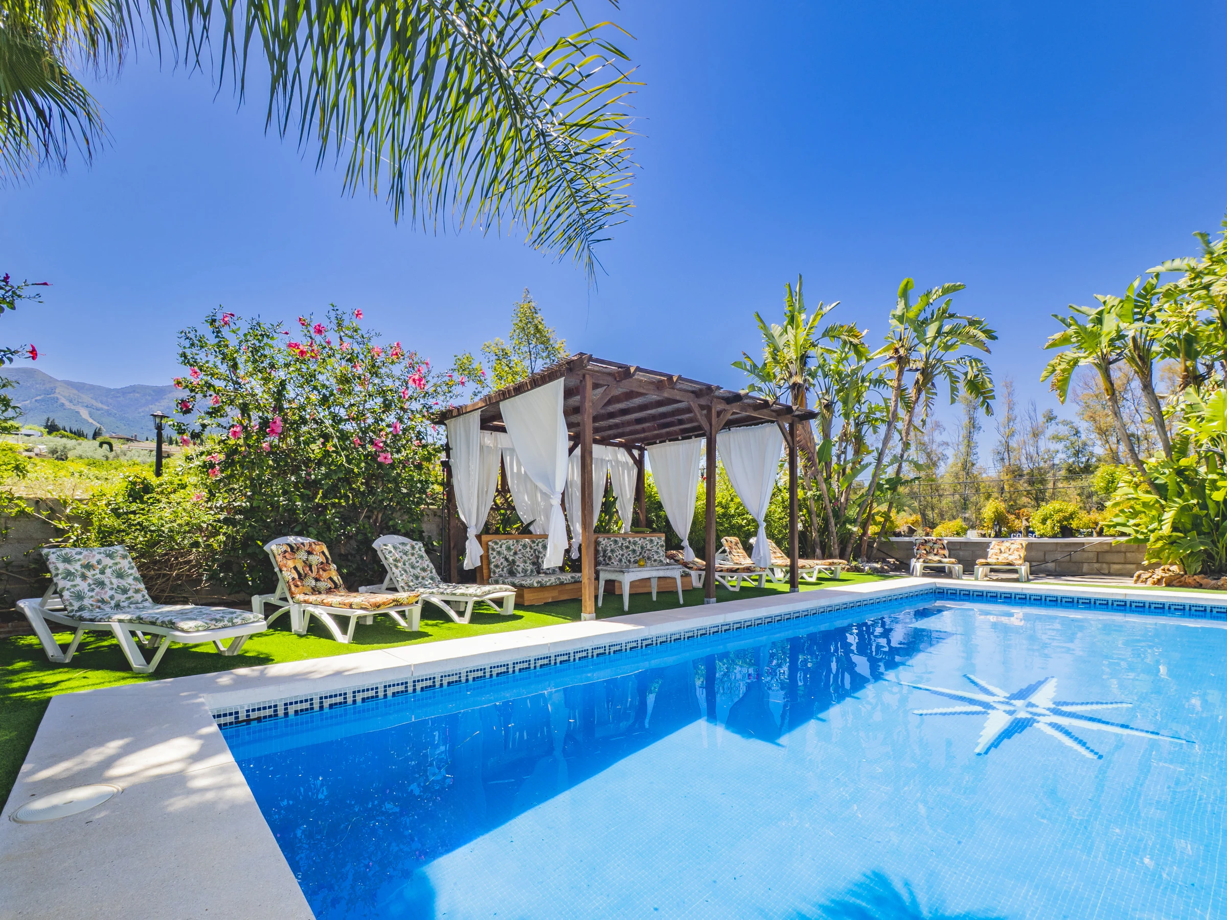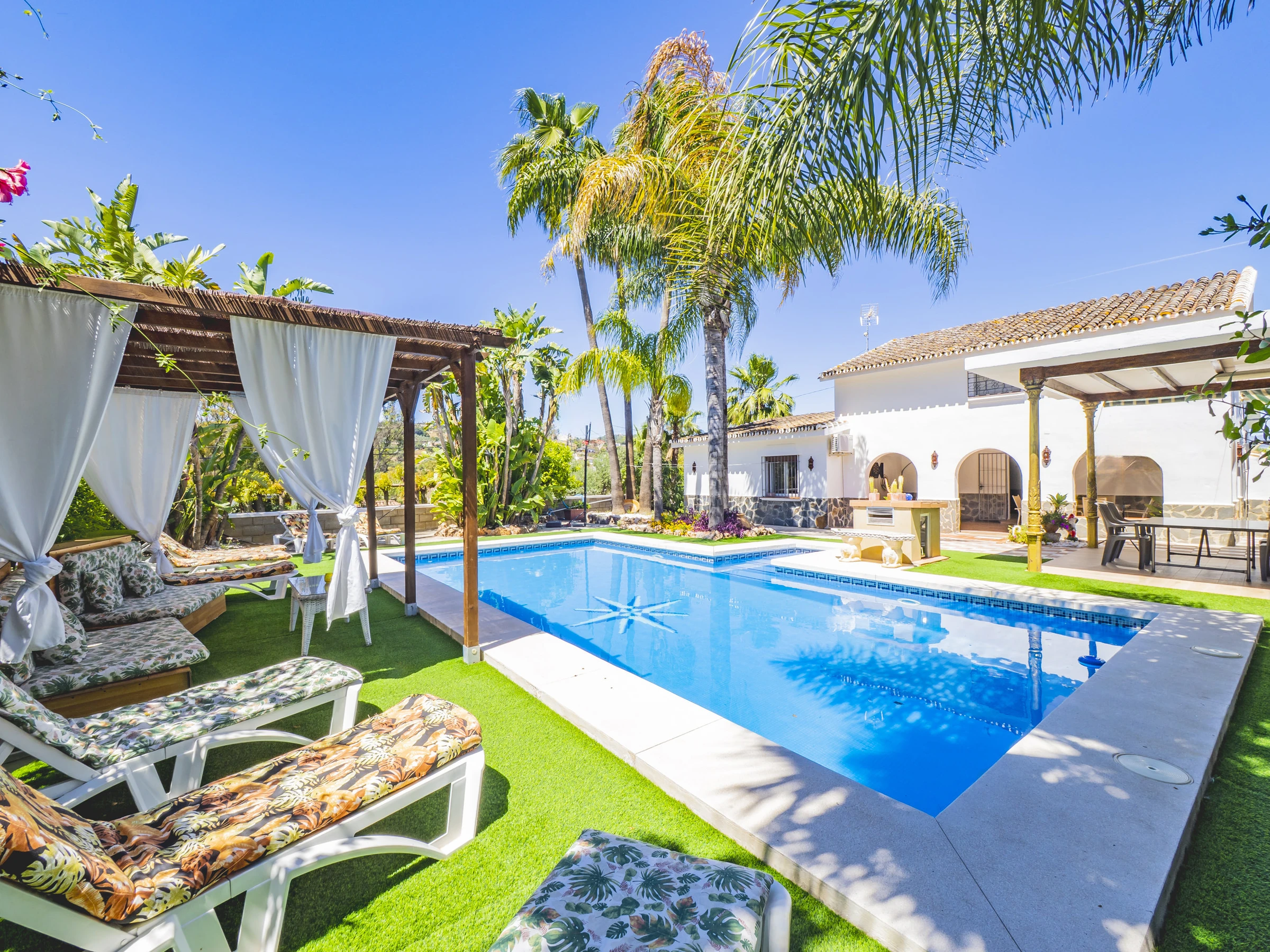 Los exteriores son un auténtico paraíso: una gran piscina ideal para refrescarse, zonas para tomar el sol en hamacas, un espacio sombreado para relajarte y un rosco de gas perfecto para preparar parrilladas o paellas. Además, contarás con un aseo con plato de ducha para mayor comodidad tras un baño. 🏊♂️🌿🔥
